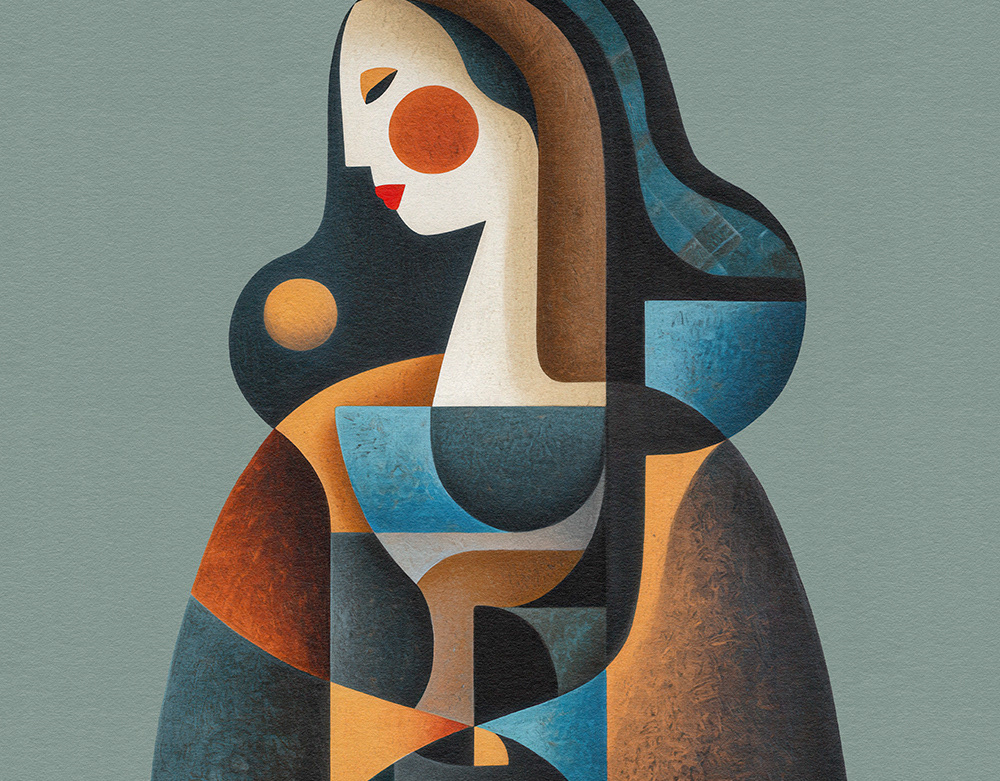 Cubist Elegance: Blue and Brown Plus-Size Portraits