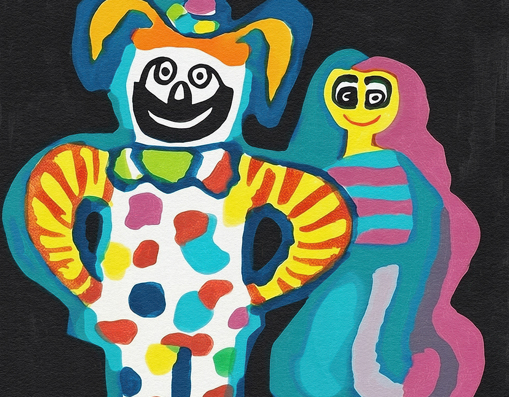Chromatic Whimsy: Bold Faces in Abstract Motion