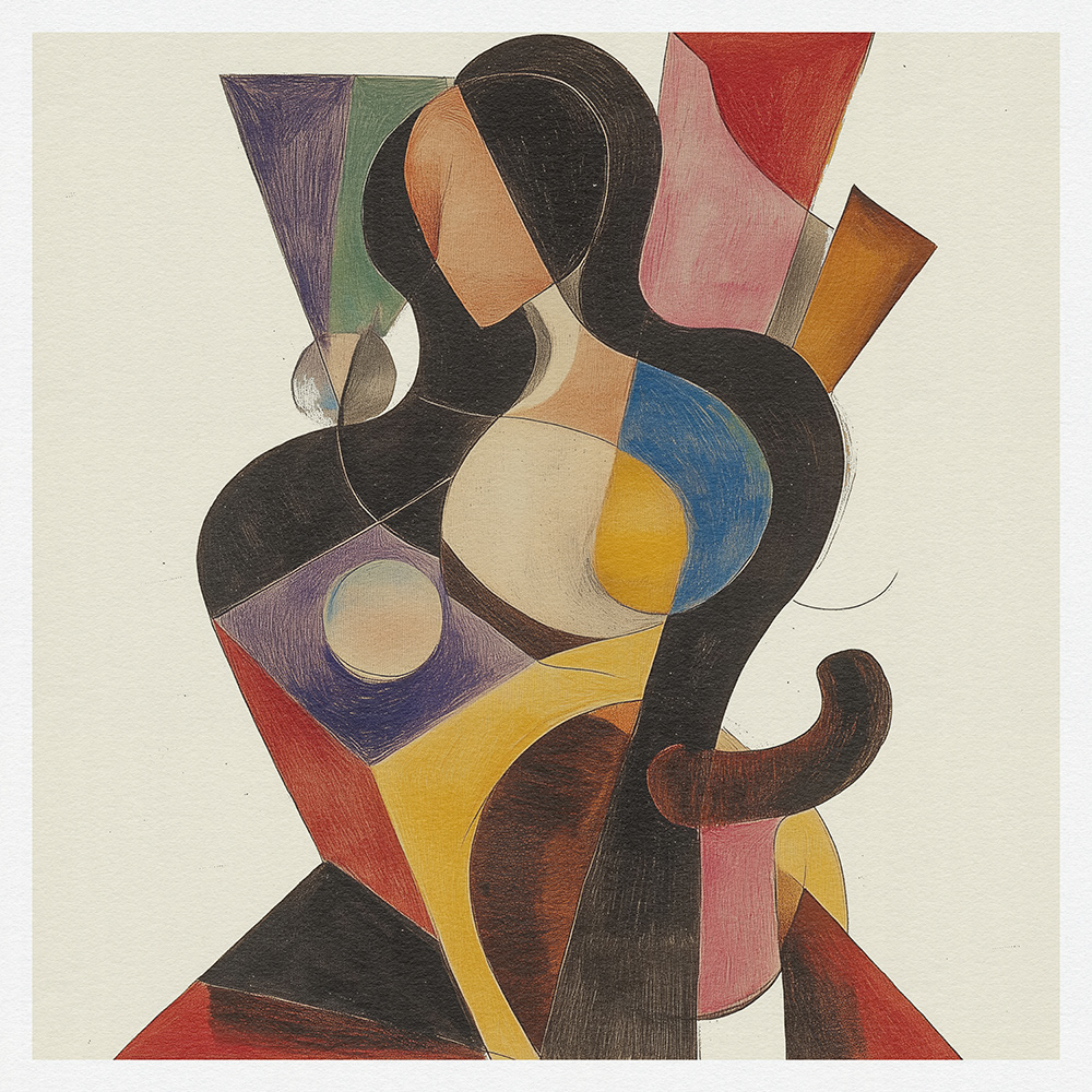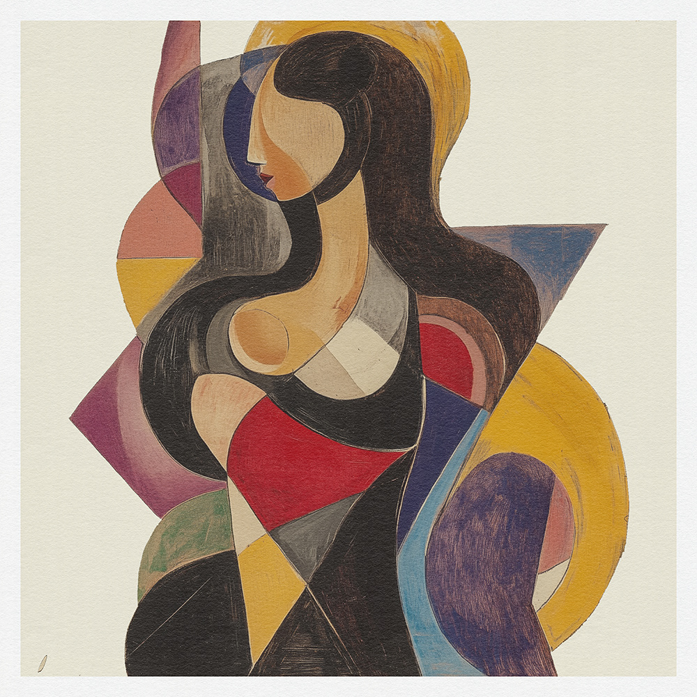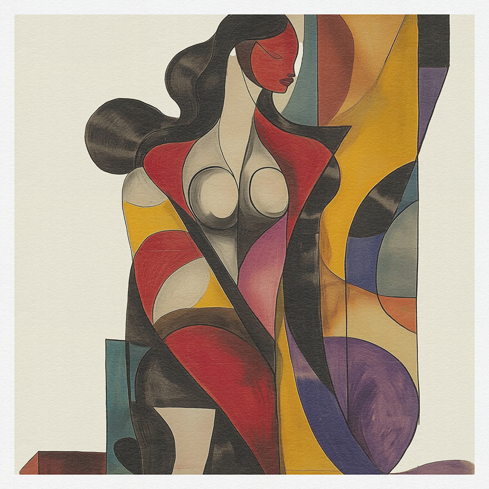 This captivating art series celebrates femininity with vibrant geometric abstraction, blending bold shapes, dynamic hues, and flowing forms. A modern exploration of elegance in contemporary abstract art.