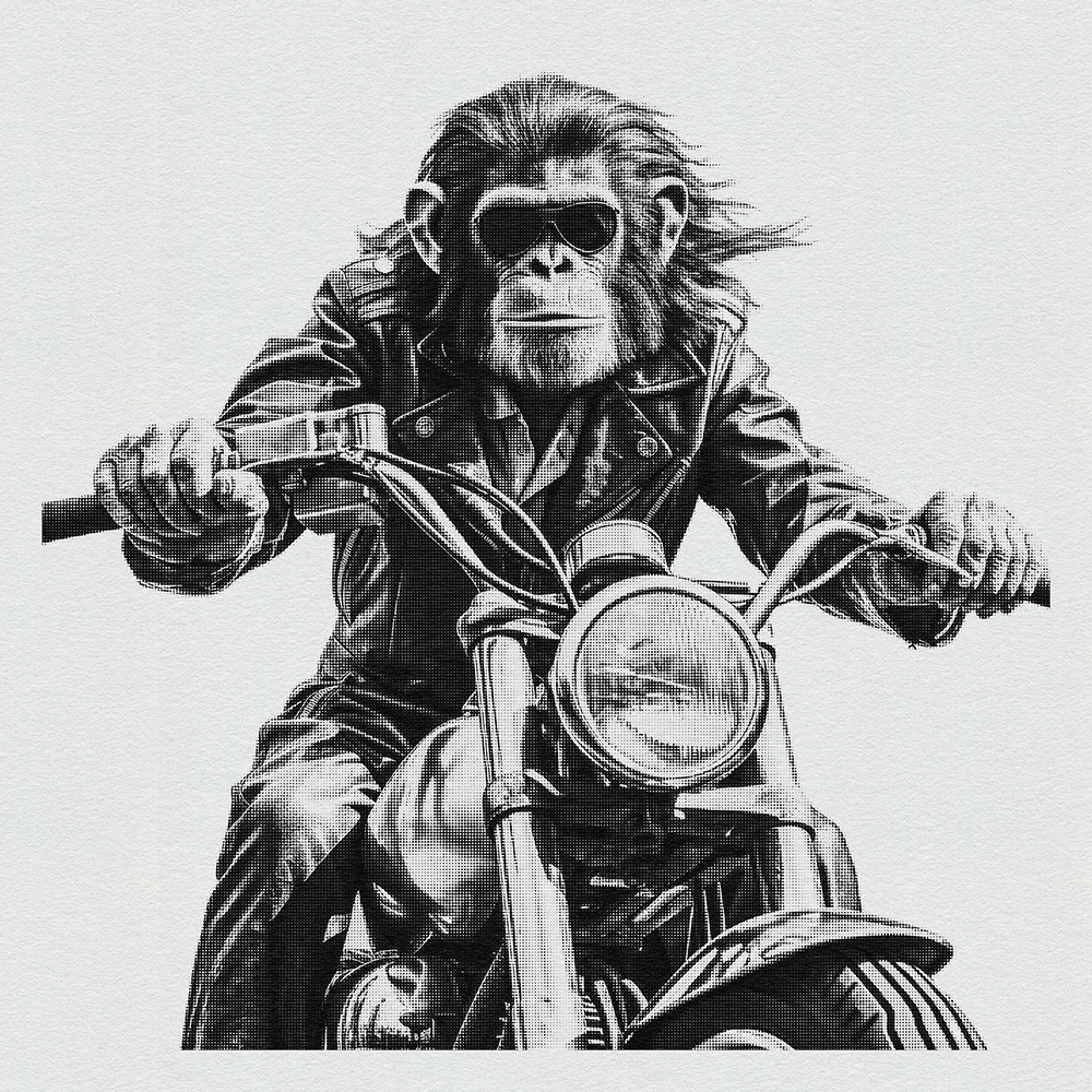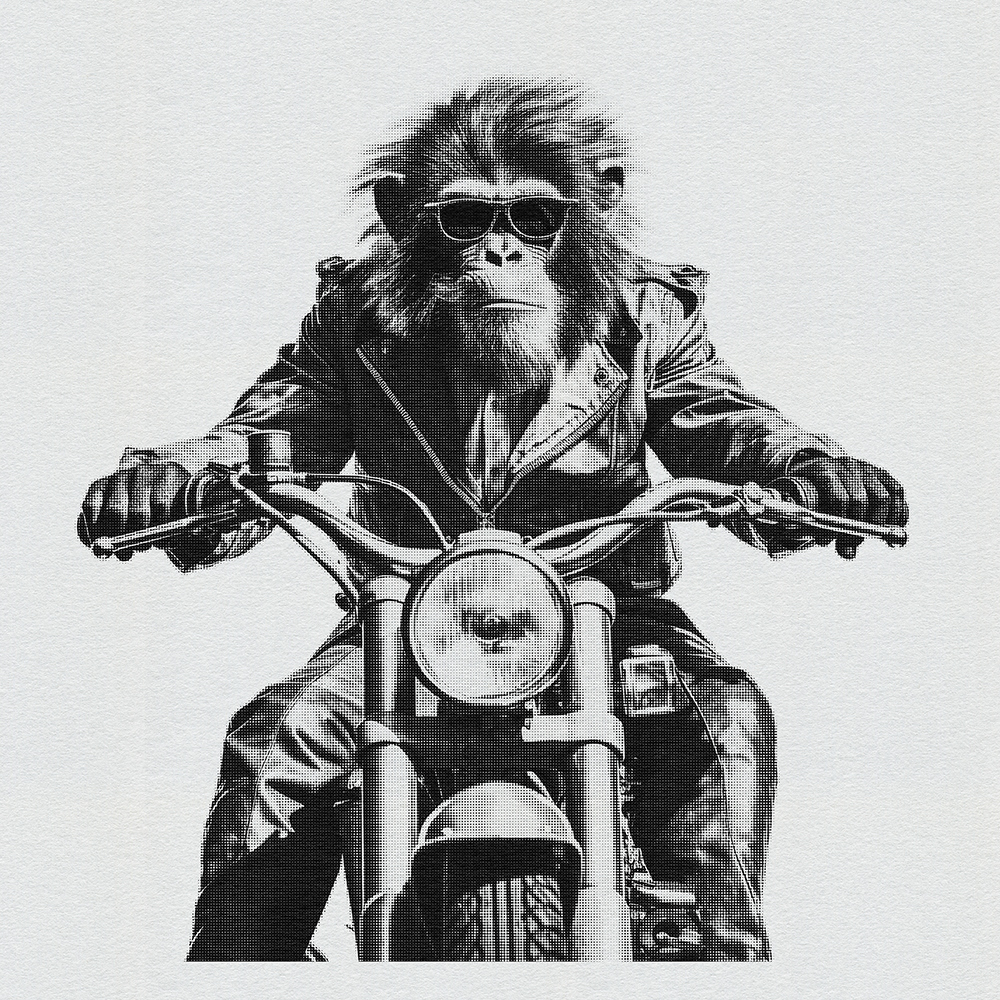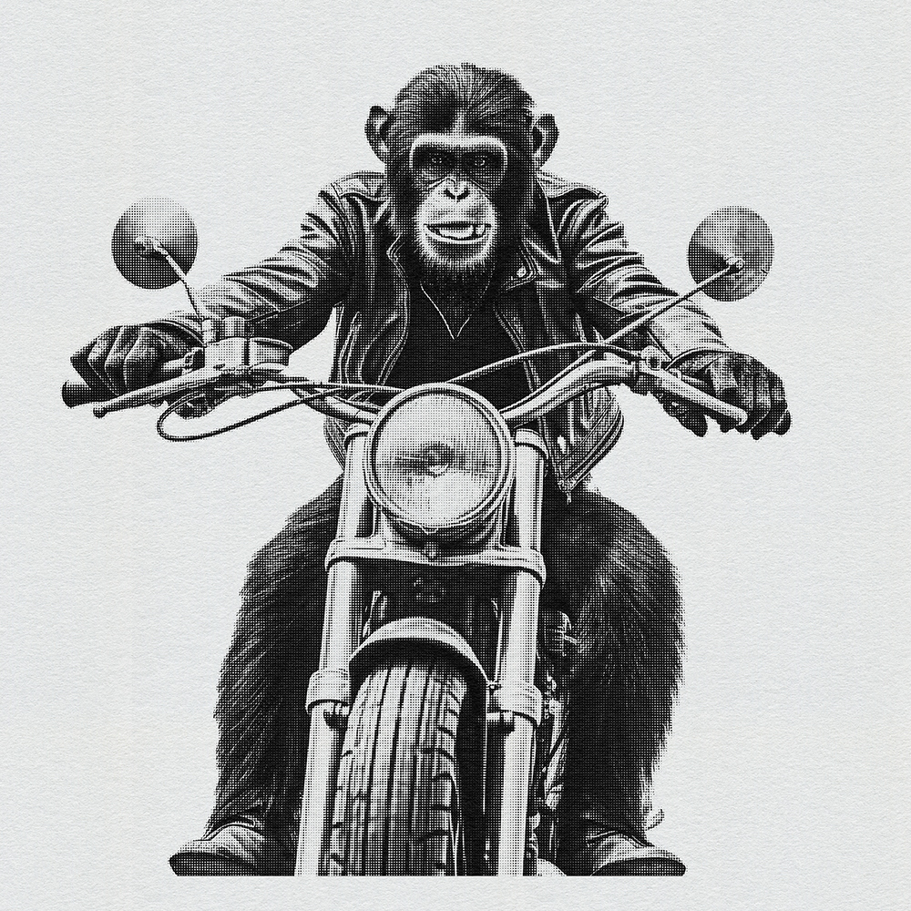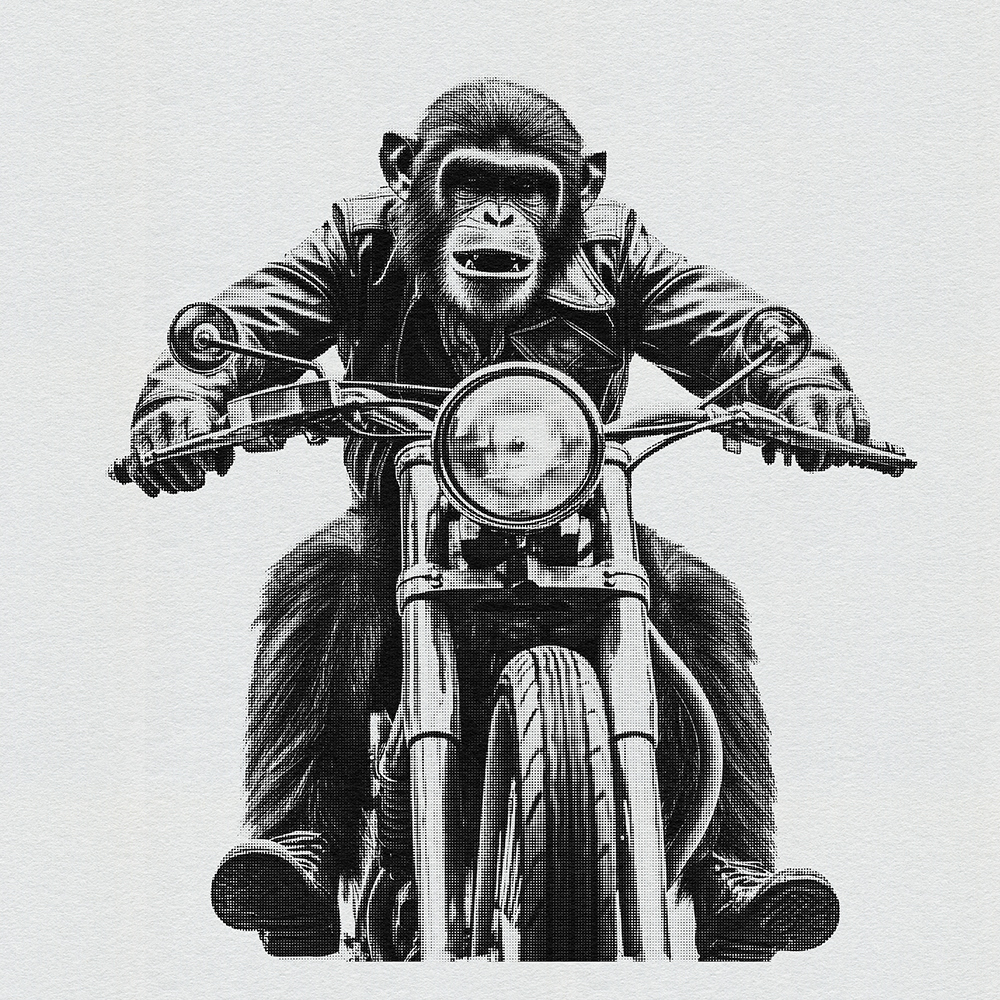 Join 'Ape Rider Revolutions,' a series featuring an adventurous Ape Bike Rider. Explore societal boundaries, power dynamics, and ethical representation as this daring primate pedals through thought-provoking landscapes.