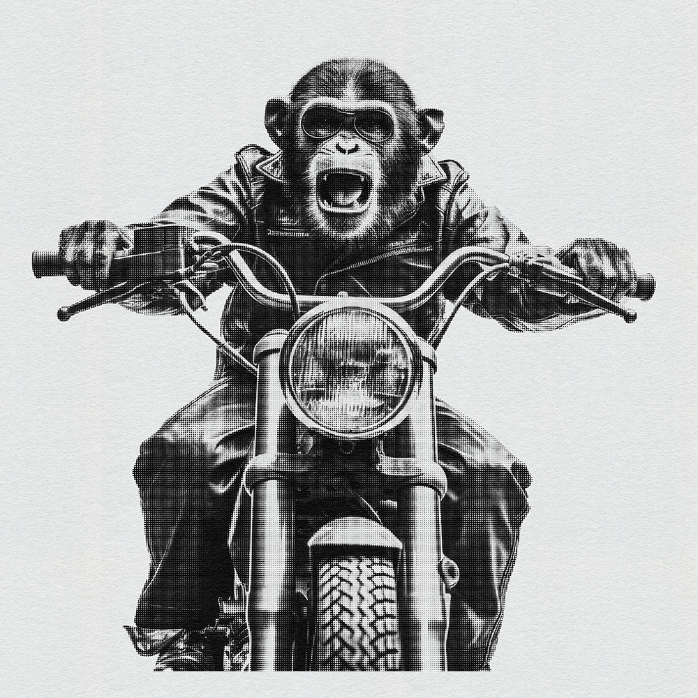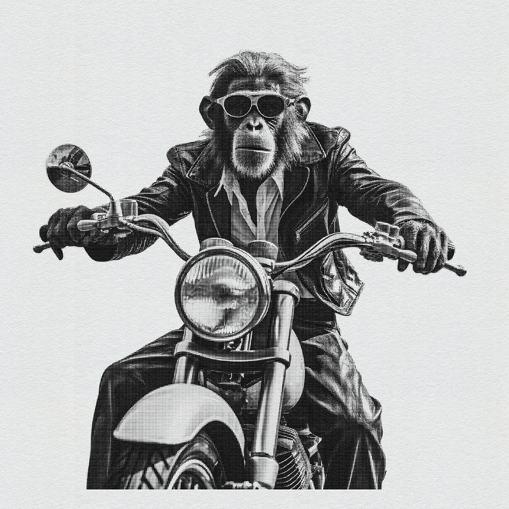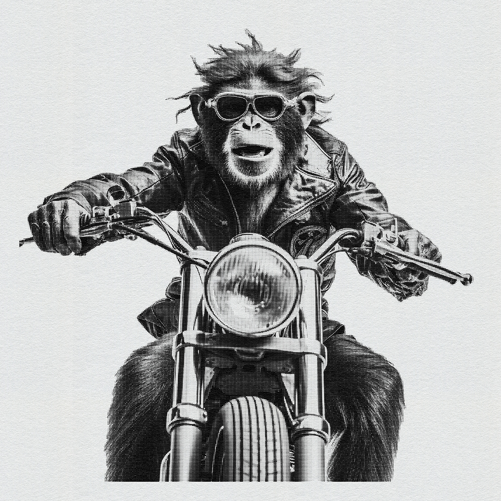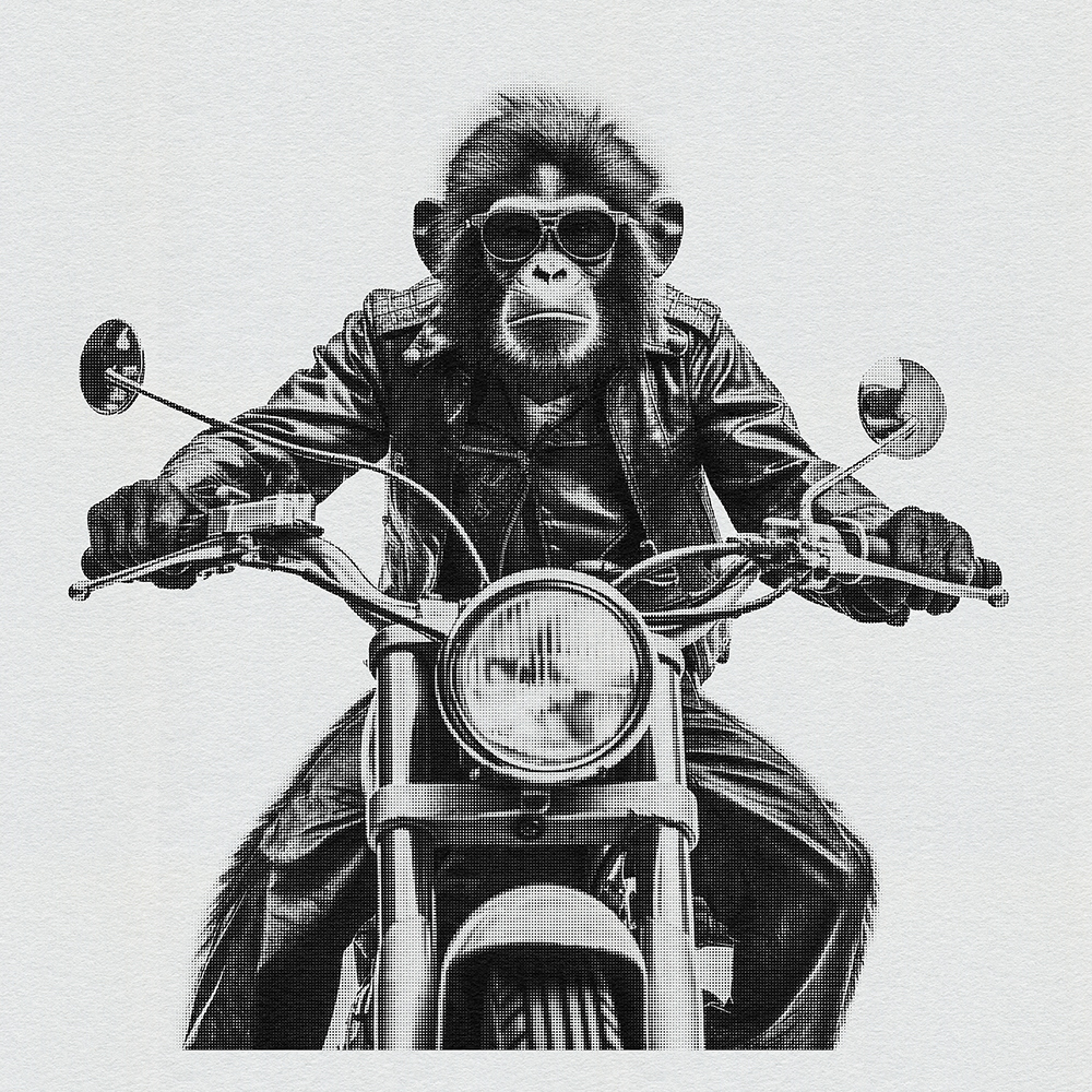 Join 'Ape Rider Revolutions,' a series featuring an adventurous Ape Bike Rider. Explore societal boundaries, power dynamics, and ethical representation as this daring primate pedals through thought-provoking landscapes.