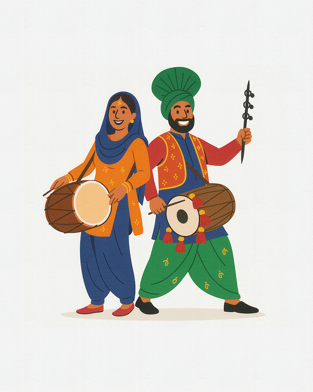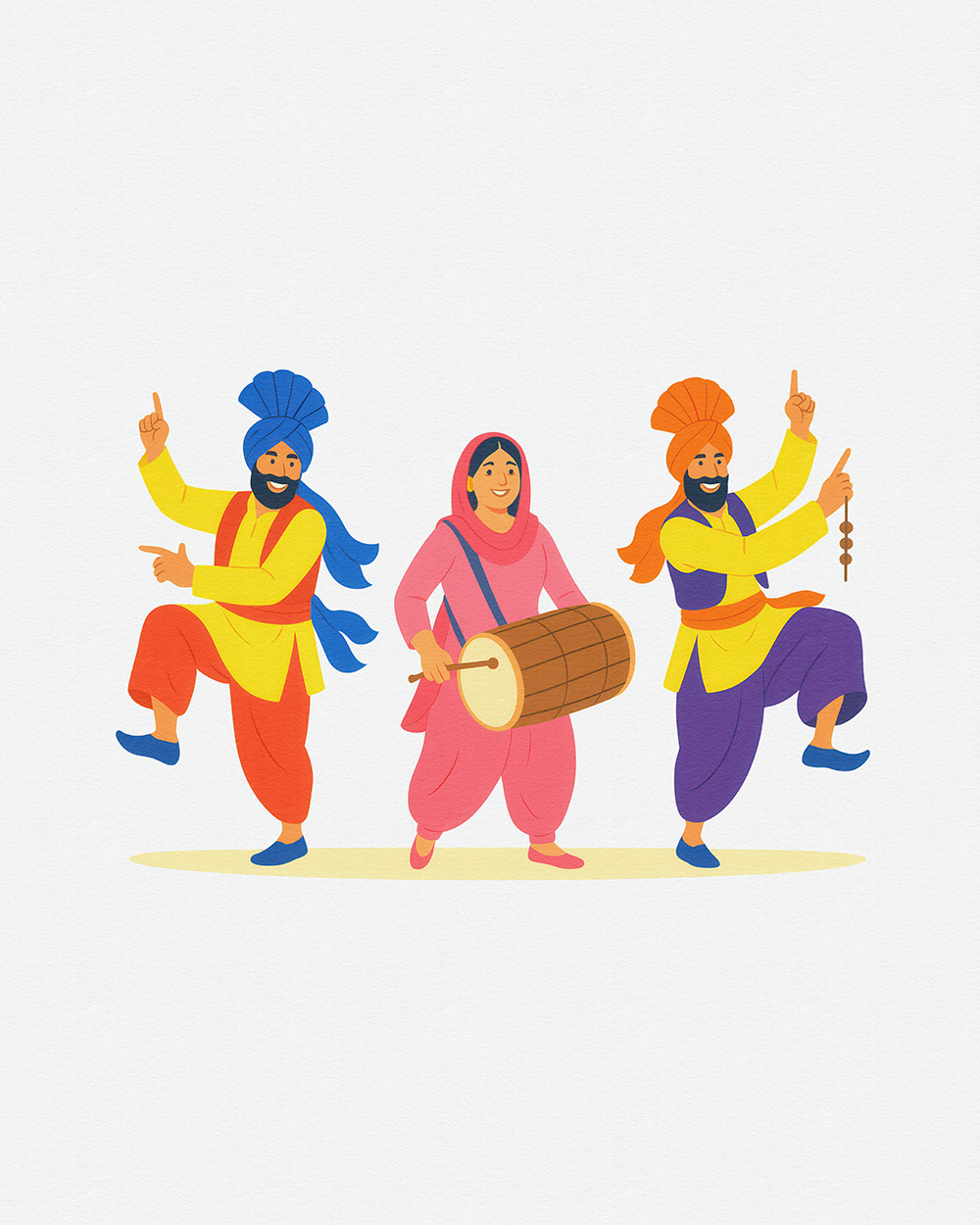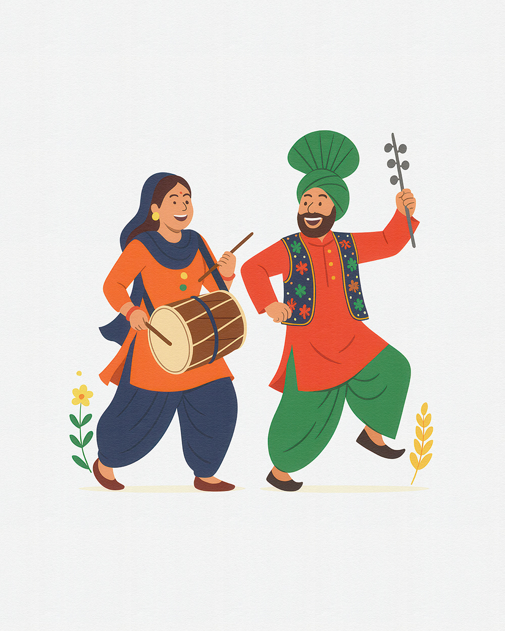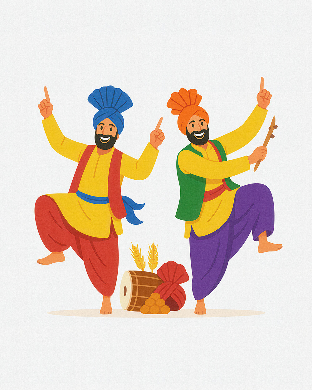 This festive stock illustration series for Baisakhi captures the joy of Punjabi dance, colorful attire, dhol beats, and cultural unity—ideal for Baisakhi festival promotions, folk celebration visuals, and Punjabi culture designs.