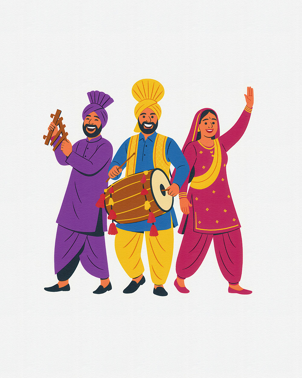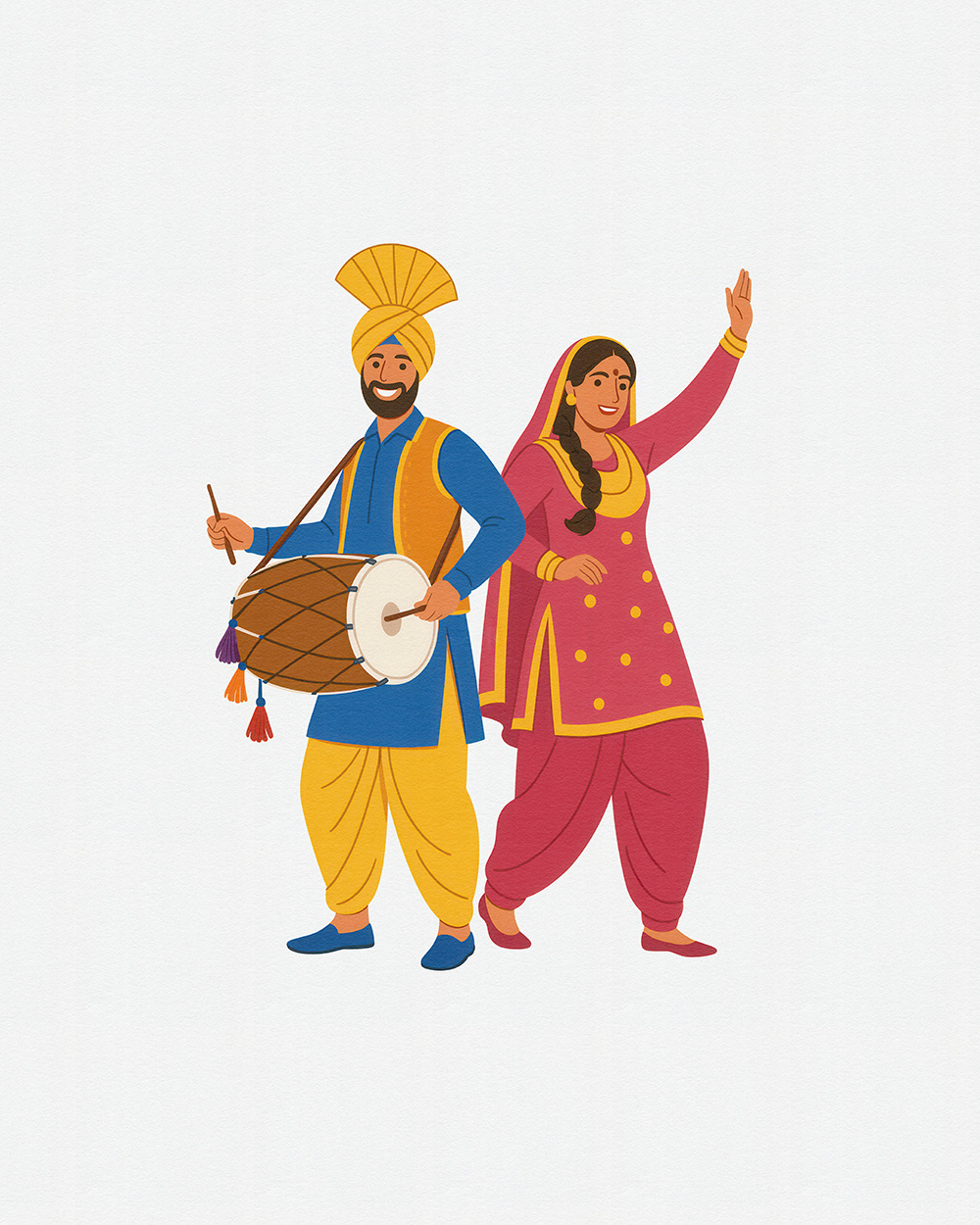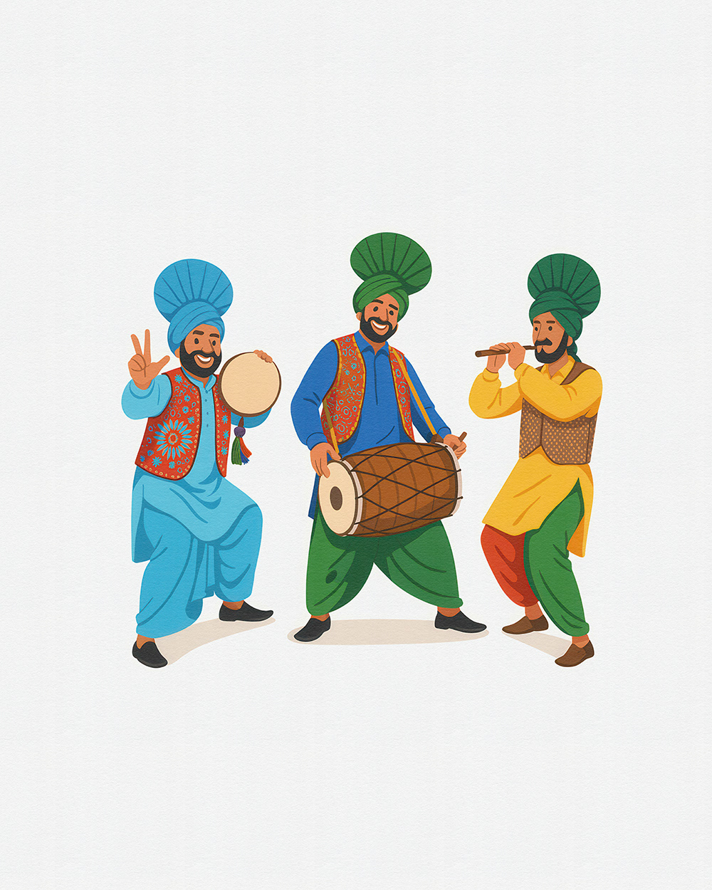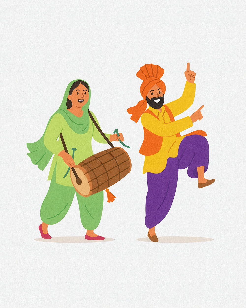 This festive stock illustration series for Baisakhi captures the joy of Punjabi dance, colorful attire, dhol beats, and cultural unity—ideal for Baisakhi festival promotions, folk celebration visuals, and Punjabi culture designs.
