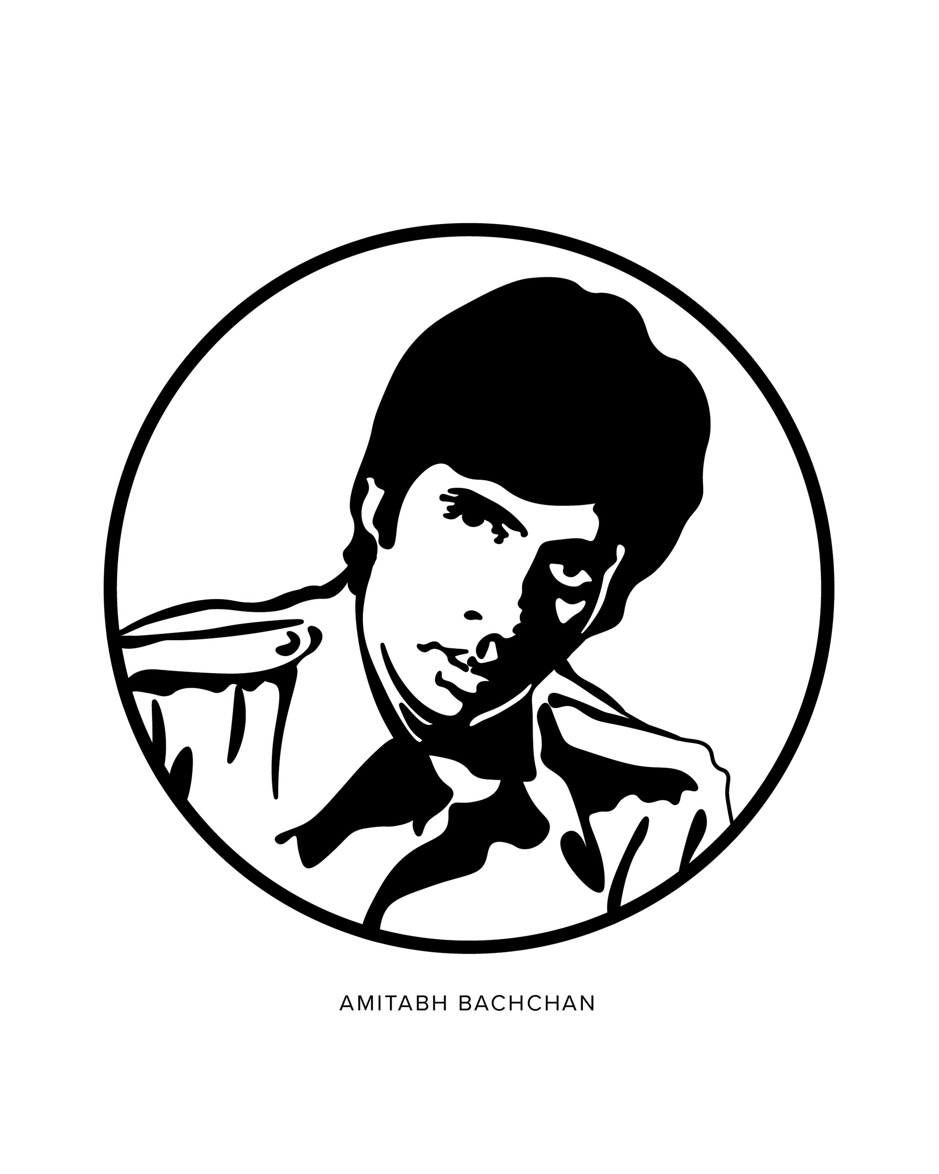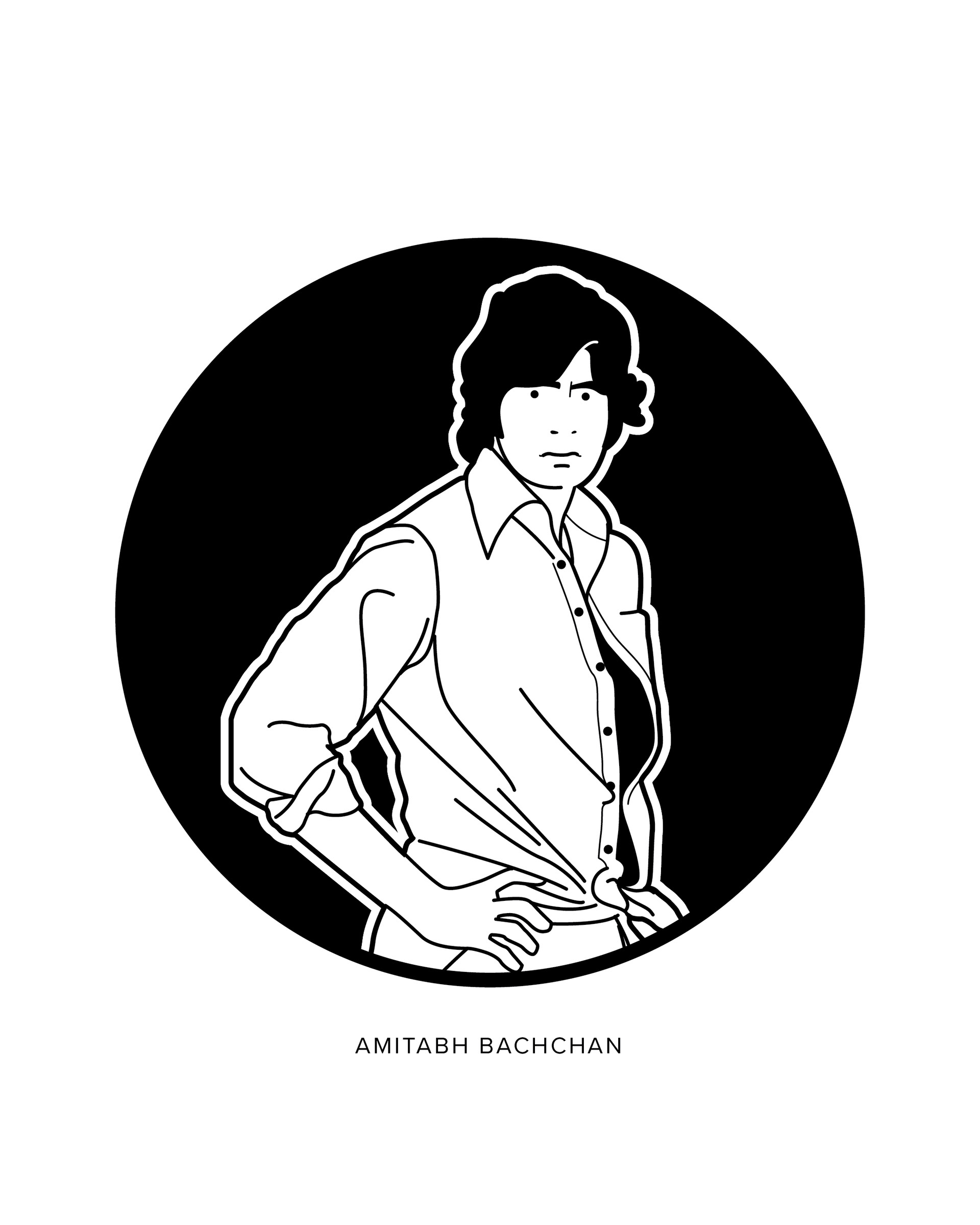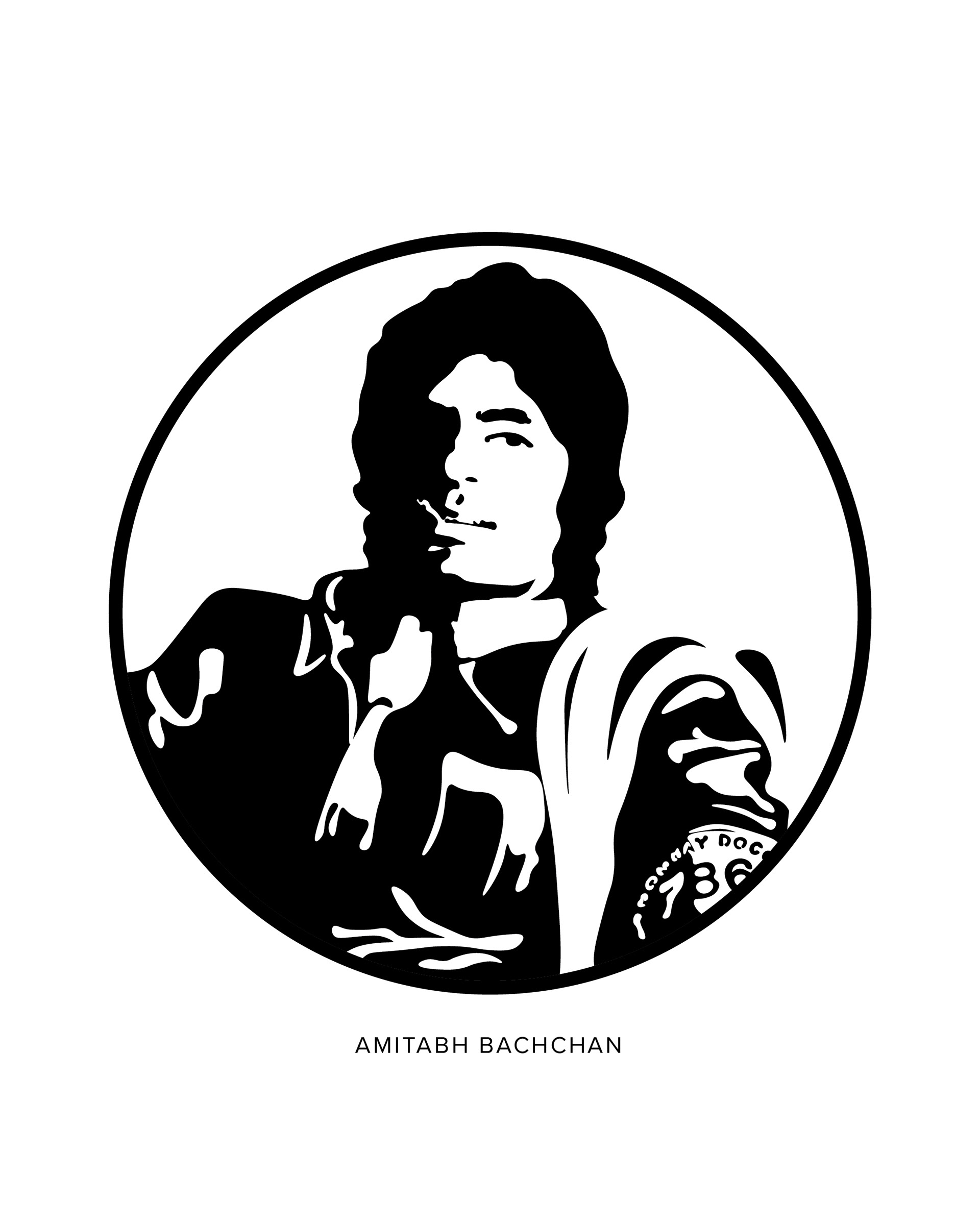 This minimalist black-and-white graphic portrait series celebrates Bollywood legends with bold lines and high contrast, blending cinematic nostalgia with modern design to capture their charisma, intensity, and timeless appeal.