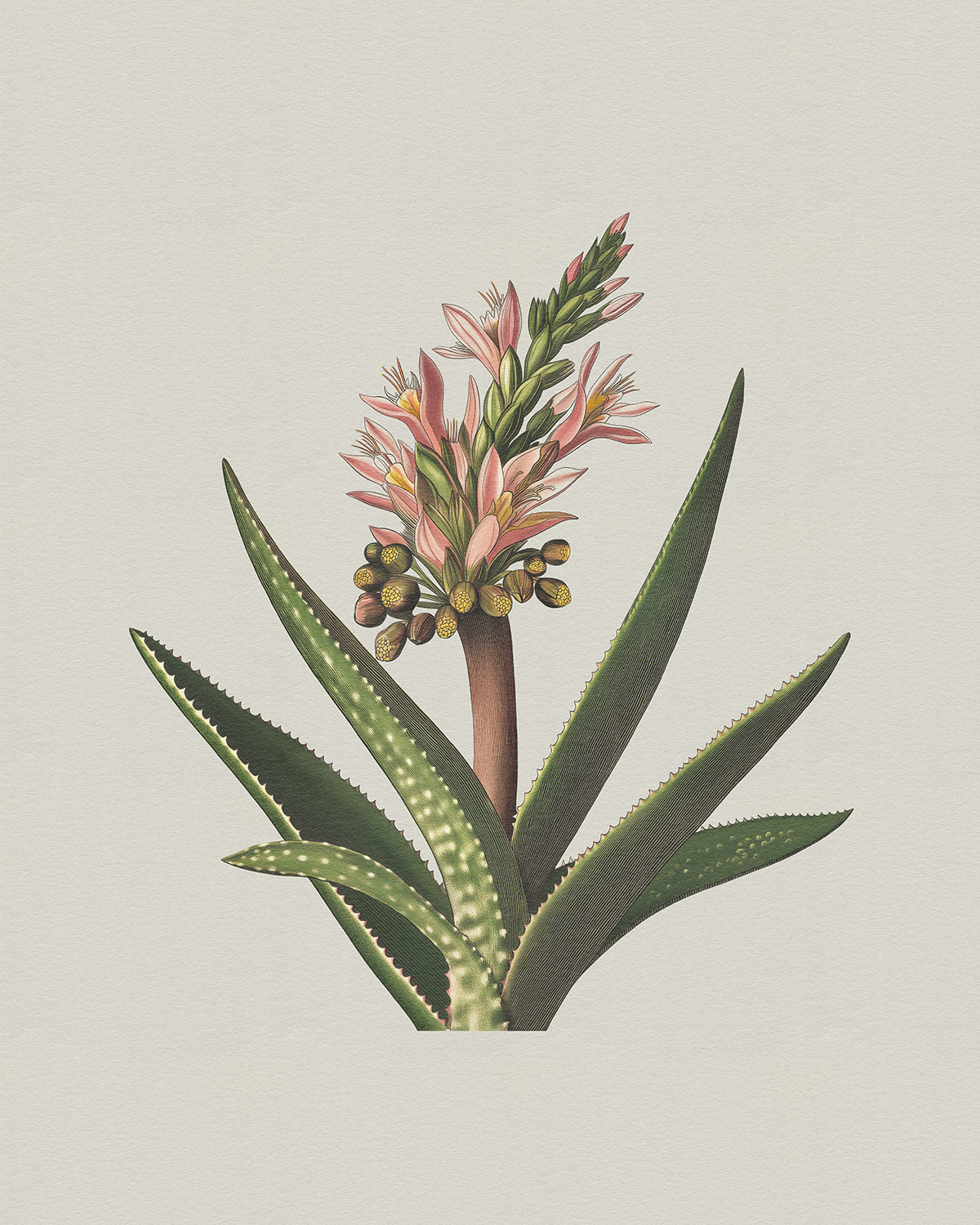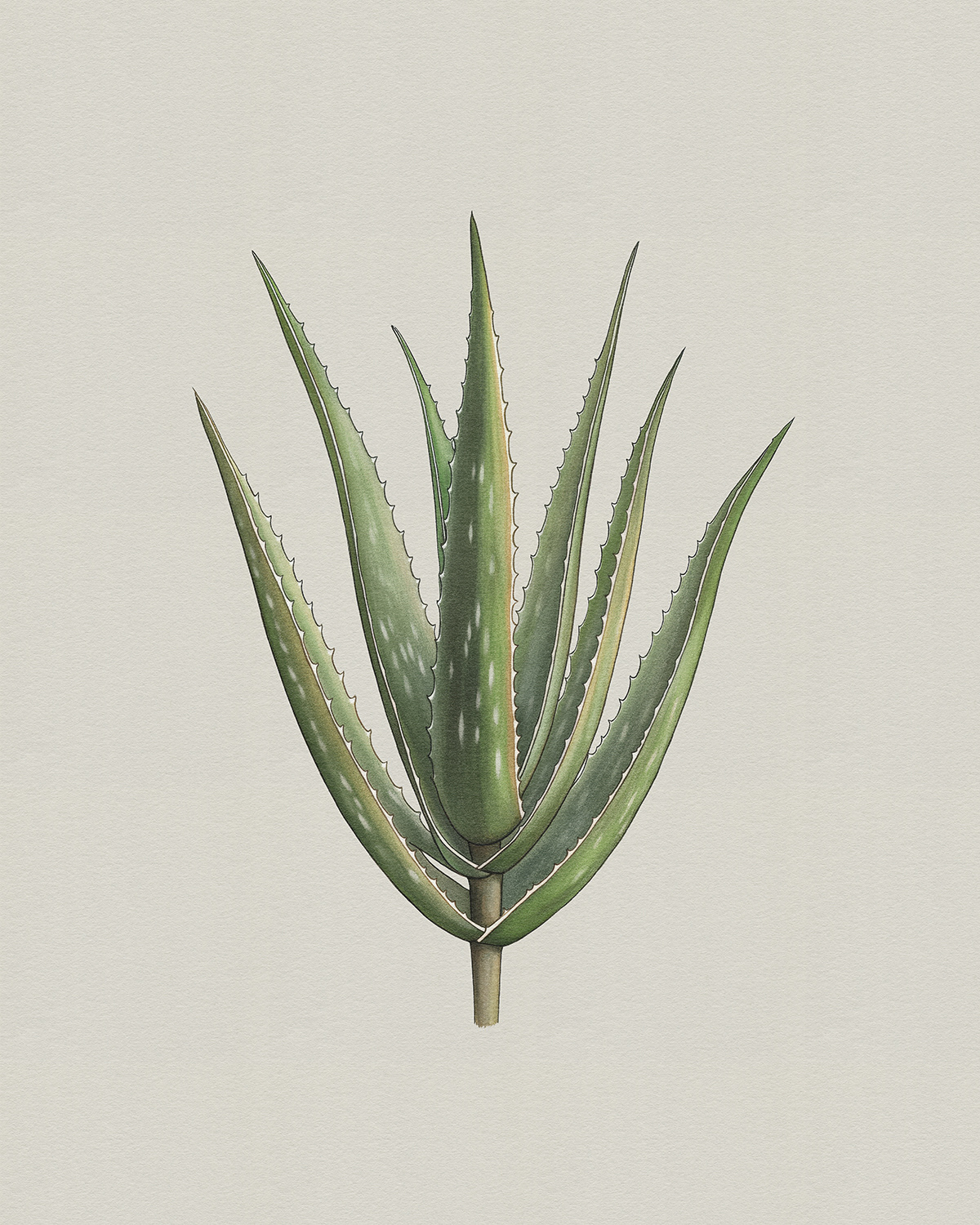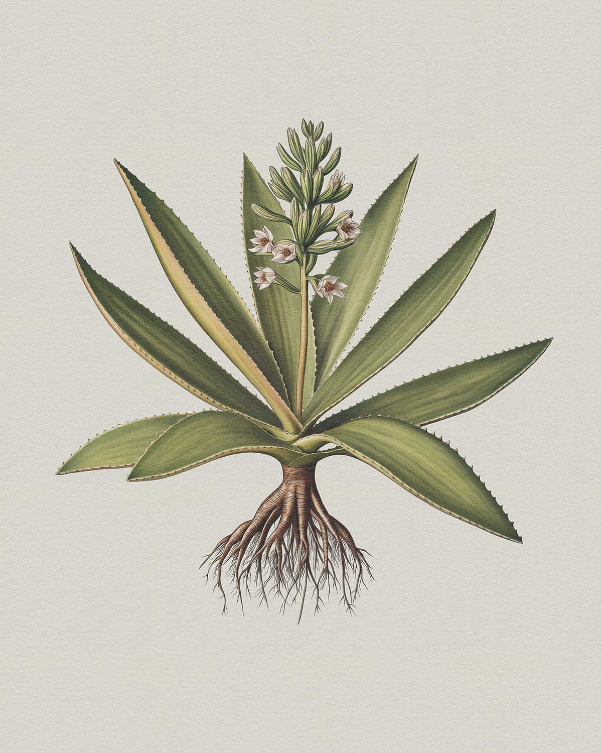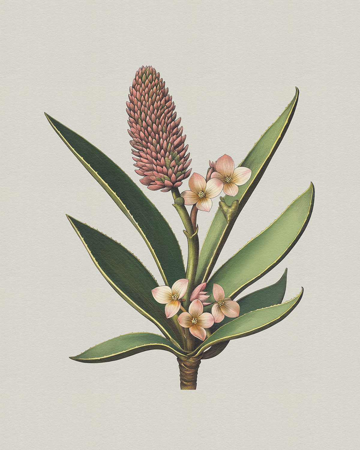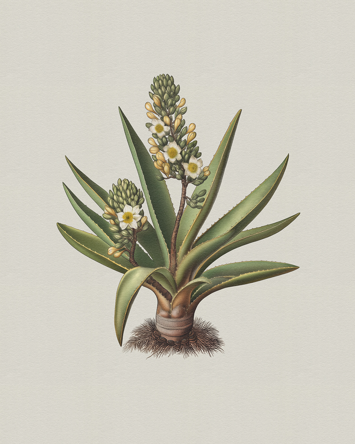 A premium AI-crafted botanical stock illustration series featuring aloe and succulent plants, intelligently generated with vintage botanical precision and modern clarity for editorial, packaging, branding, and surface design applications.