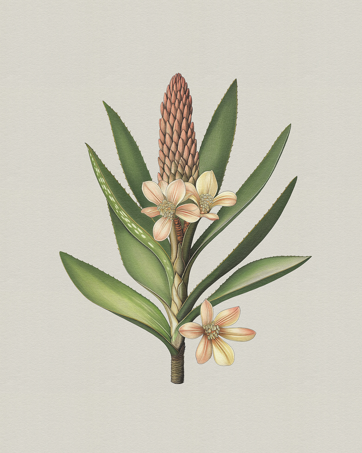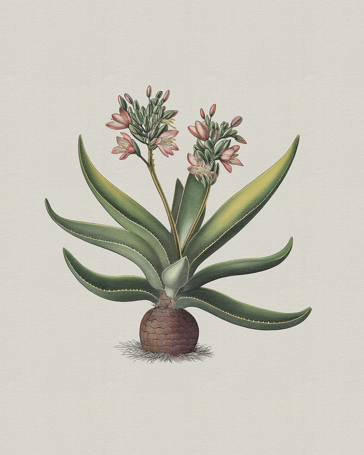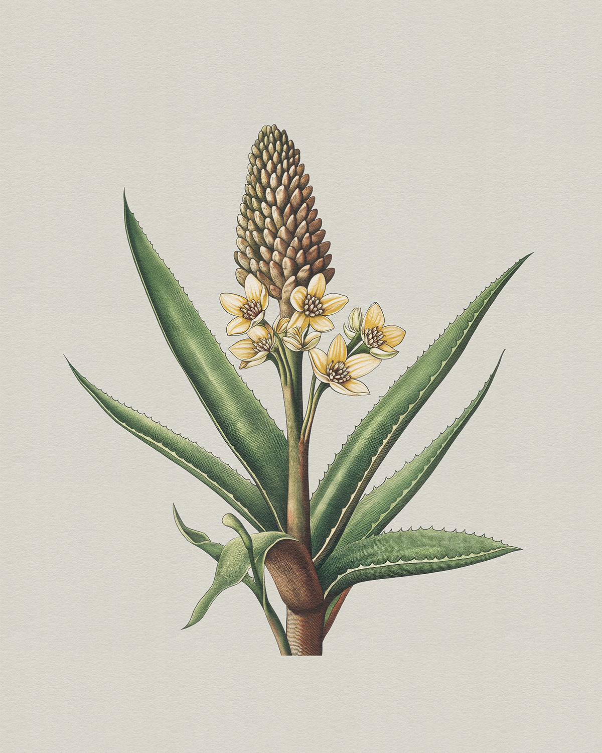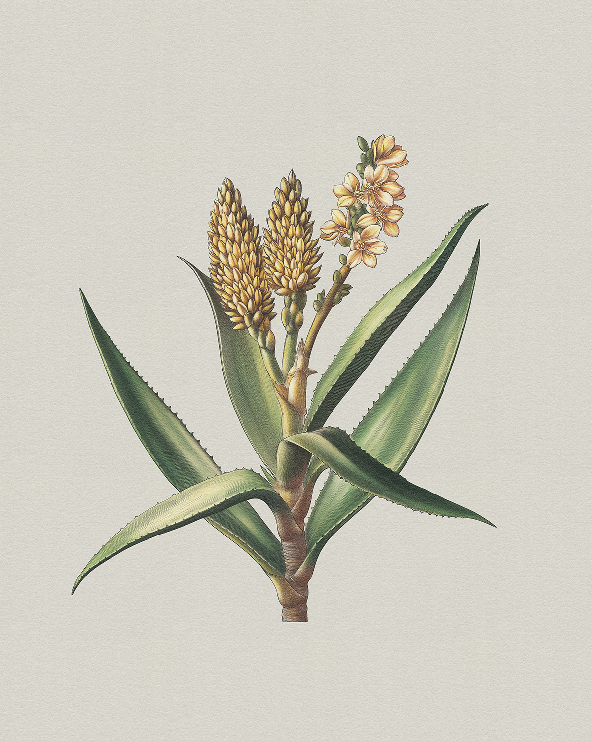 A premium AI-crafted botanical stock illustration series featuring aloe and succulent plants, intelligently generated with vintage botanical precision and modern clarity for editorial, packaging, branding, and surface design applications.