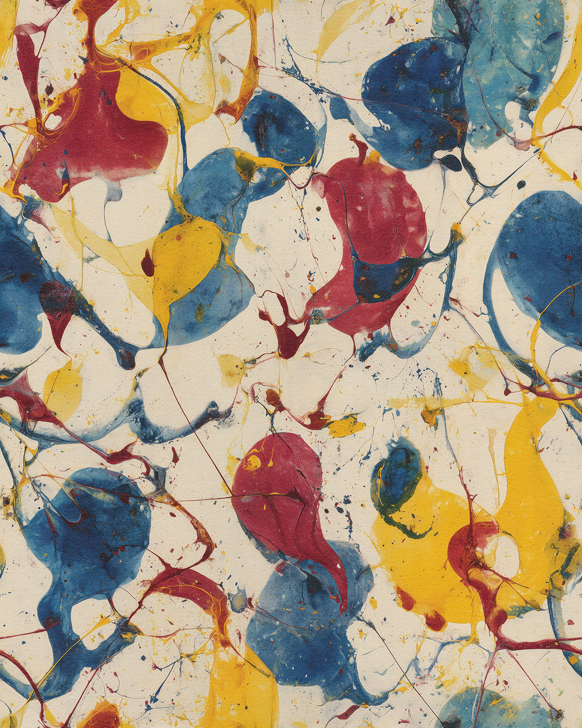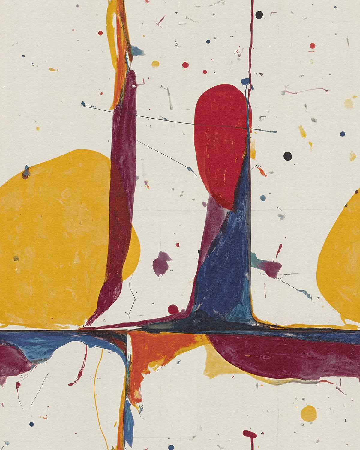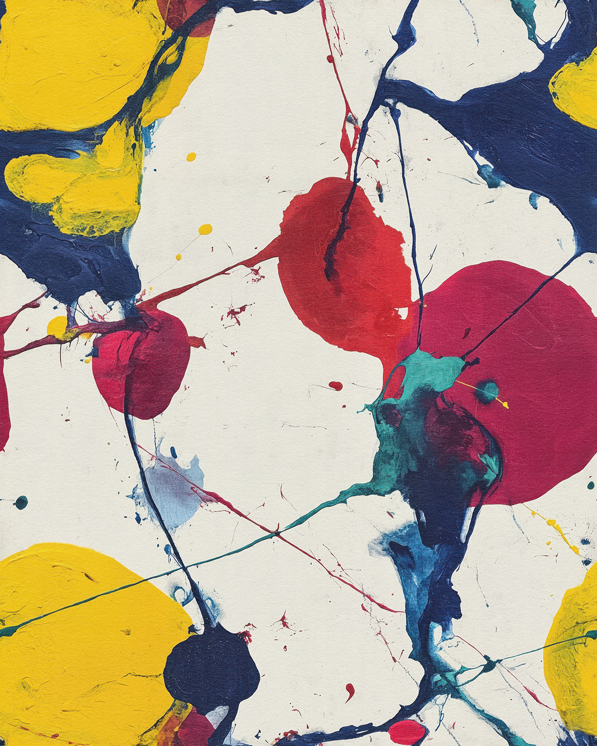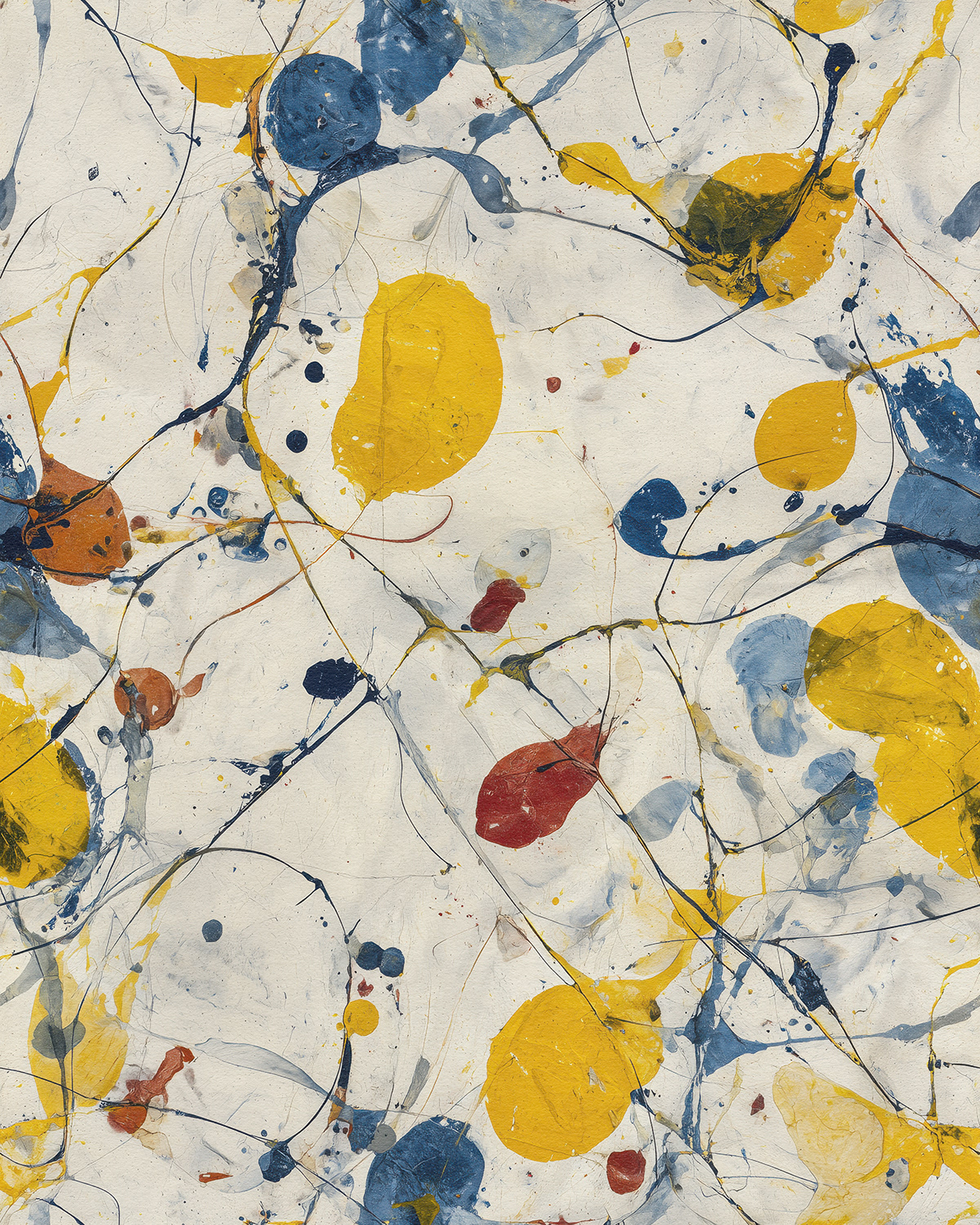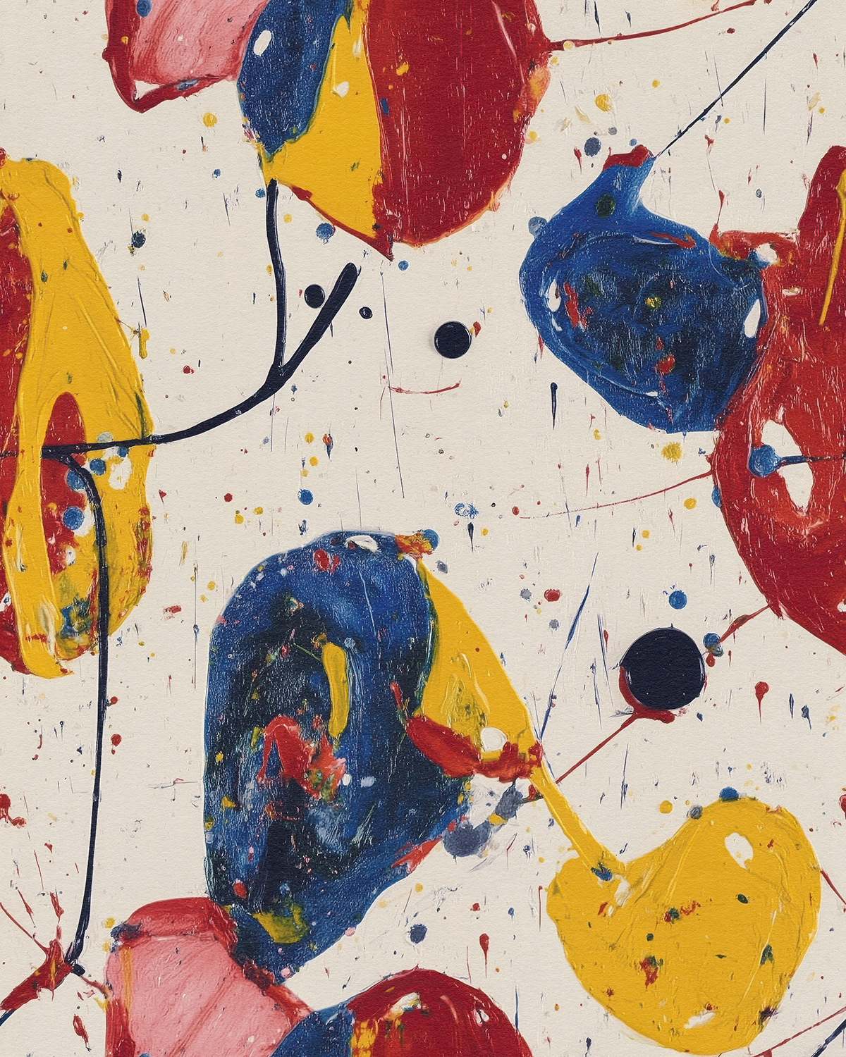 A dynamic abstract expressionist series featuring bold primary pigments, gestural drips, and layered splatter compositions. Energy-driven mark-making meets modern minimal space, creating powerful contemporary statement artworks.