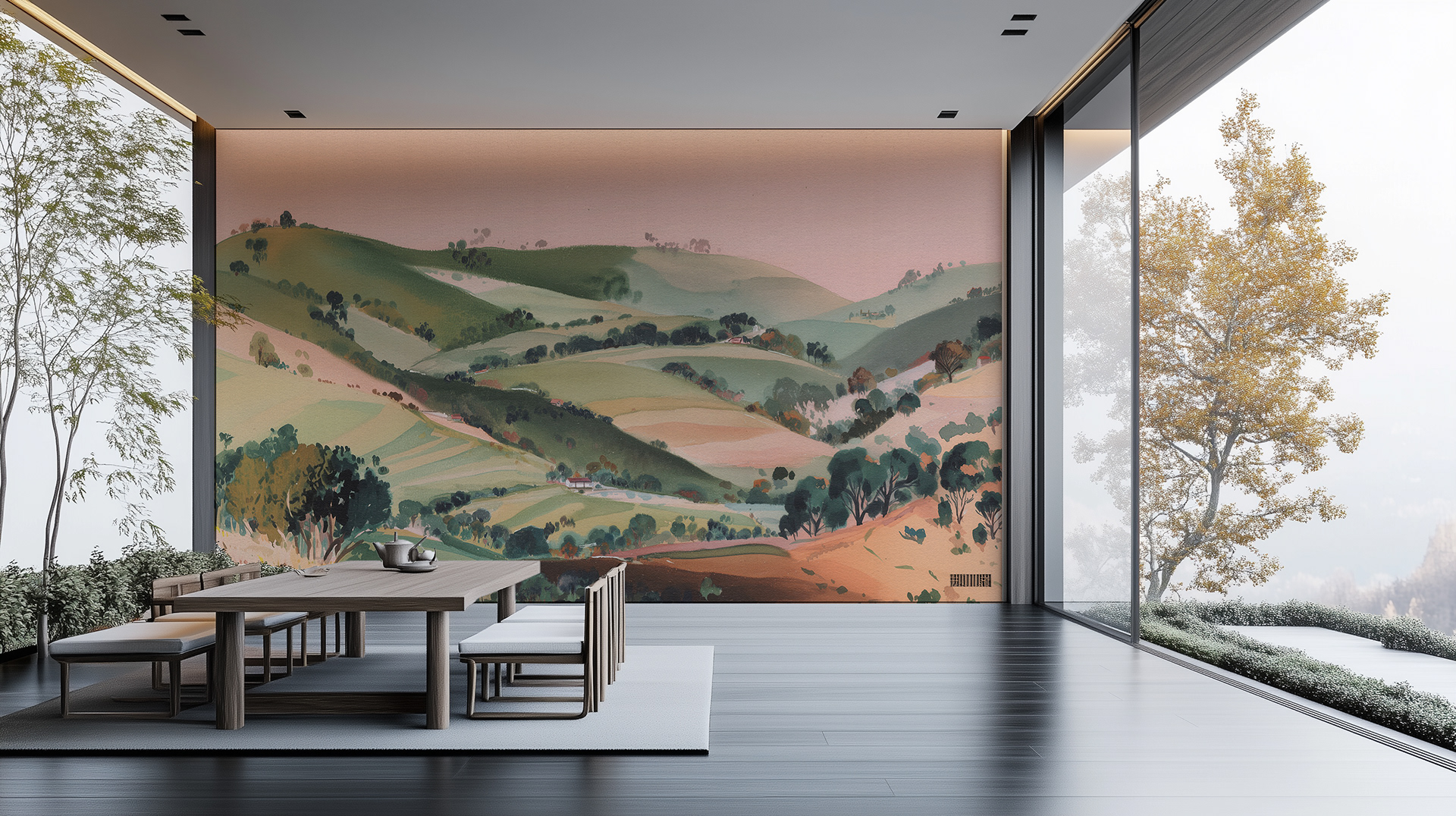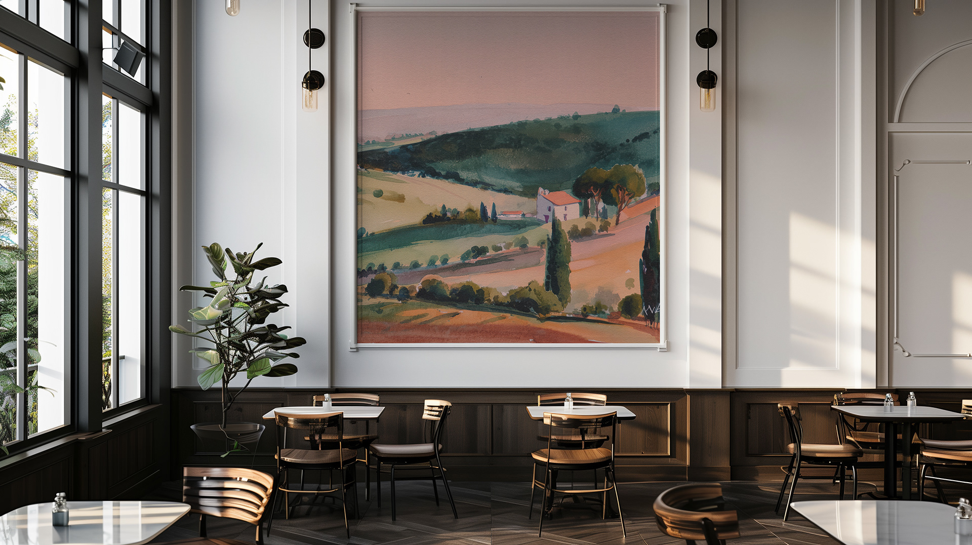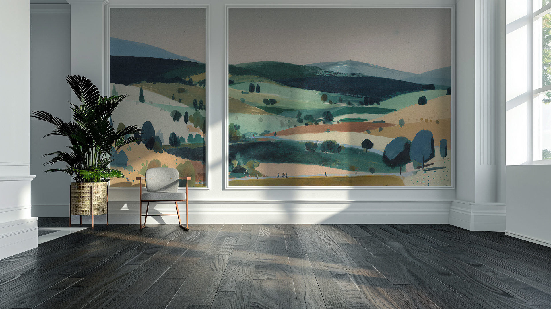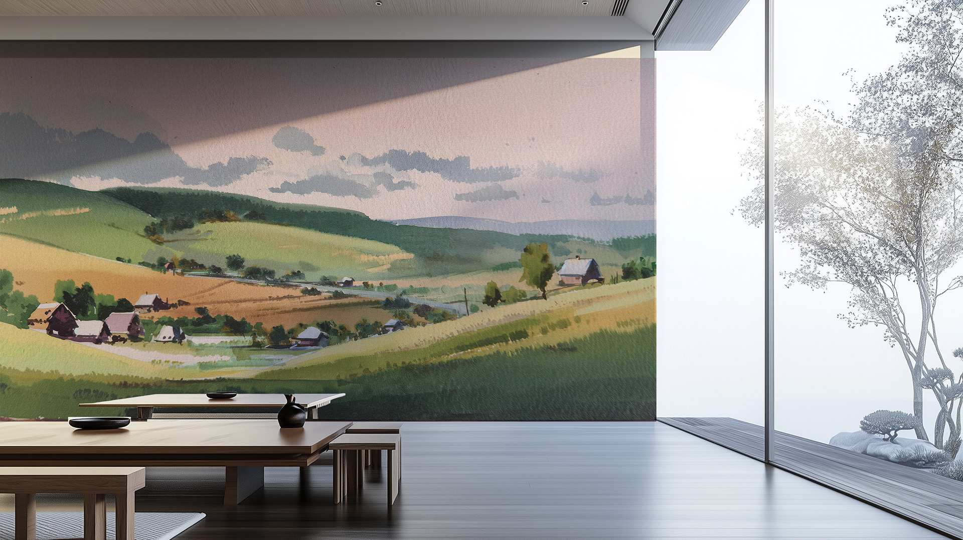 This serene watercolor series captures sweeping countryside landscapes with soft light, rolling hills, and painterly charm—an evocative blend of rural tranquility, scenic beauty, and timeless pastoral elegance.