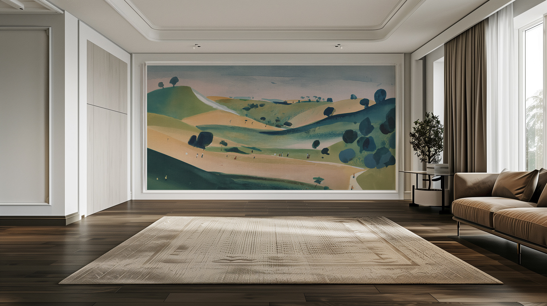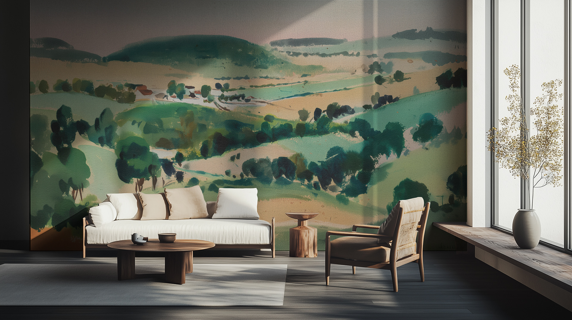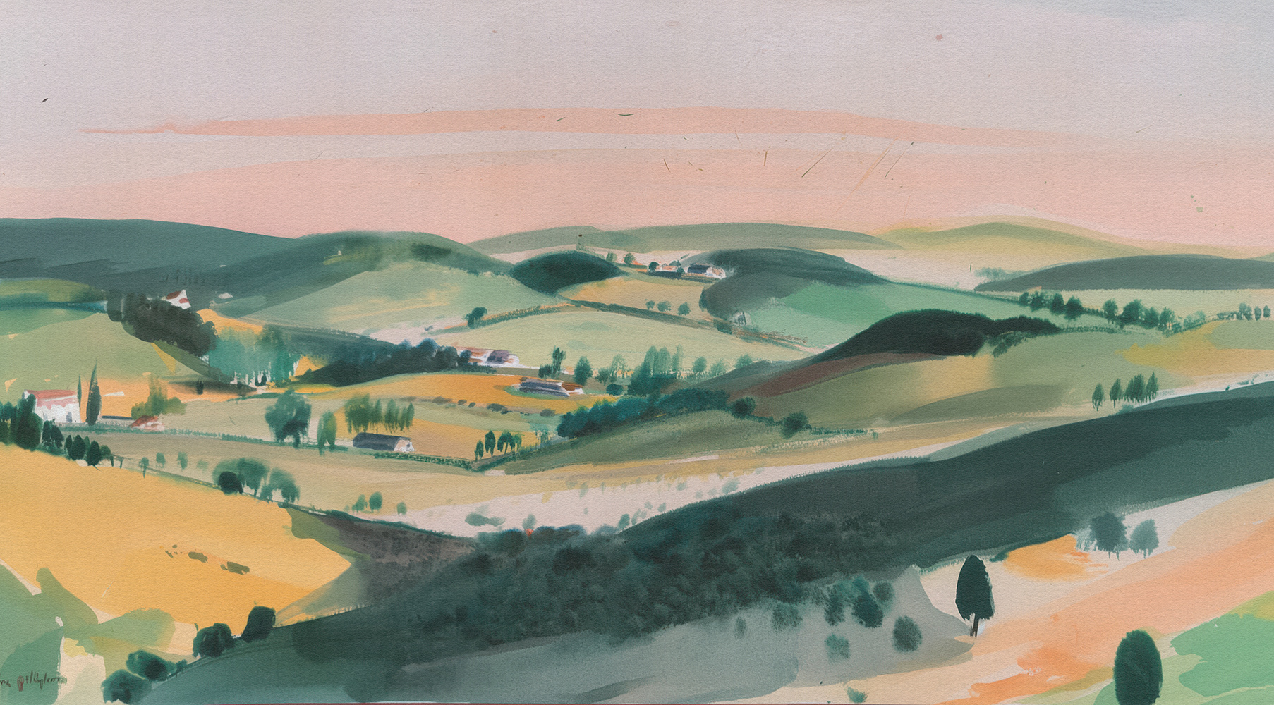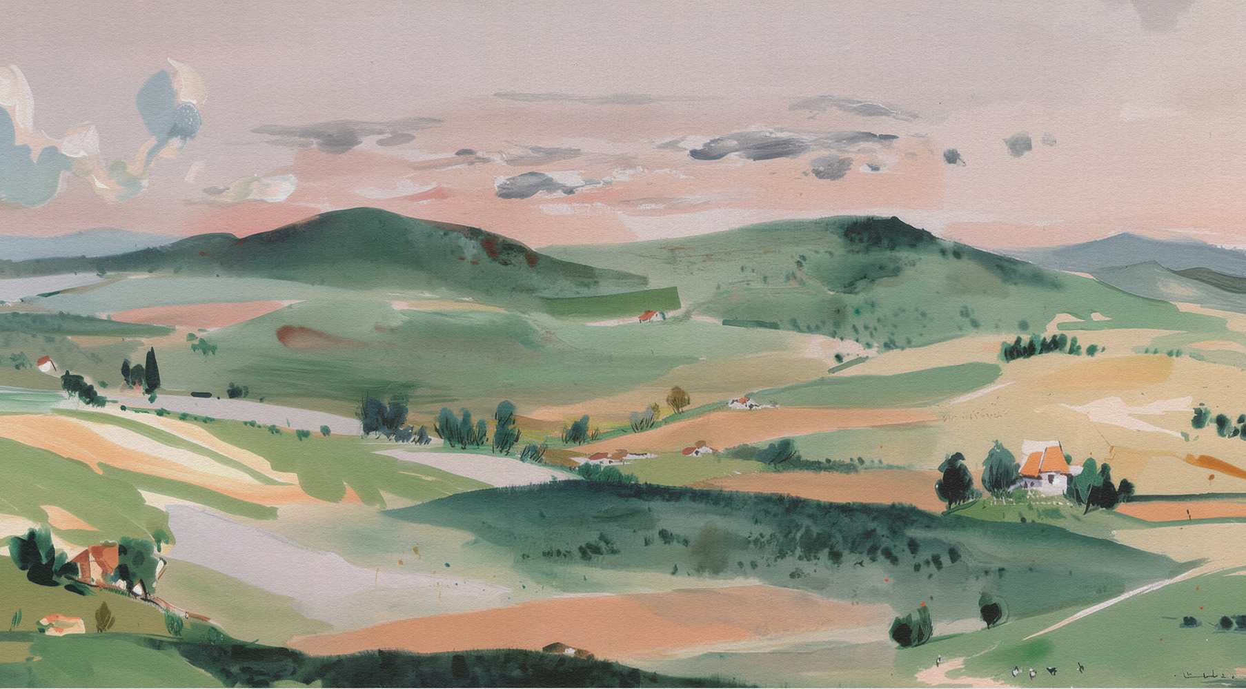 Pastoral Horizons: A Watercolor Journey Through Rolling