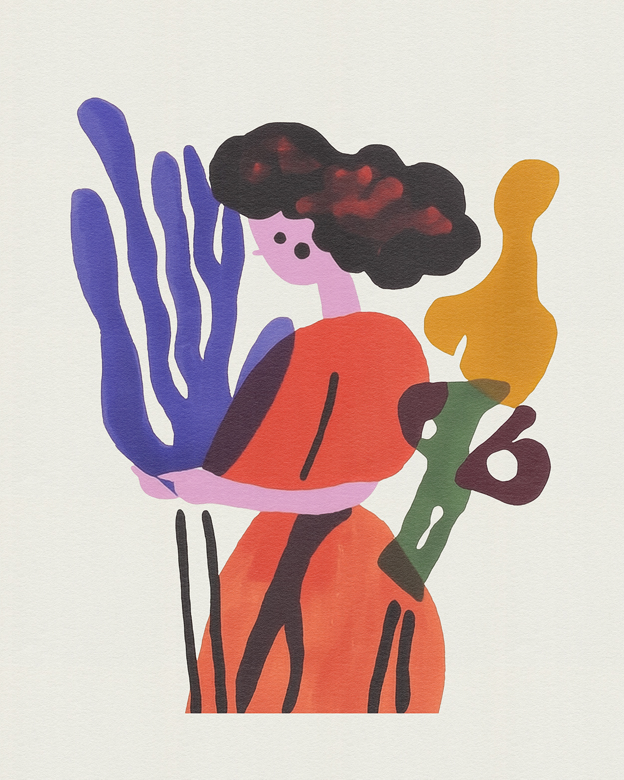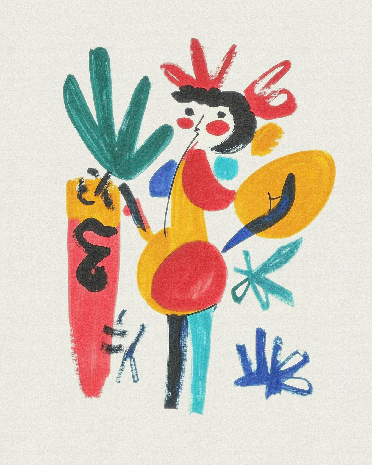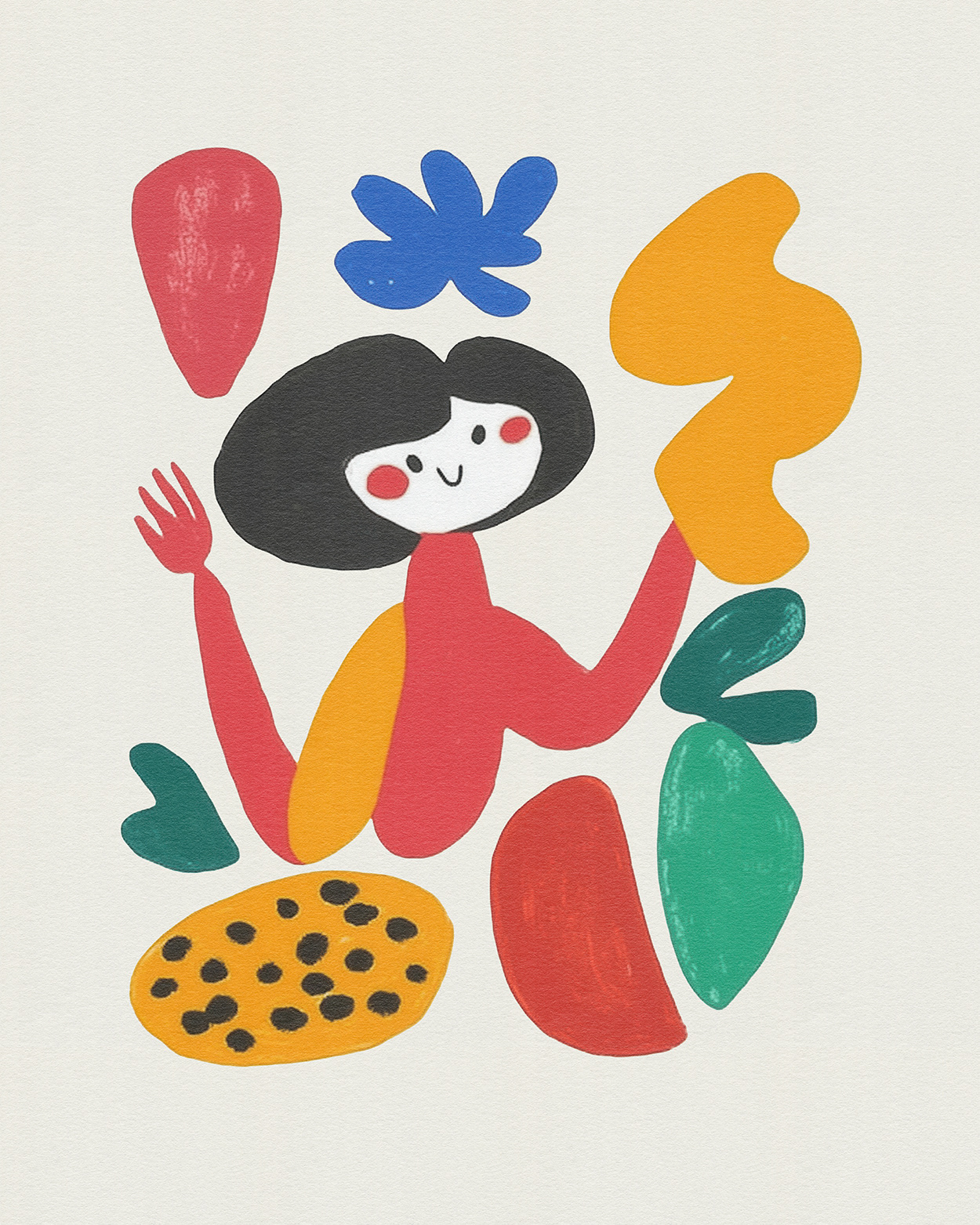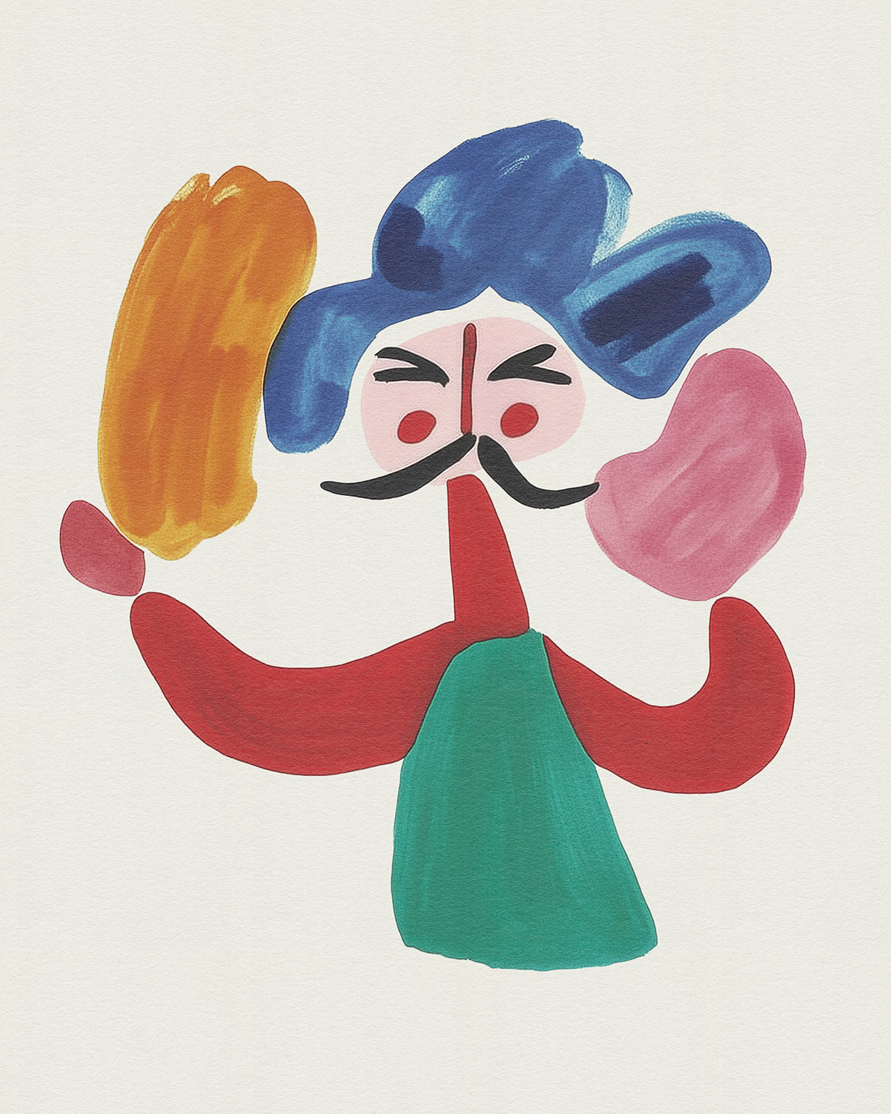This vibrant art series fuses abstract expressionism with playful surrealism, showcasing distorted human figures in bold primary hues. Each composition evokes a joyful dance between identity, emotion, and modern graphic form.