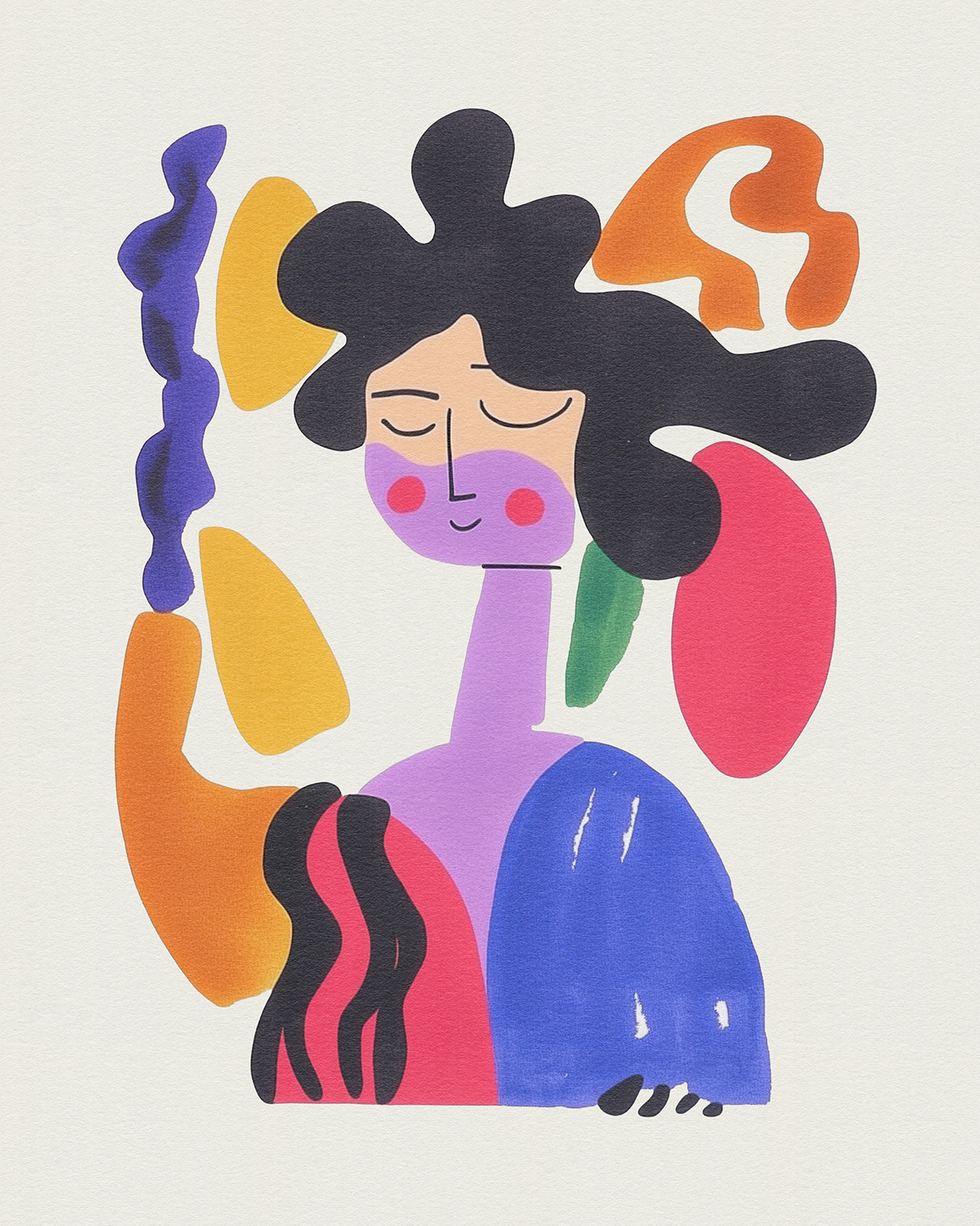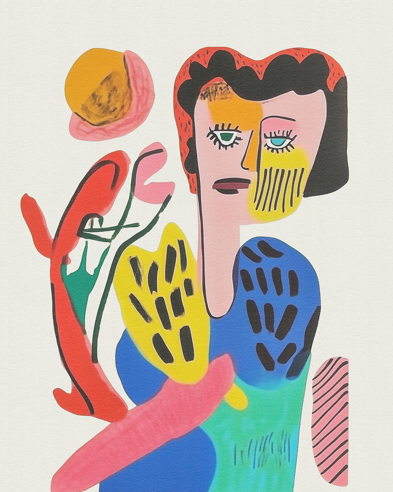 Chromatic Whimsy: Bold Faces in Abstract Motion