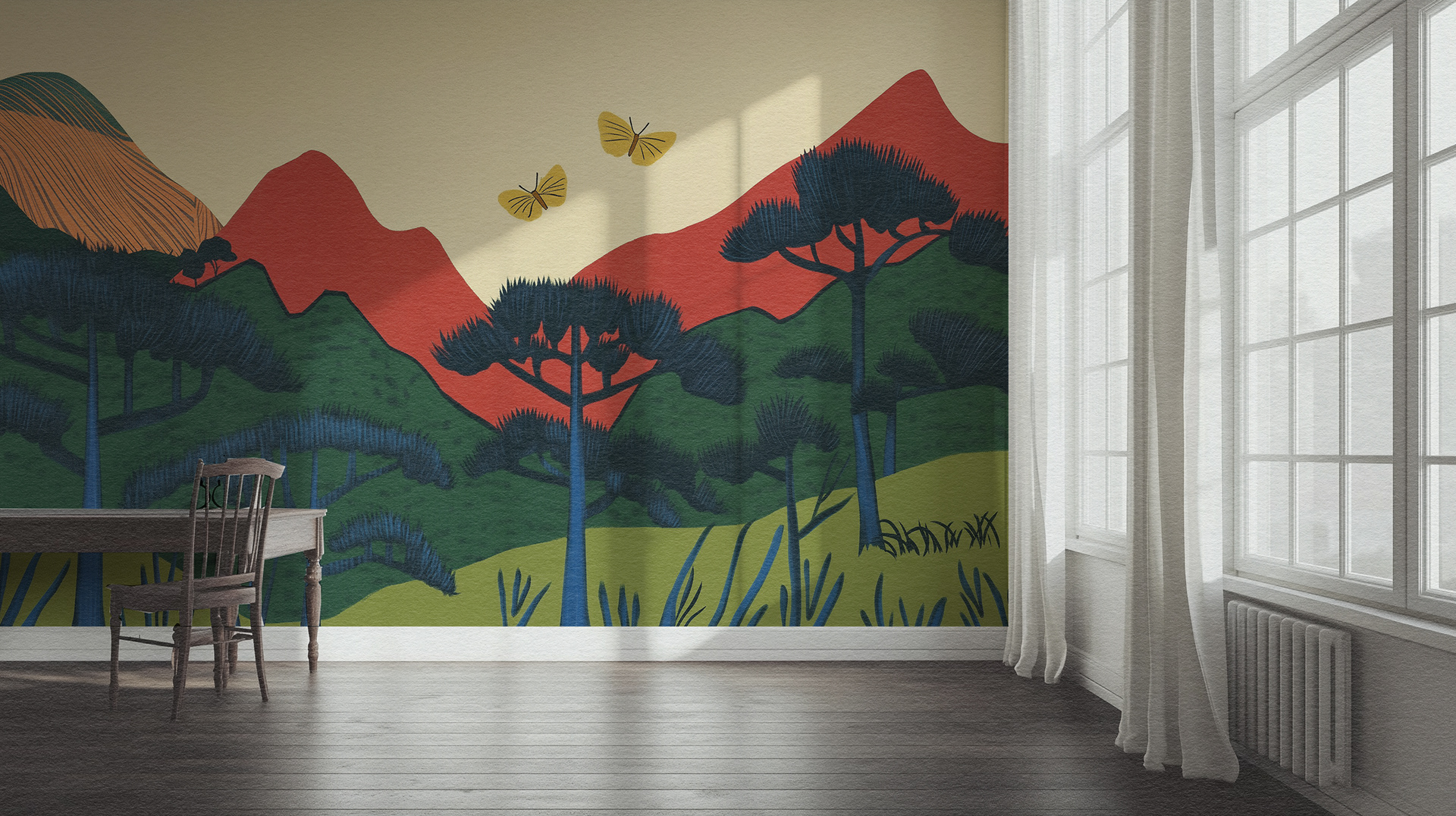 This mesmerizing art series blends contemporary landscape art with Asian-inspired minimalism, depicting lush green mountains, striking red trees, and graceful white birds in motion. The bold color palette and delicate brushwork evoke a dreamlike tranquility, celebrating the harmony between land and sky. Perfect for collectors of modern landscape paintings, nature-inspired art, and serene scenic compositions.