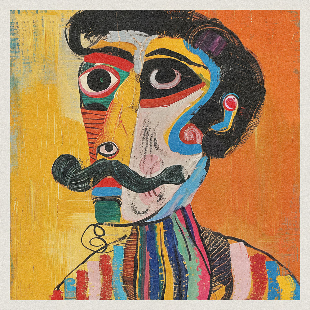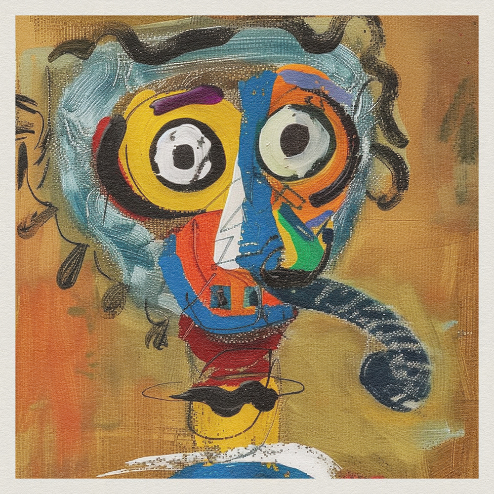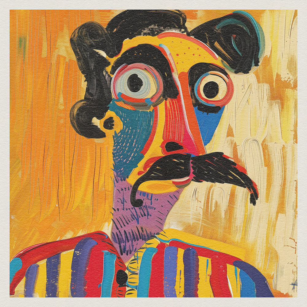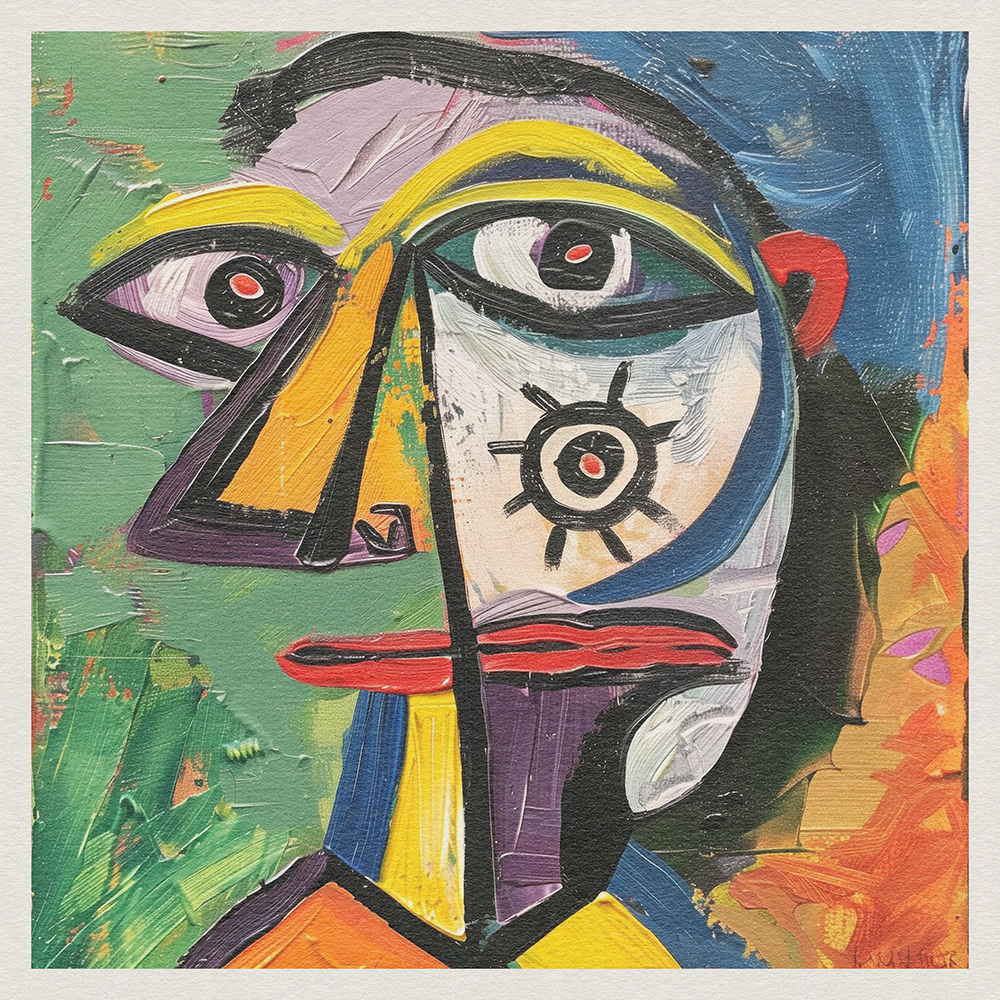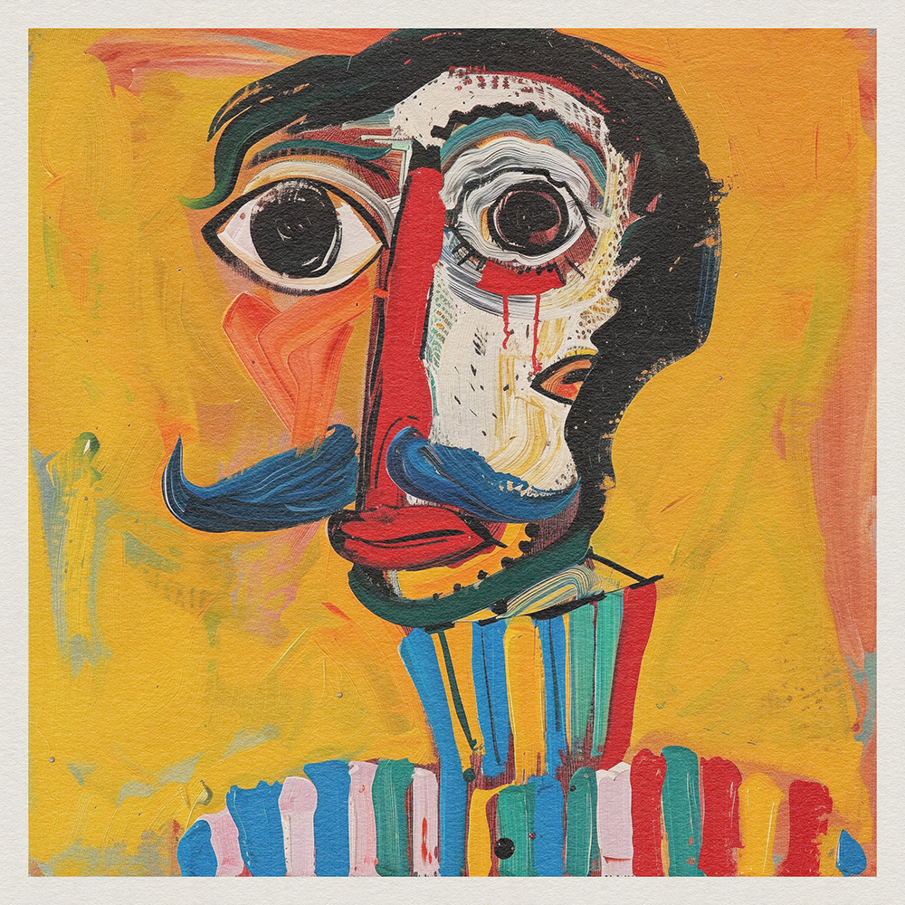 The series is a striking exploration of emotional depth, melding chaotic abstraction with the human visage, challenging perceptions of identity through bold color and impassioned, textured strokes