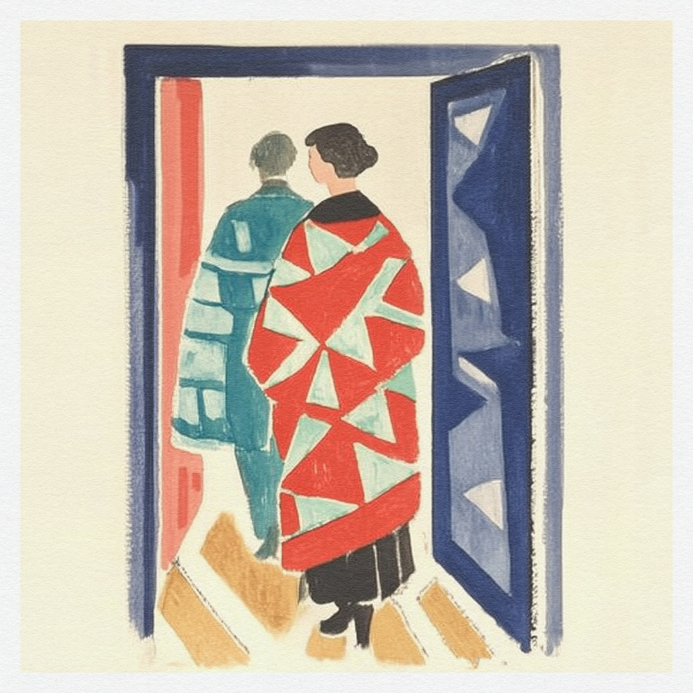 This art series explores the interplay between bold geometric patterns and minimalist silhouettes, capturing figures in fluid movement. Through vibrant reds, blues, and abstract forms, it evokes a sense of timeless sophistication and modern fashion. Each piece merges contemporary minimalism with striking colors, offering an elegant portrayal of fashion's connection to environment and identity. Perfect for art enthusiasts drawn to mid-century style and modernist abstraction.