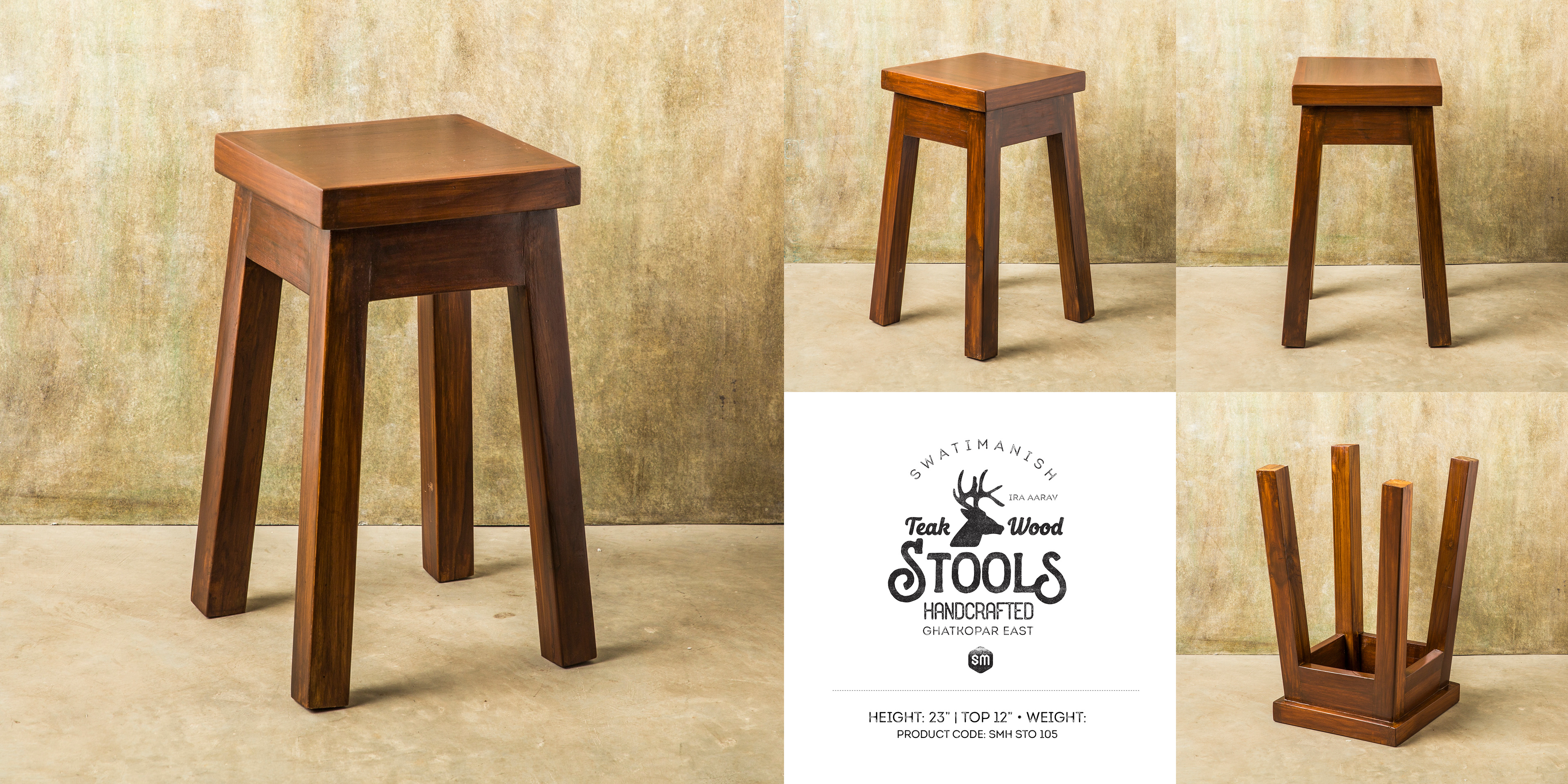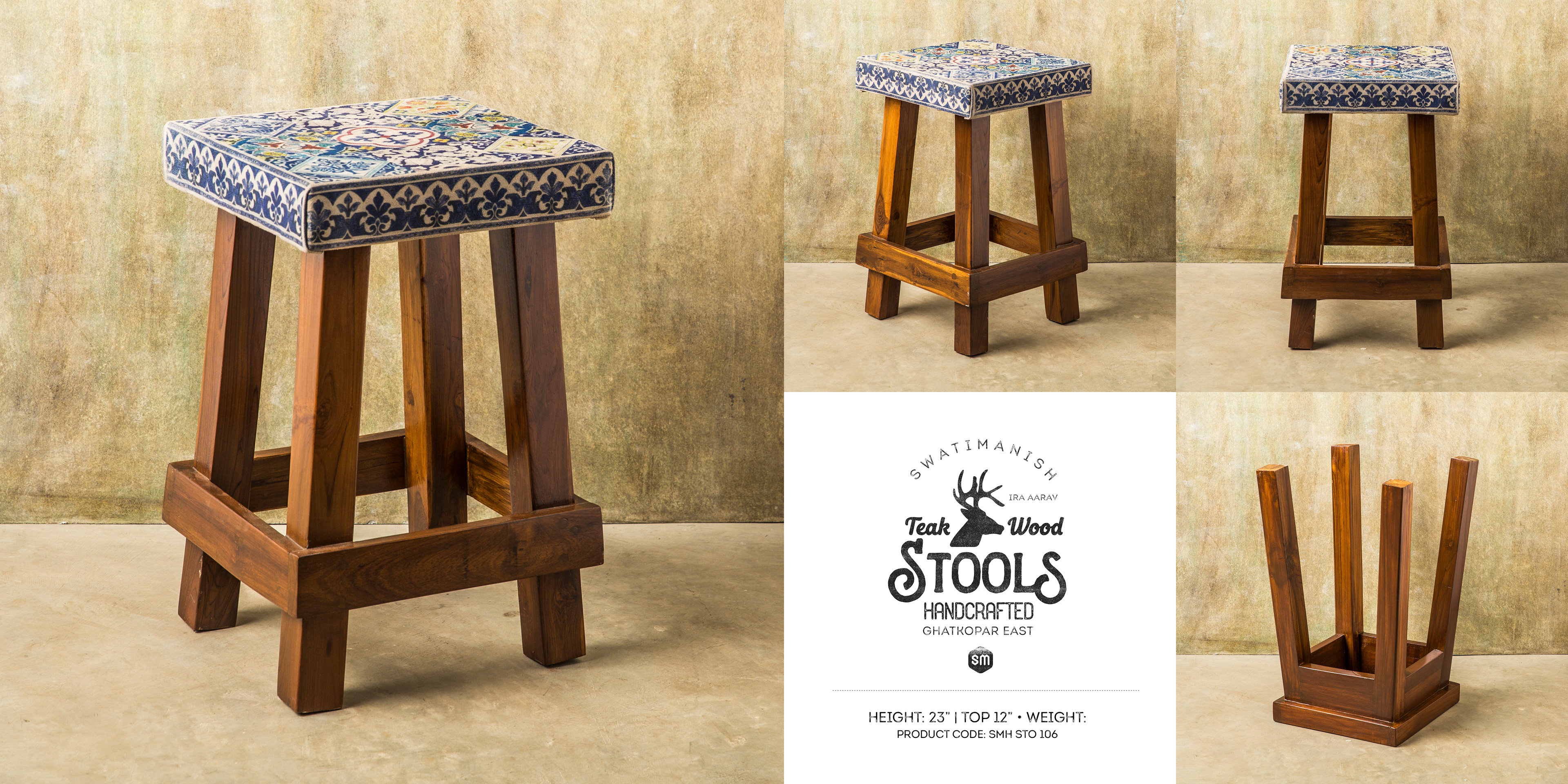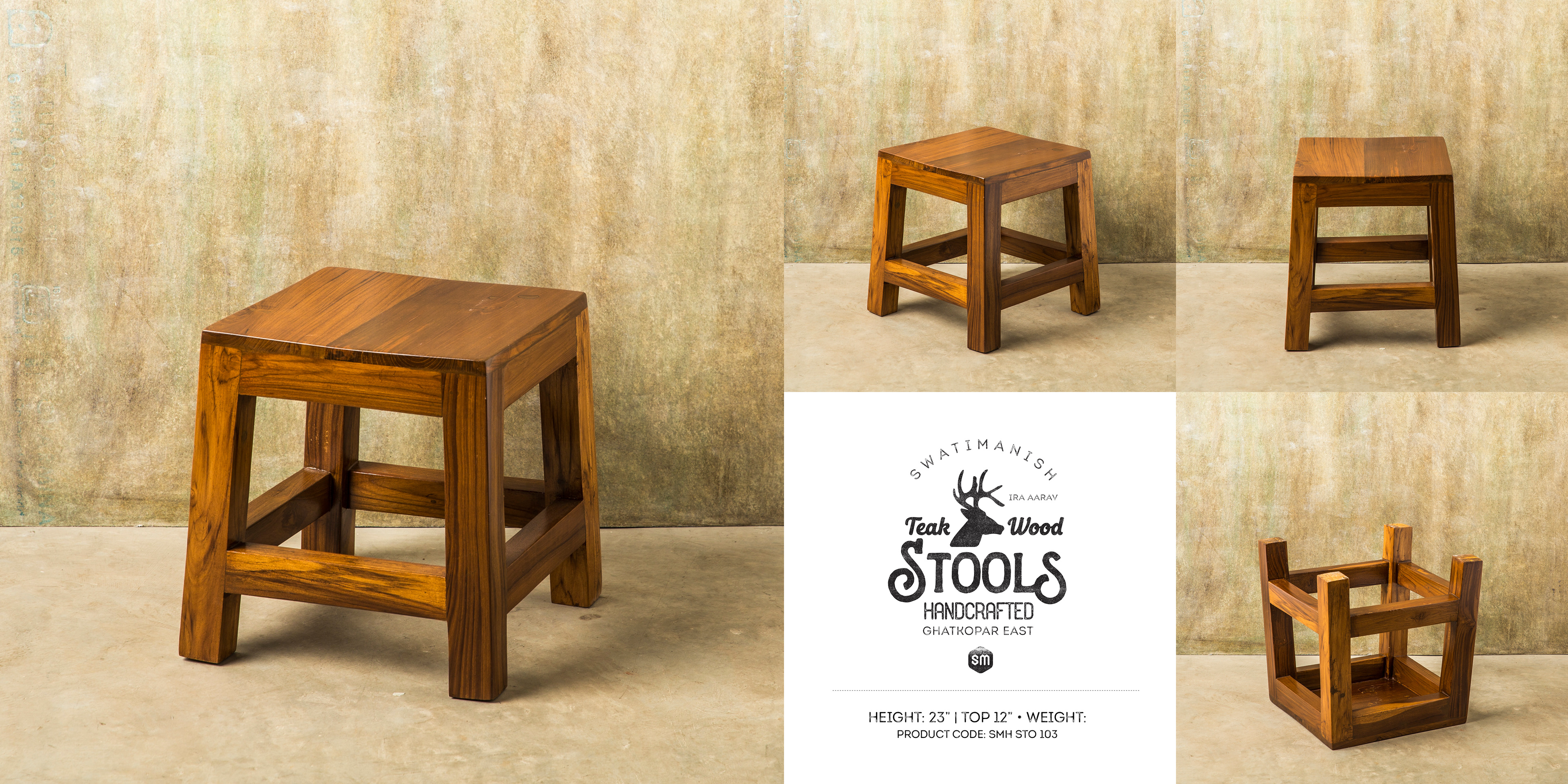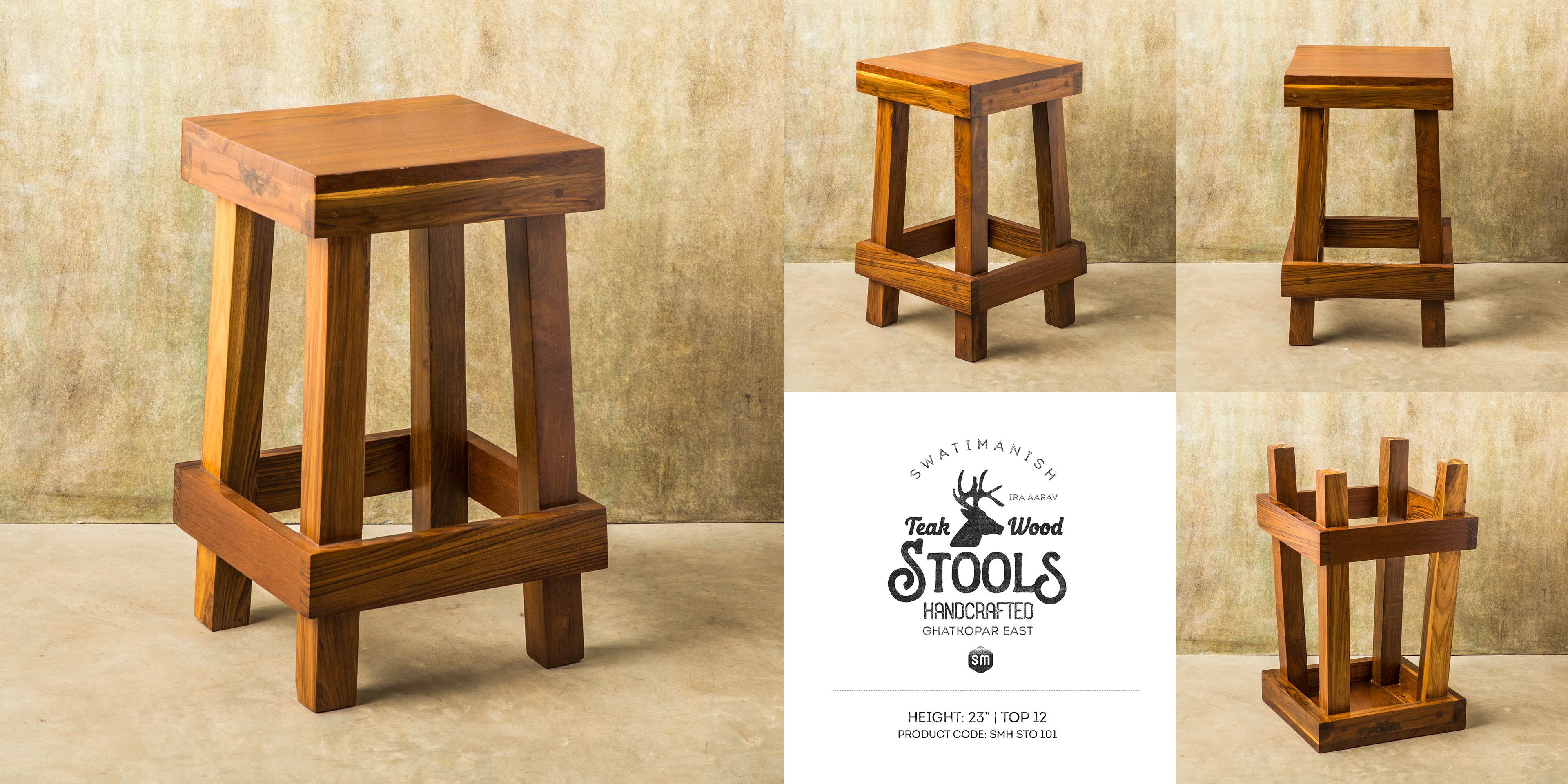 SwatiManish Handcrafted Teak-Wood Stools