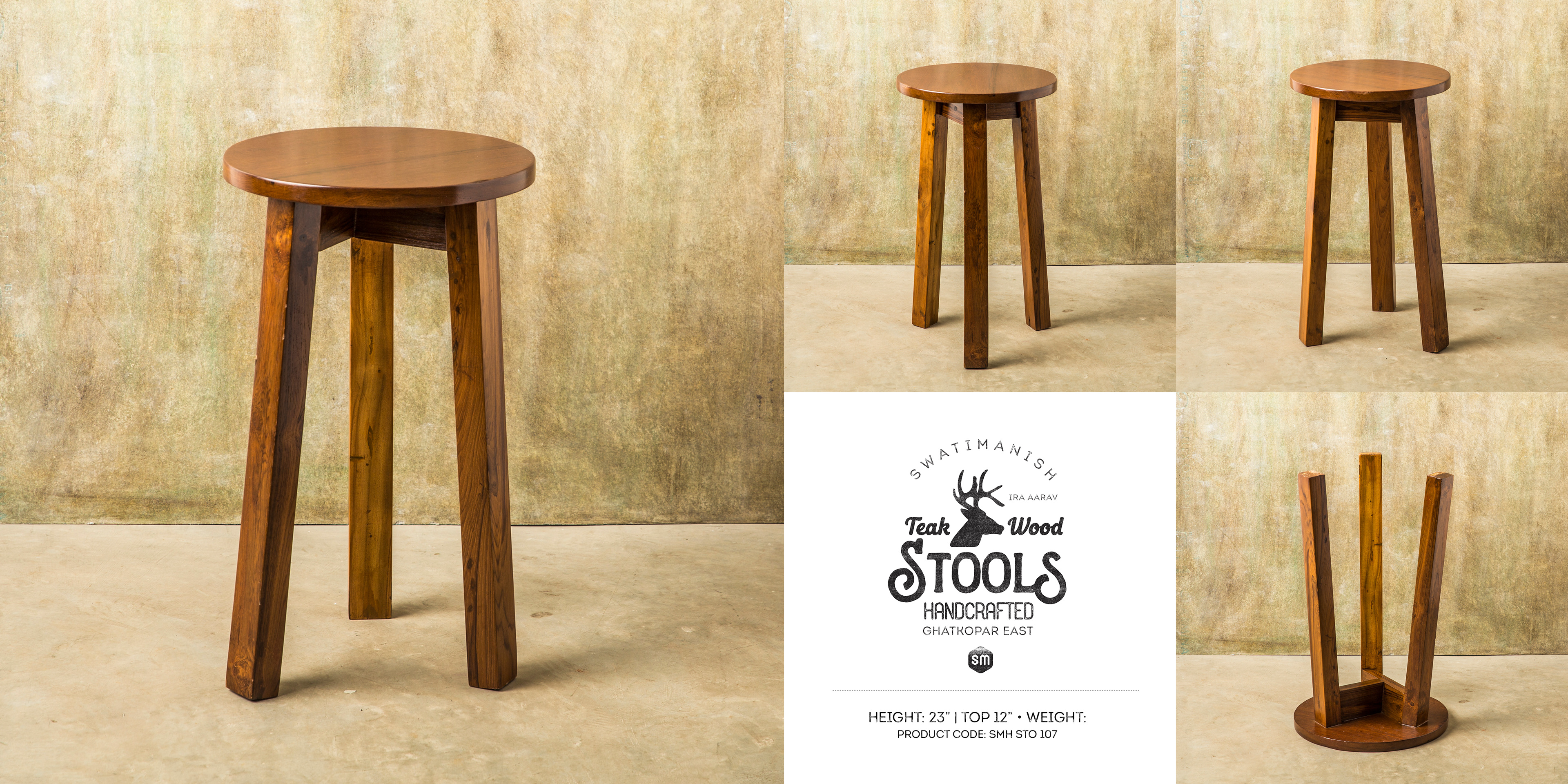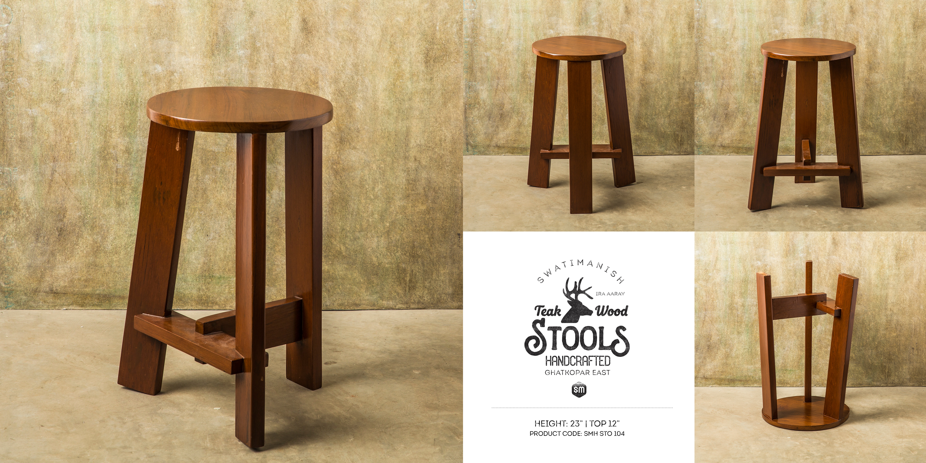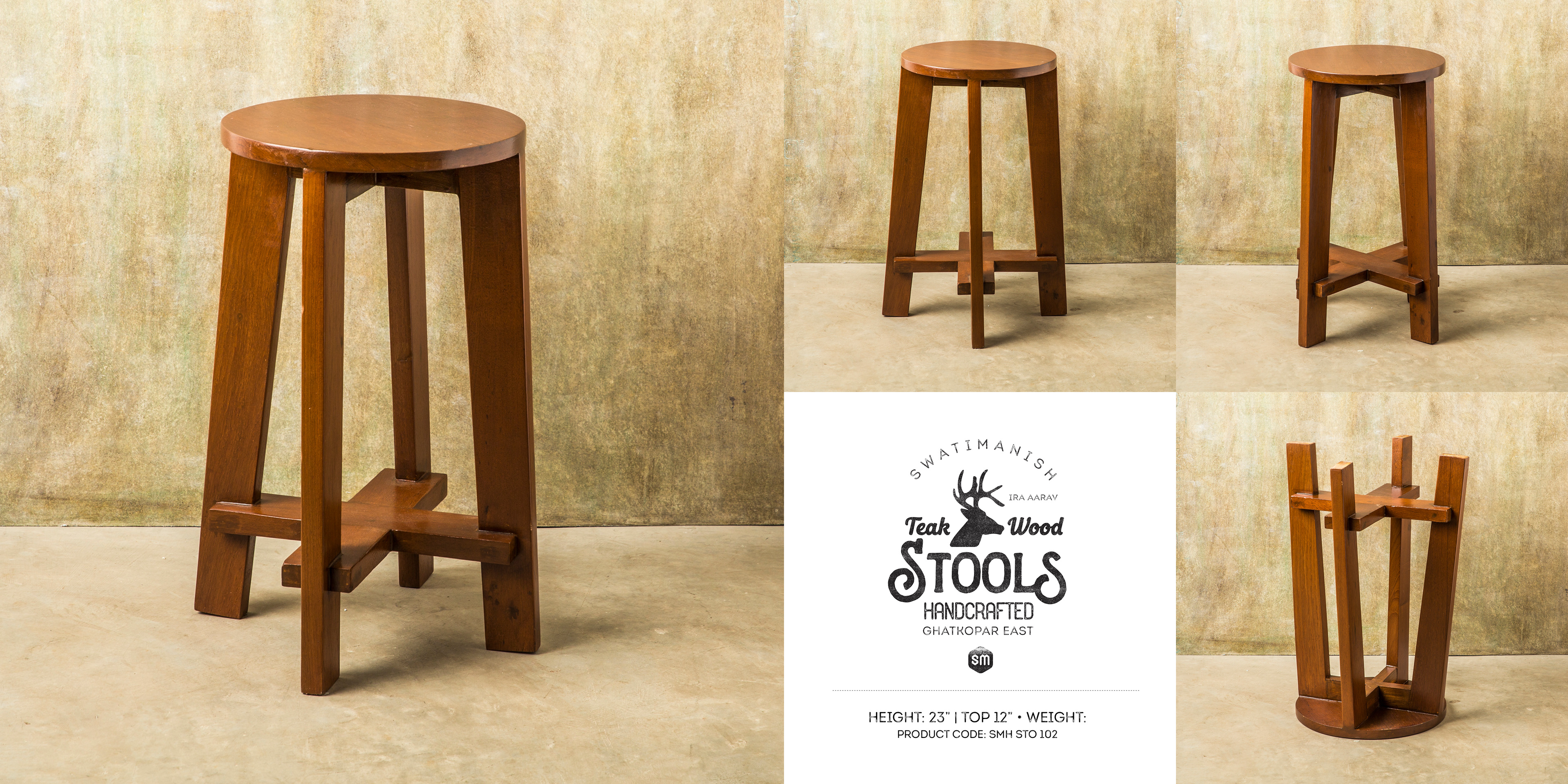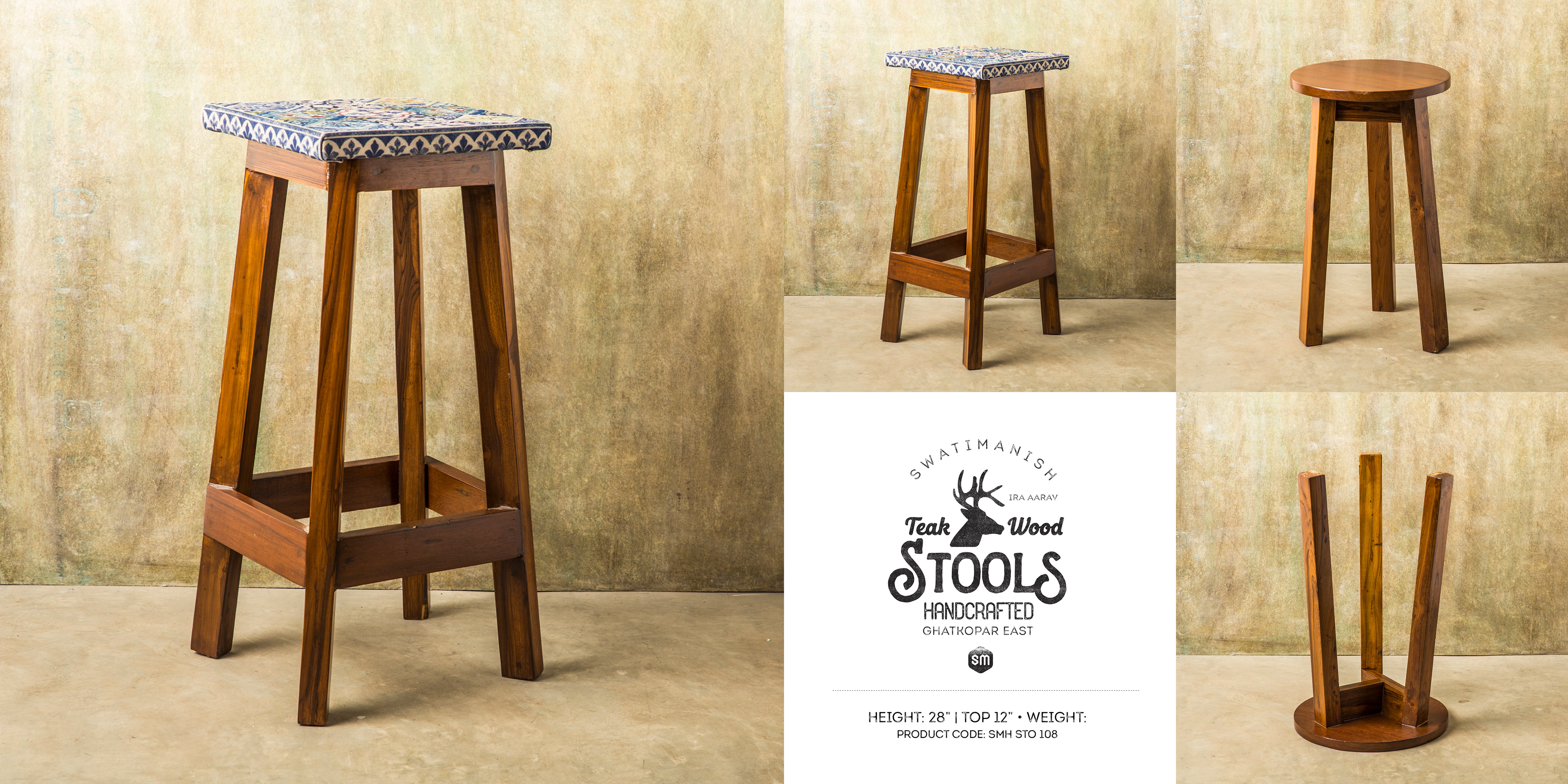SwatiManish Handcrafted Teak-Wood Stools