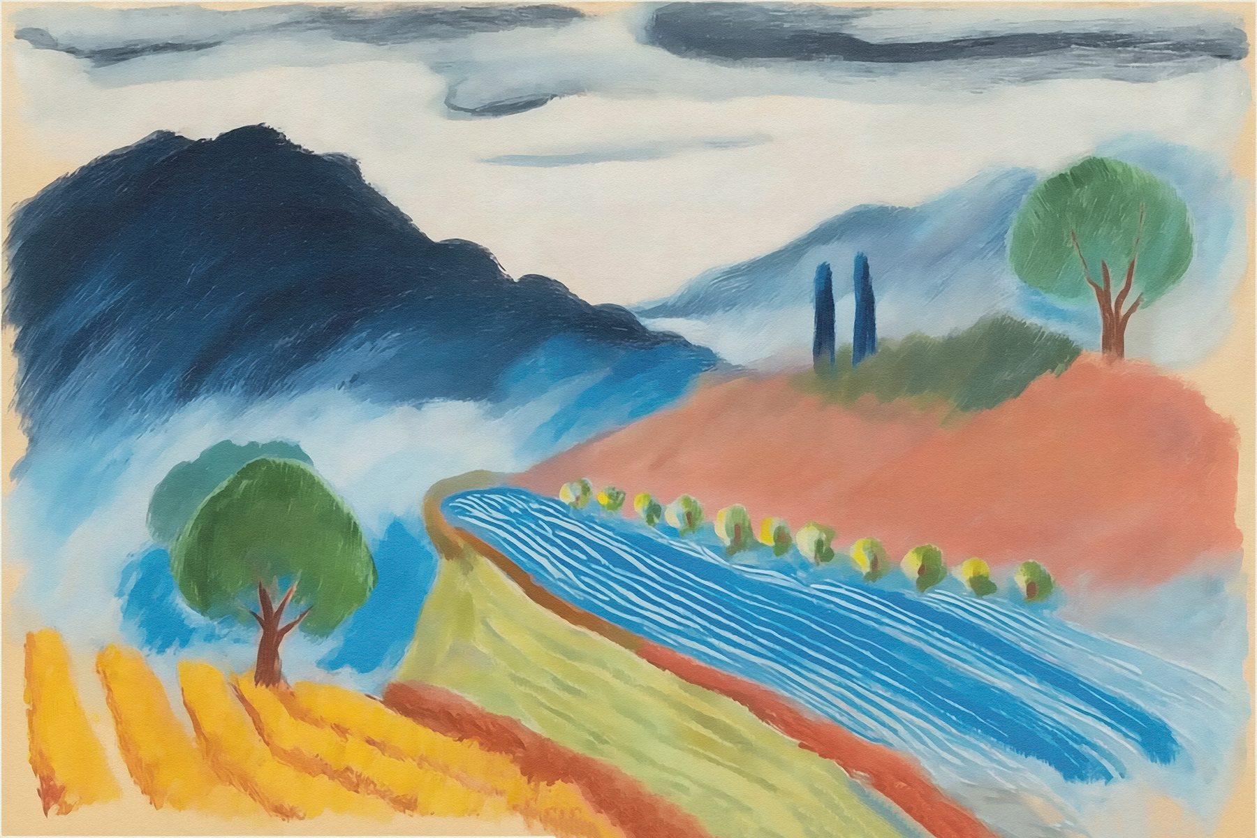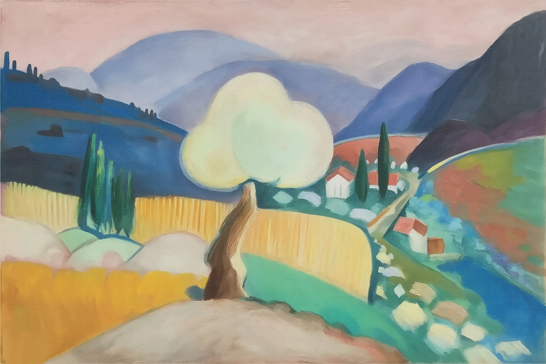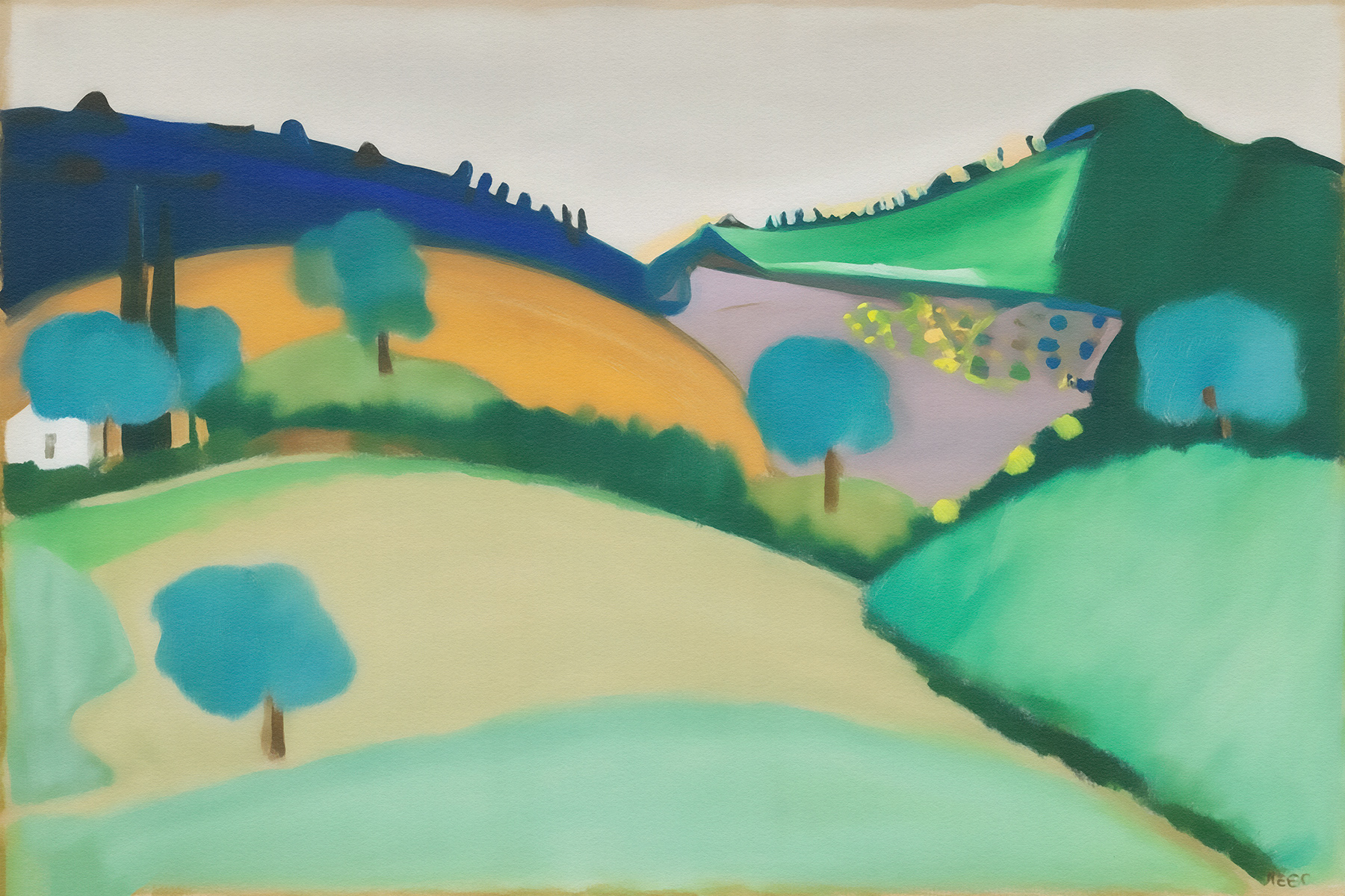 This series reimagines pastoral landscapes through sweeping forms, luminous pastels, and sculpted horizons. Each composition merges abstraction and realism, offering a serene, color-rich meditation on nature’s geometry and emotional stillness.