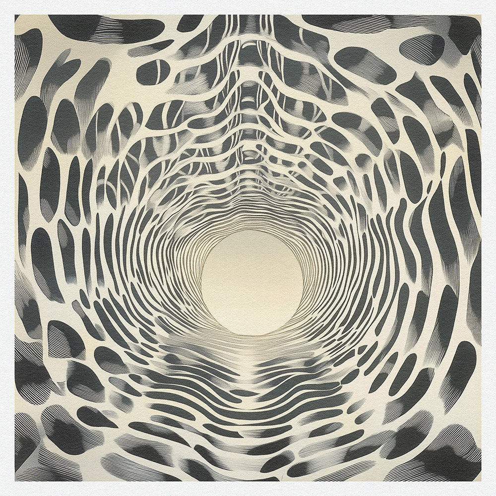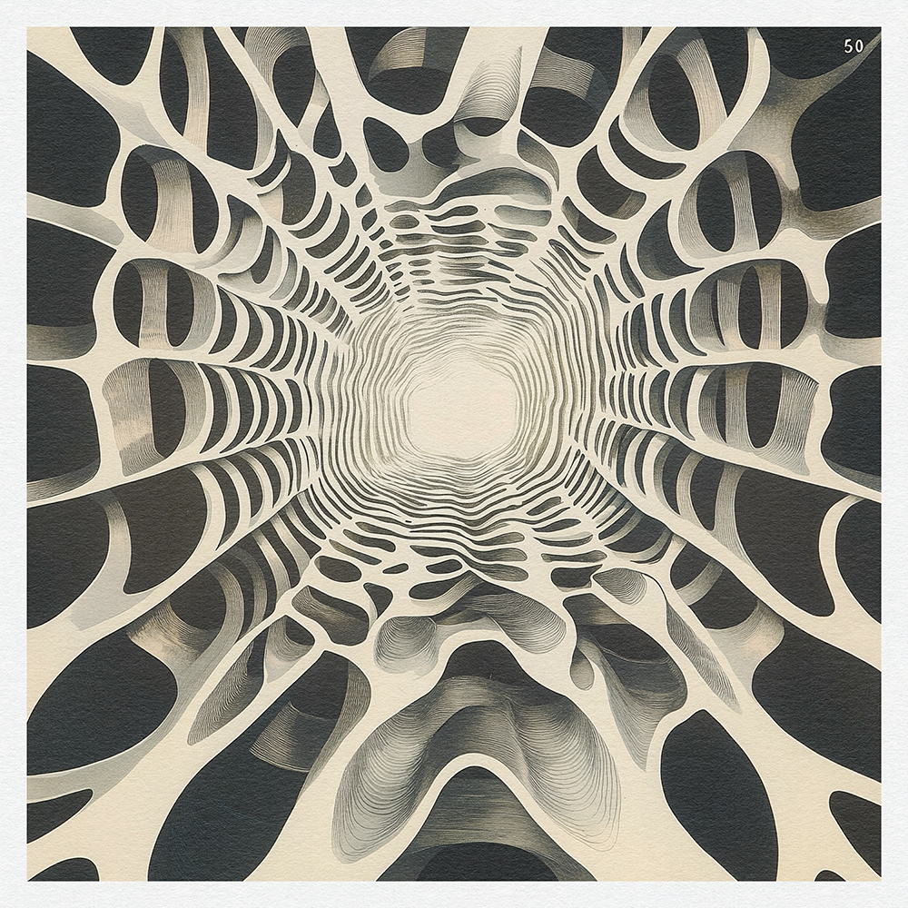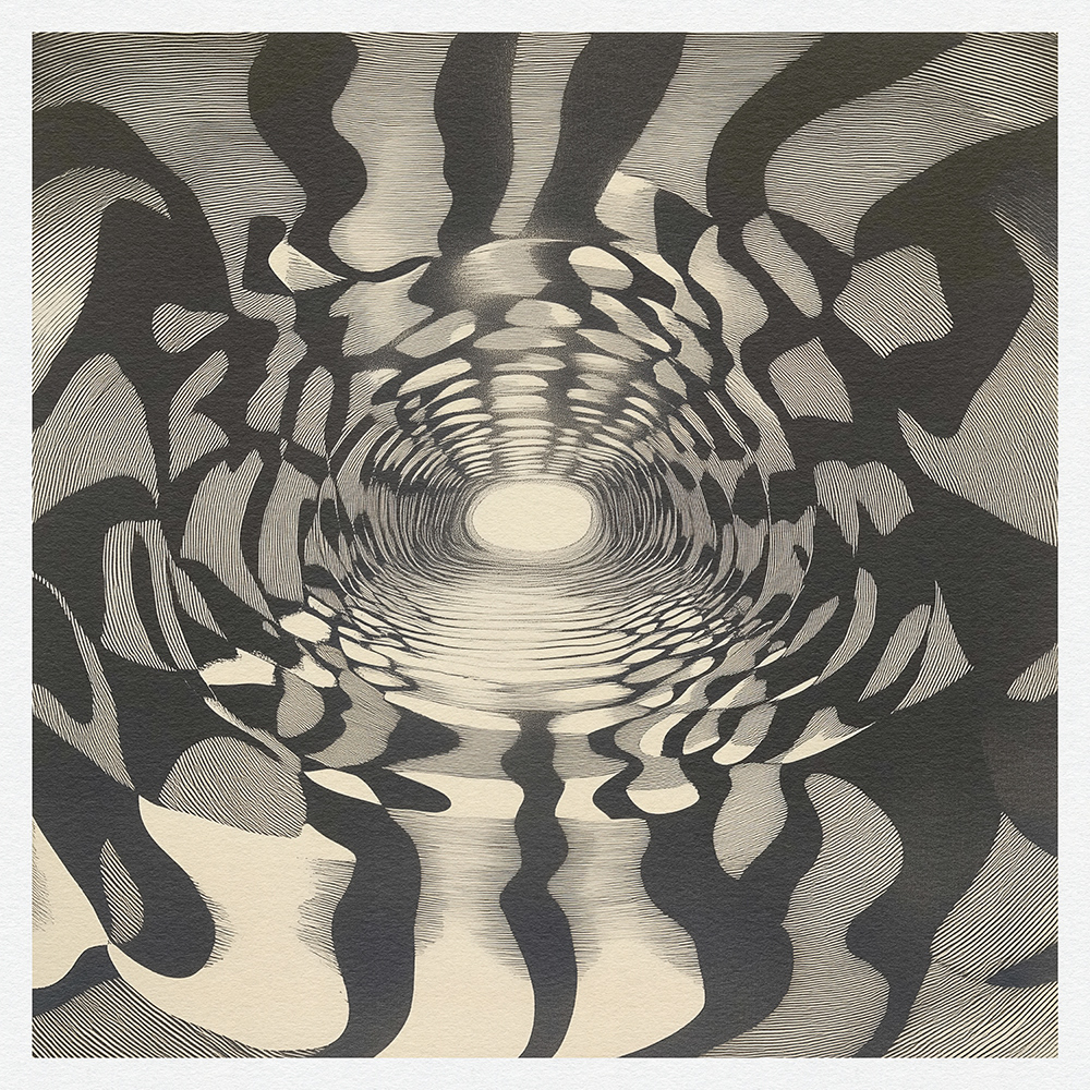 This dynamic art series explores hypnotic patterns and fluid lines that evoke a sense of depth and movement. Each piece invites the viewer into a surreal journey of endless repetition and reflective illusions, symbolizing the boundless nature of perception.