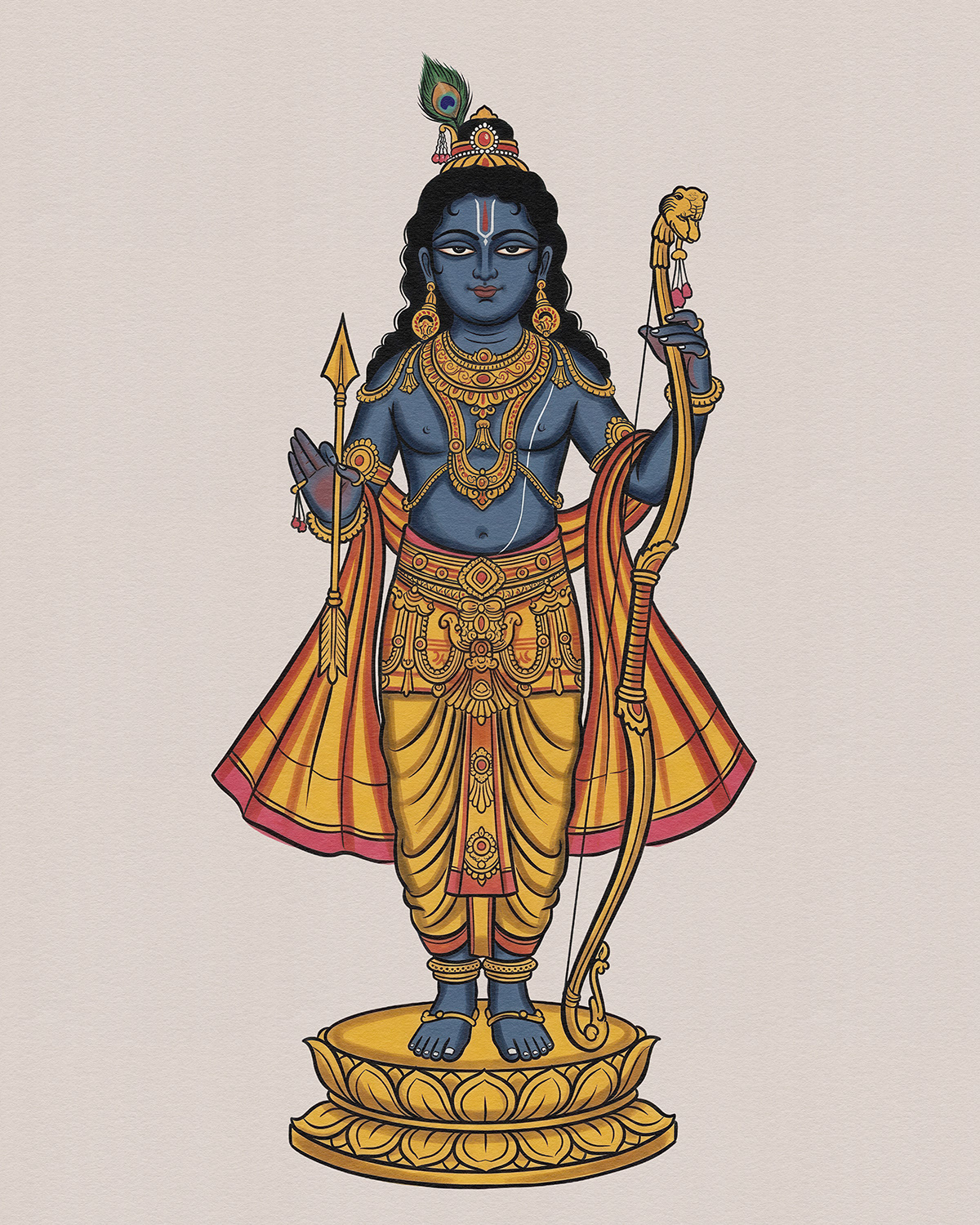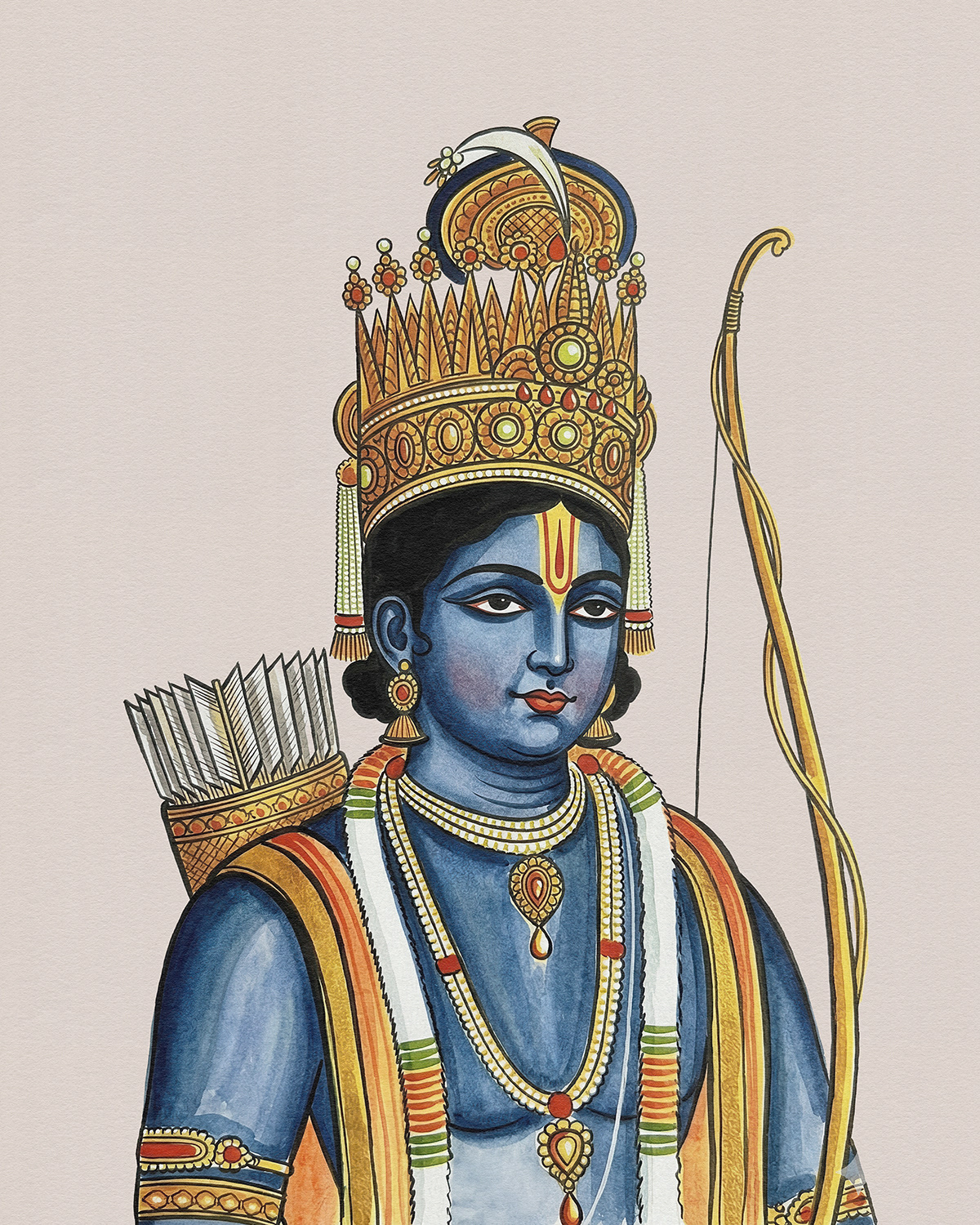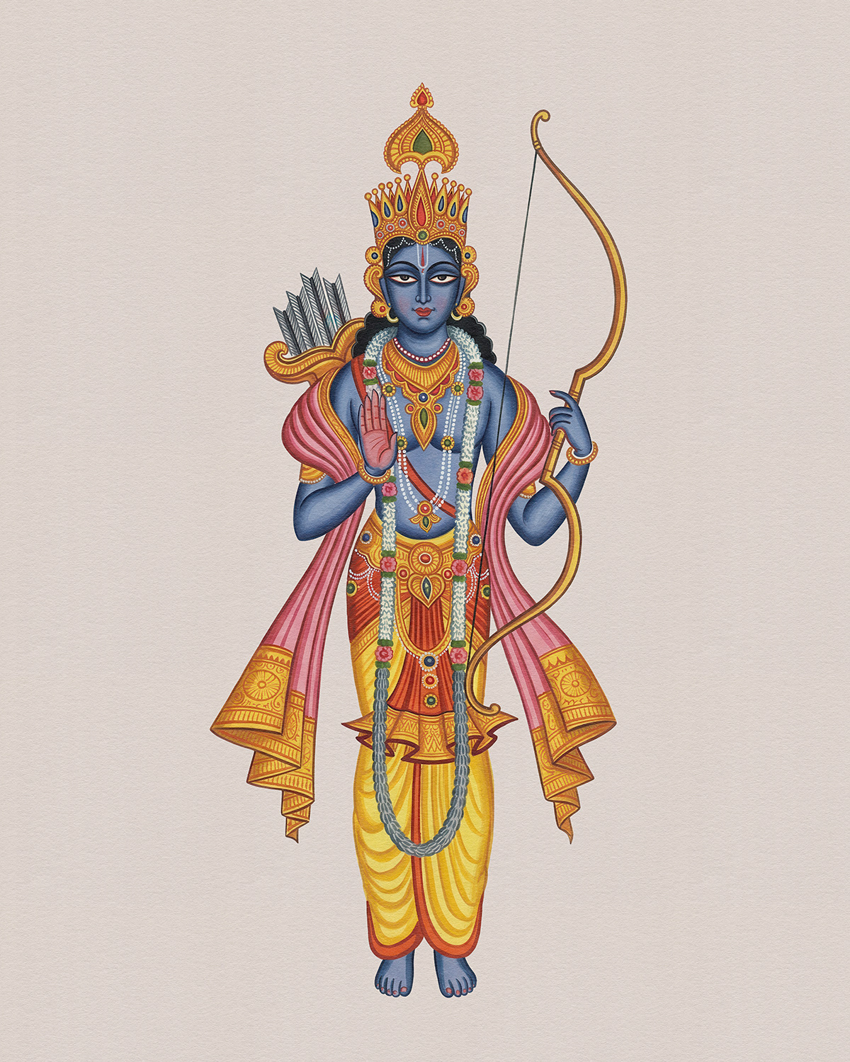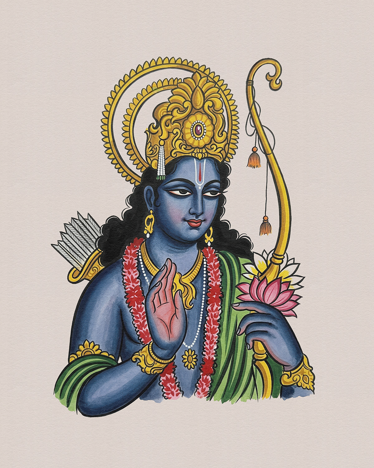 A powerful series depicting Lord Ram through refined iconography and disciplined compositions, where devotion, righteousness, and heroic grace are expressed through vibrant detailing, symbolic attributes, and timeless narrative presence.