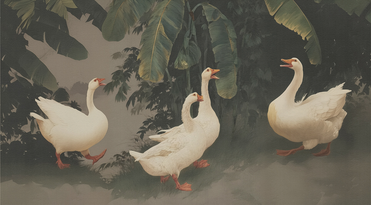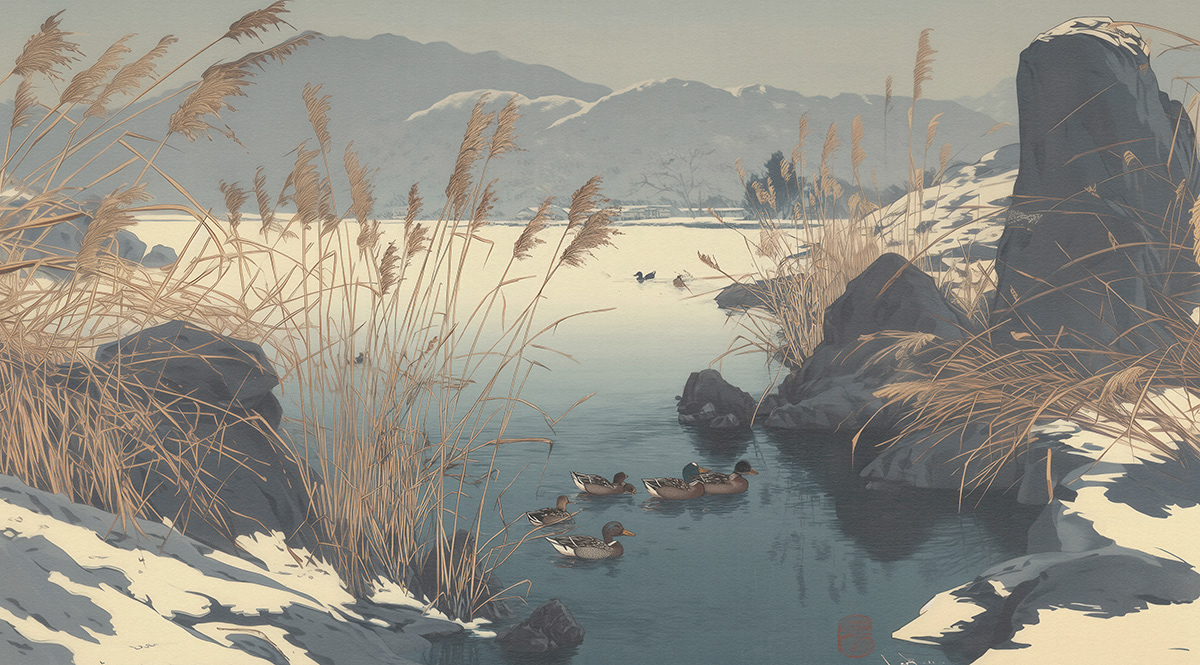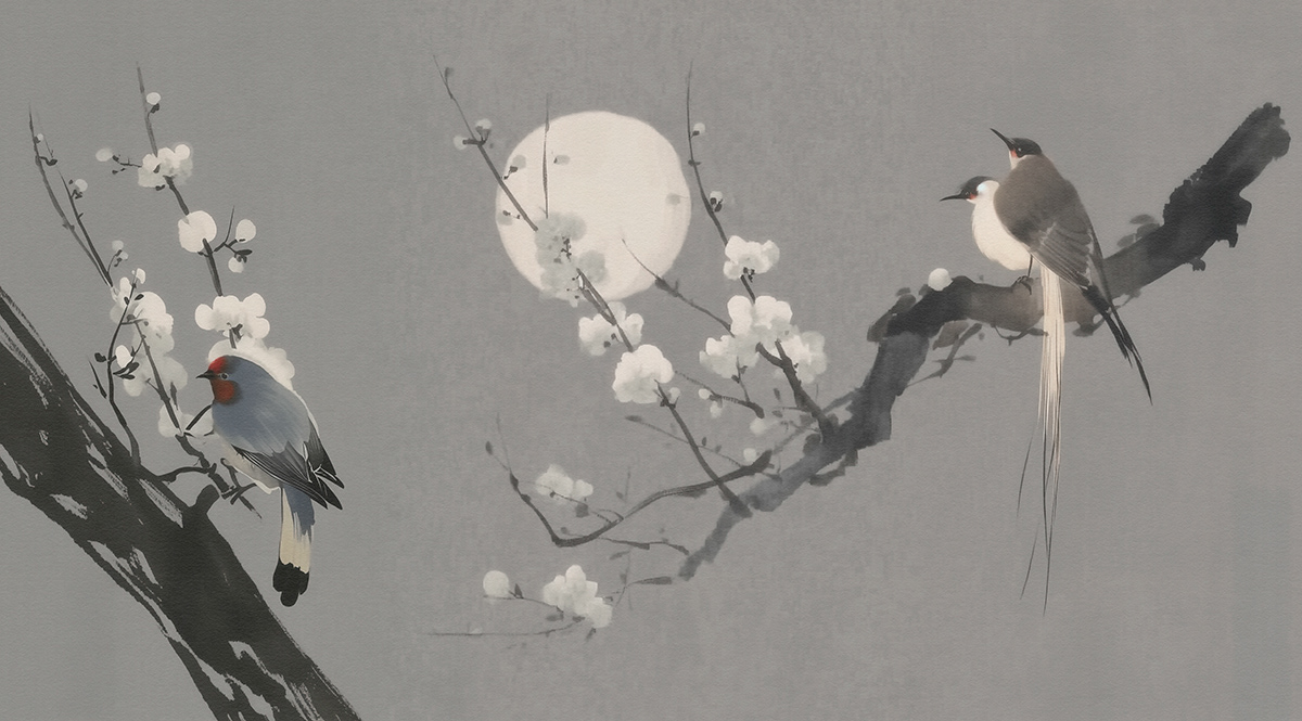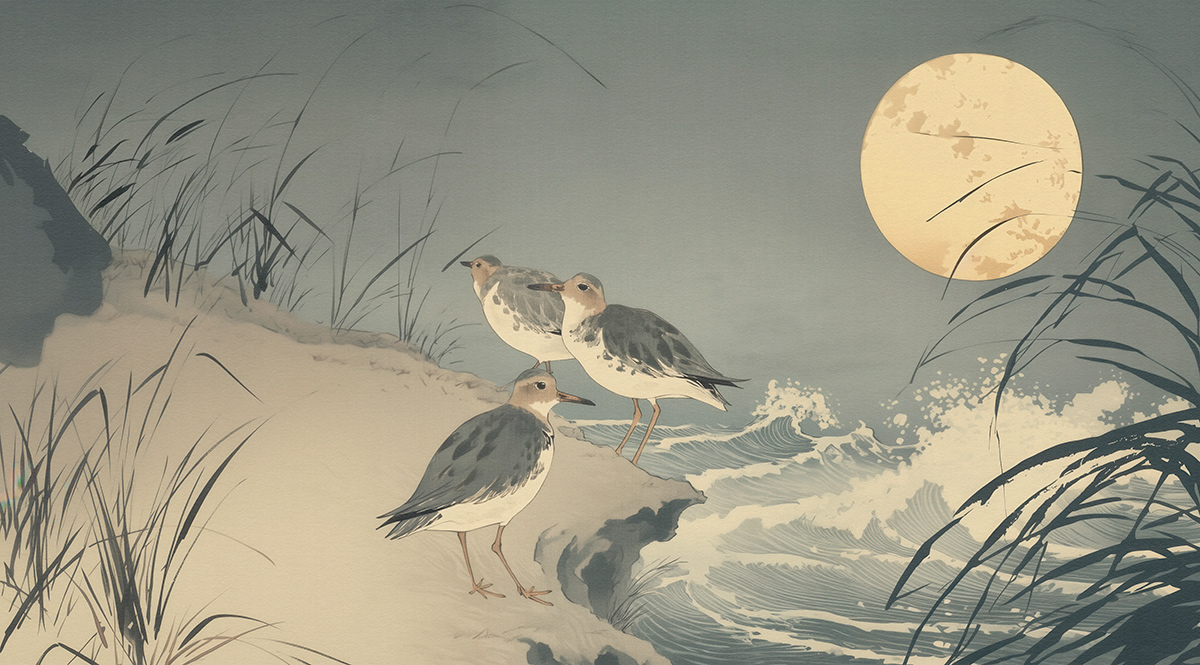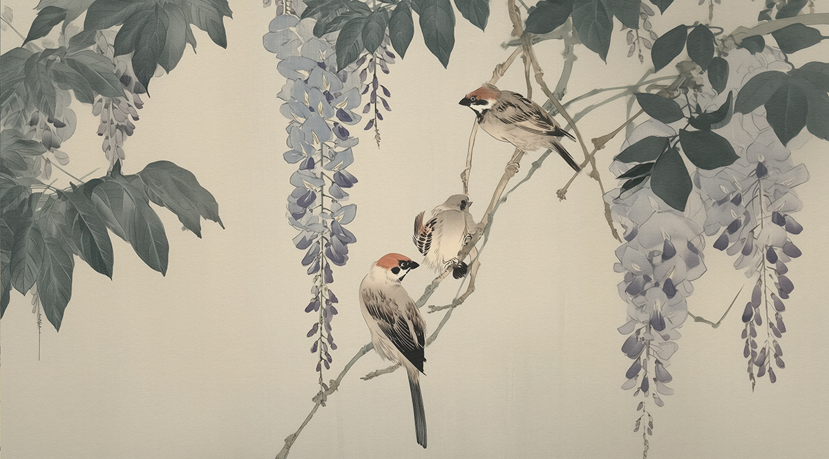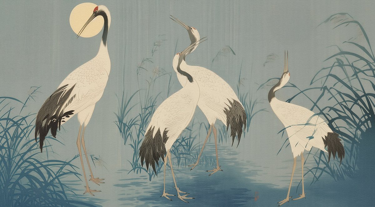 This serene art series captures Japanese-inspired wildlife scenes with cranes, deer, ducks, and sparrows in poetic harmony, using soft palettes and traditional woodblock aesthetics to evoke timeless tranquility and elegance.