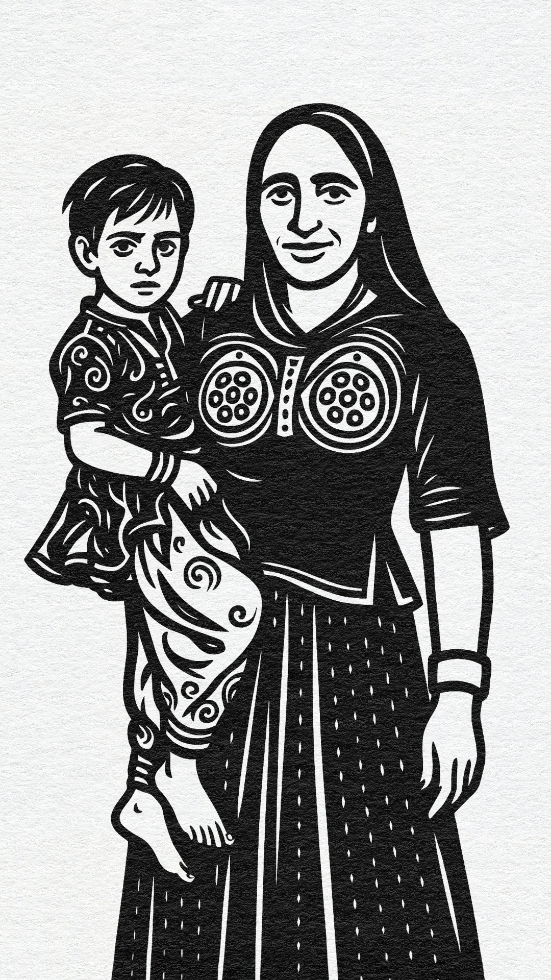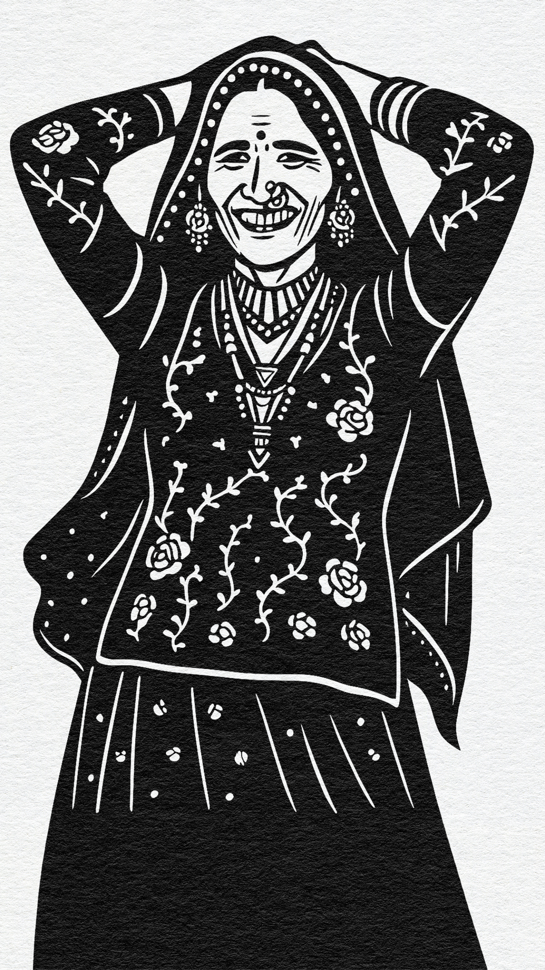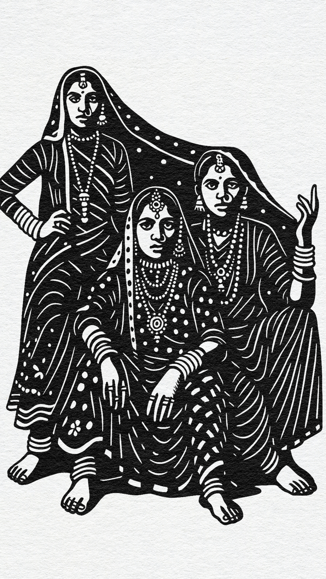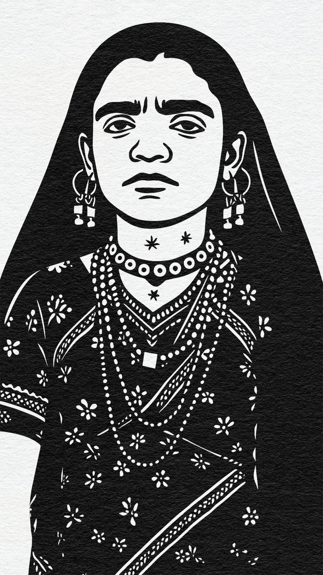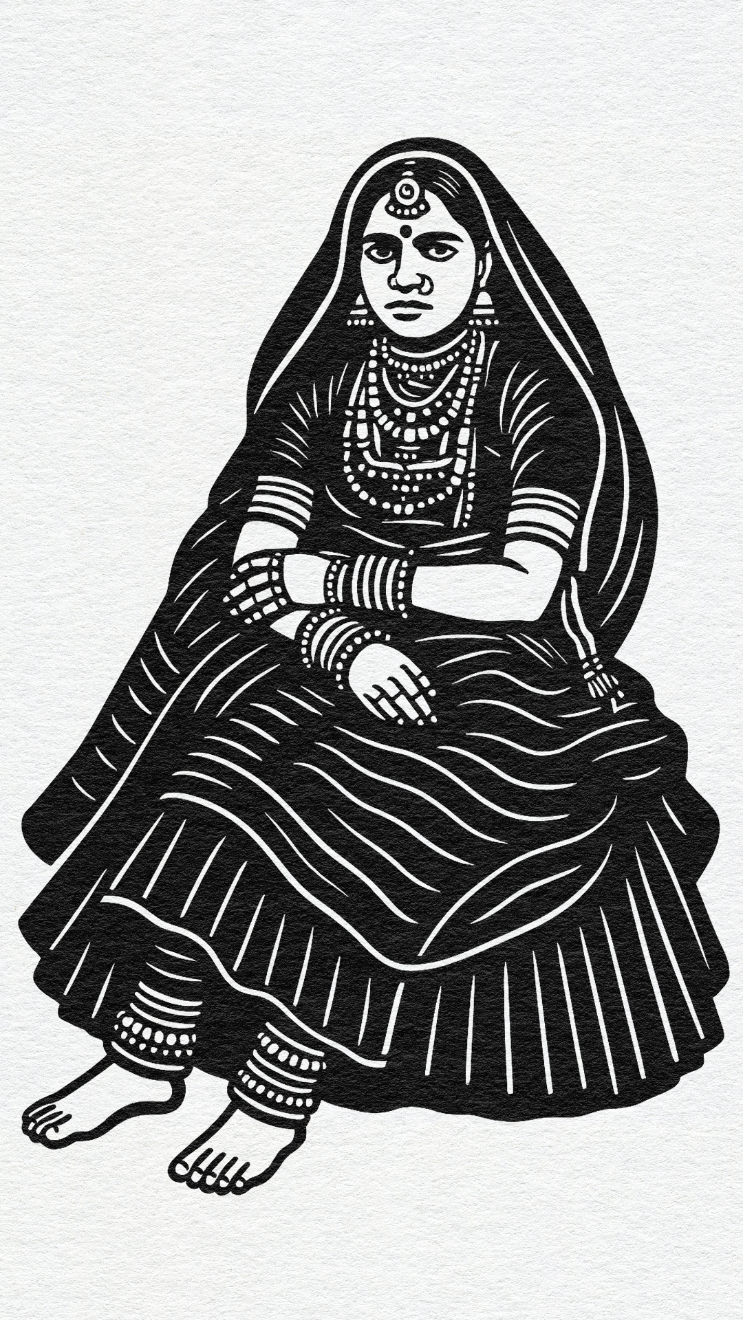 This evocative illustration series captures the timeless spirit of Kutch Rabari women through intricate black-and-white portraits. Each image celebrates traditional attire, cultural identity, and the enduring strength of heritage.