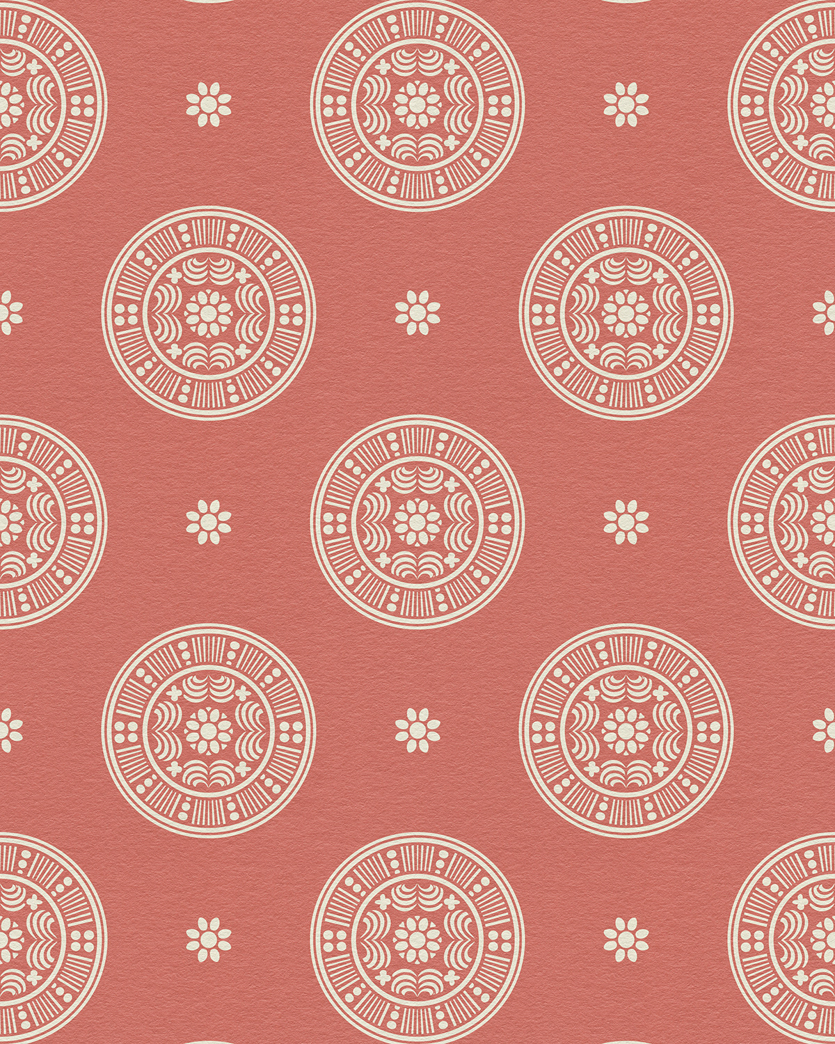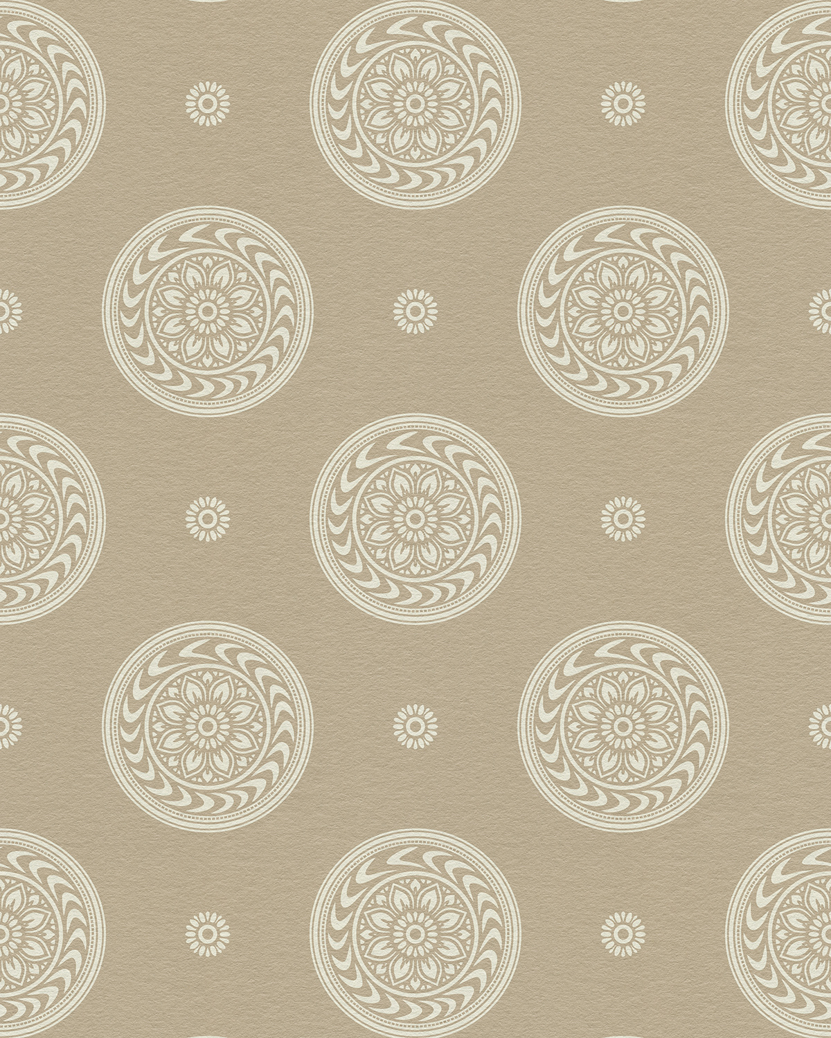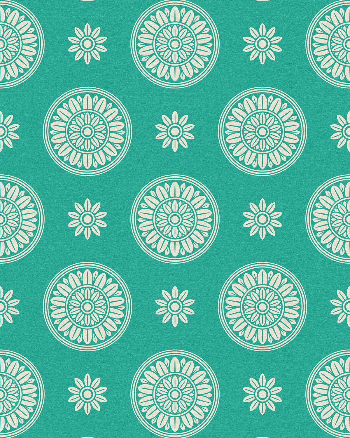 A refined seamless surface design series featuring intricate mandala-inspired medallions arranged in balanced repeats. Traditional Indian ornamental motifs meet modern color palettes, crafted for wallpaper, textiles, and luxury interior applications.