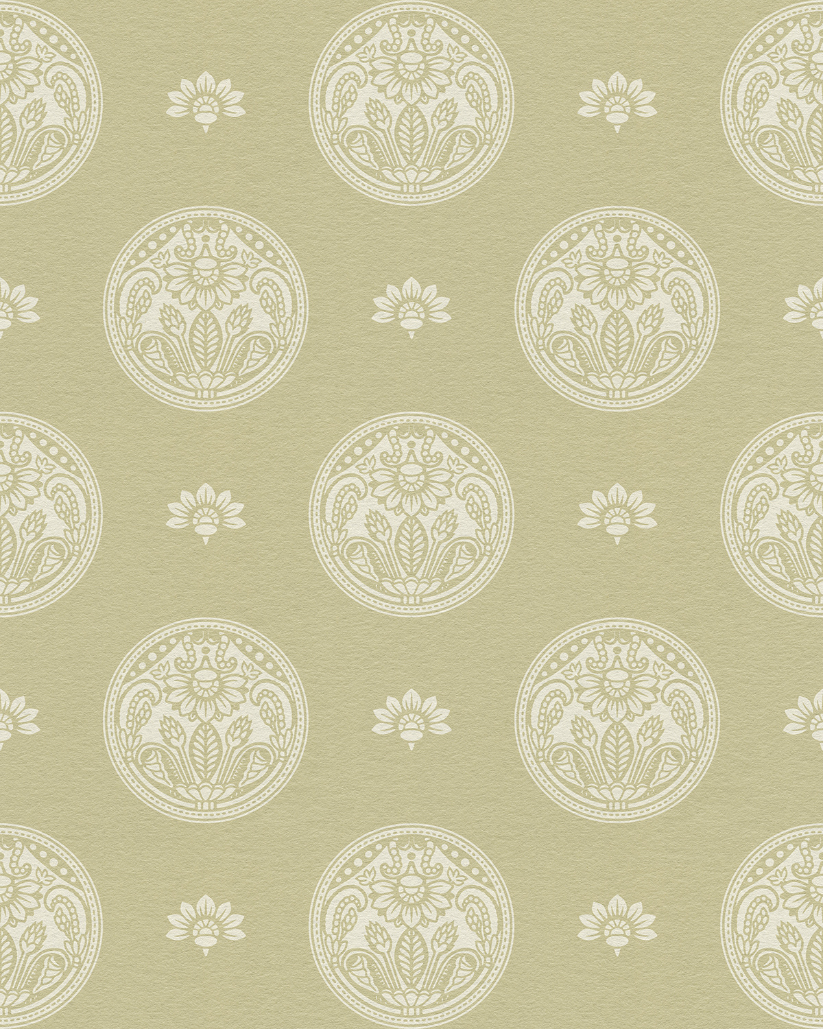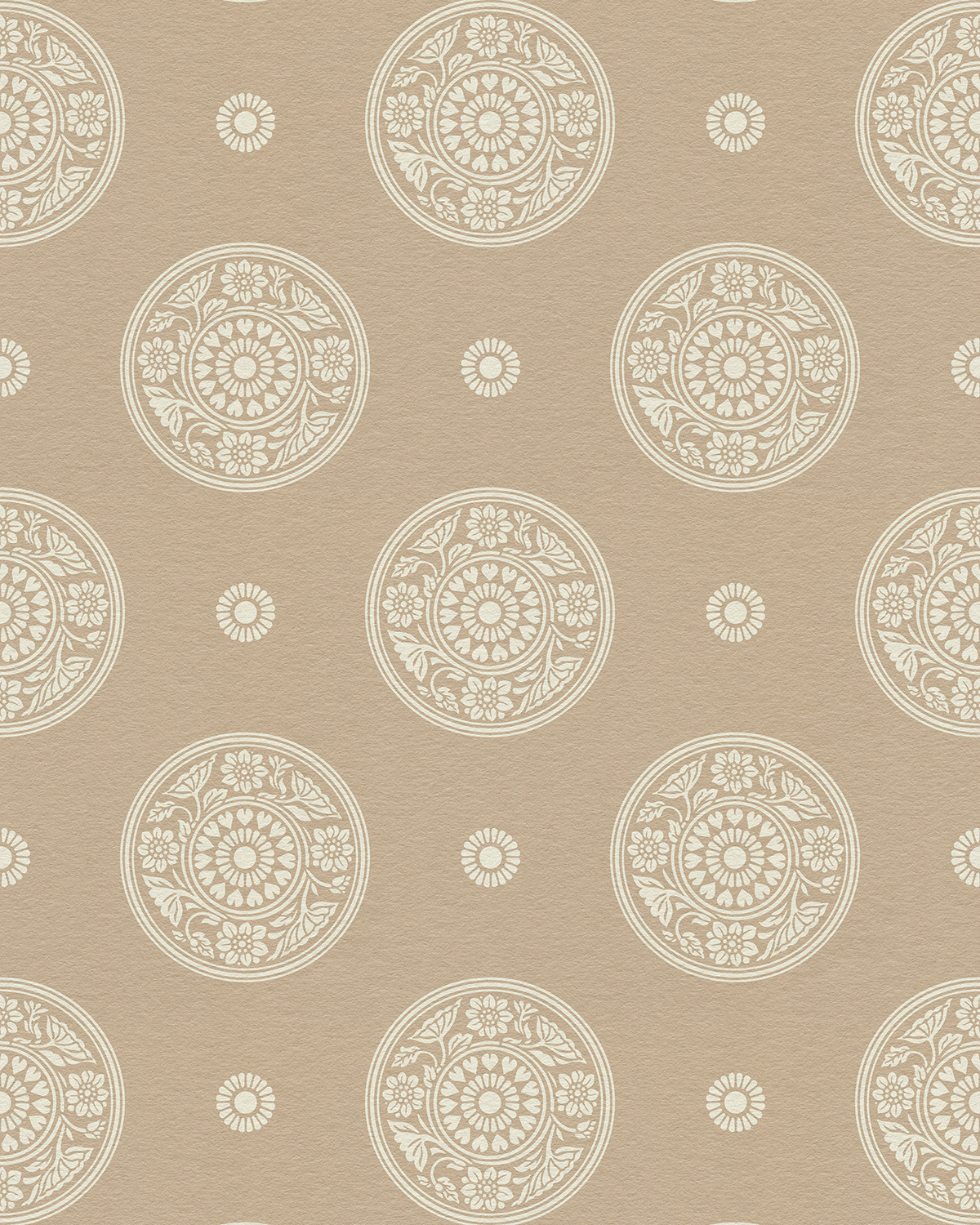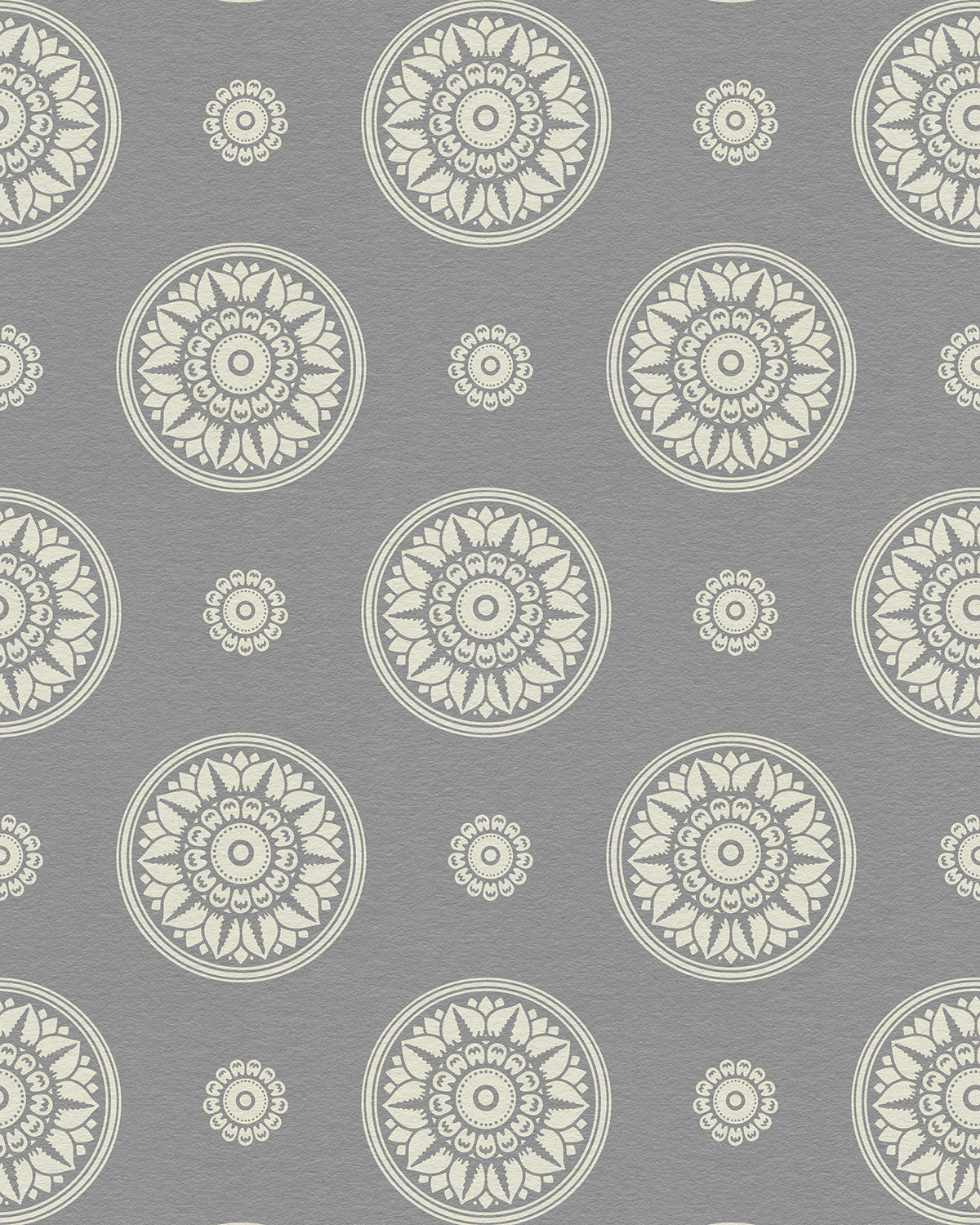 A refined seamless surface design series featuring intricate mandala-inspired medallions arranged in balanced repeats. Traditional Indian ornamental motifs meet modern color palettes, crafted for wallpaper, textiles, and luxury interior applications.