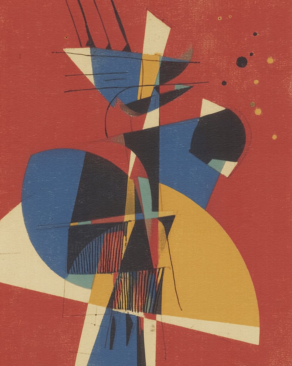 This striking abstract art series blends geometric precision with modernist emotion, echoing Bauhaus and Constructivist influences. Each piece orchestrates red, blue, and yellow into bold, dynamic compositions.