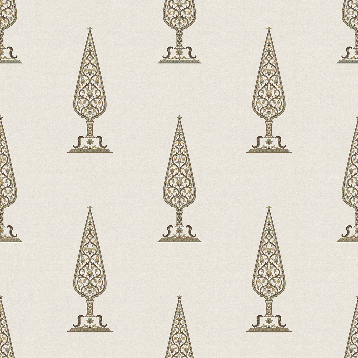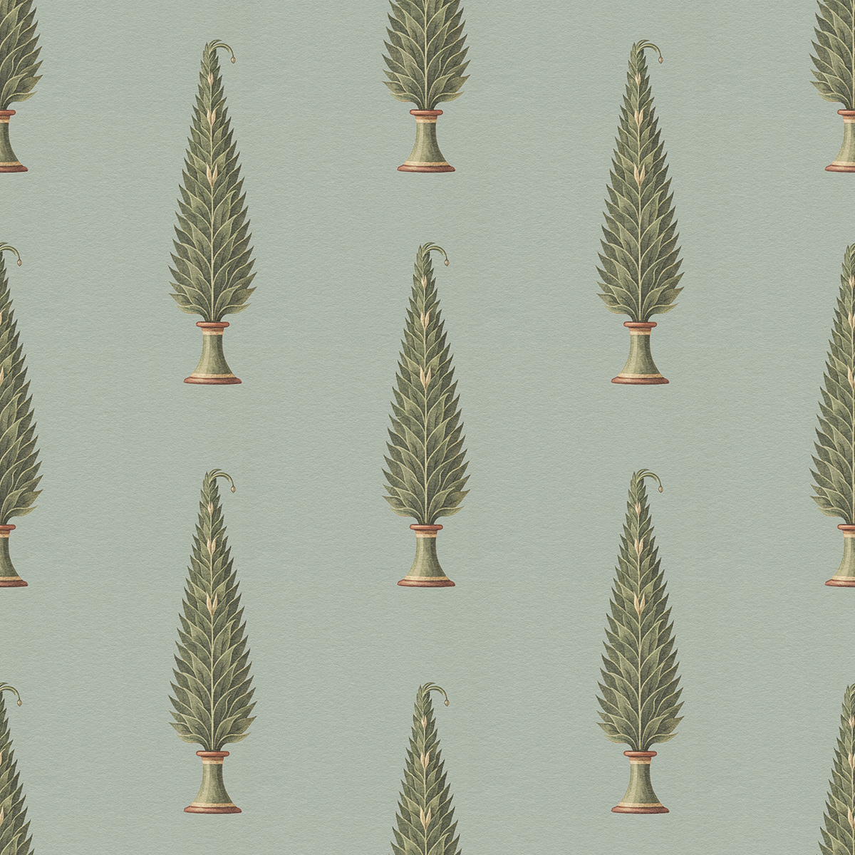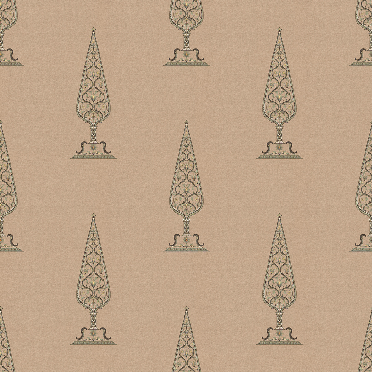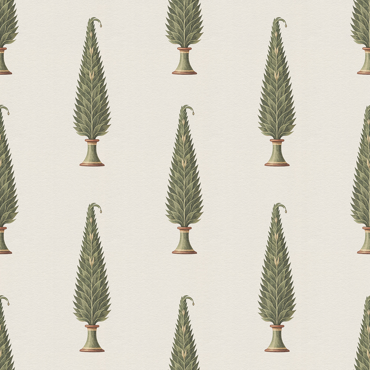 Royal Gardens draws inspiration from Mughal miniature painting and classical Indian garden aesthetics. Stylized ornamental trees form elegant seamless patterns, blending heritage motifs with modern surface design for refined wallpapers, textiles, and luxury interior decor.