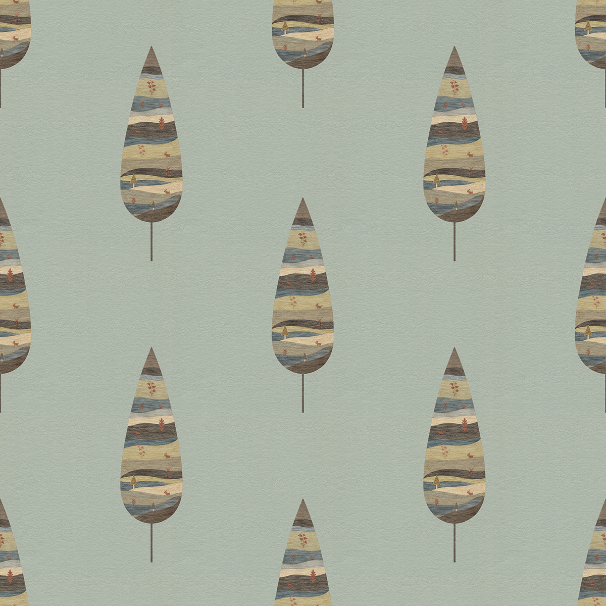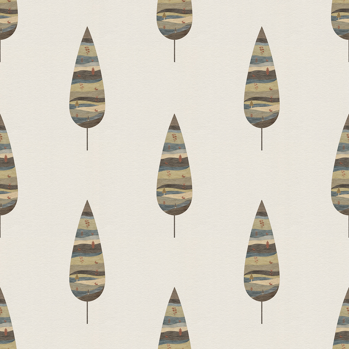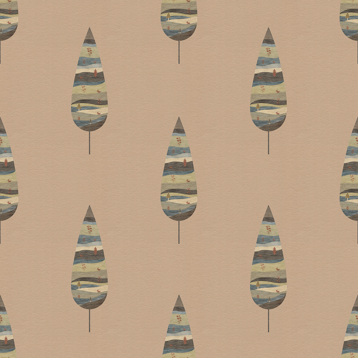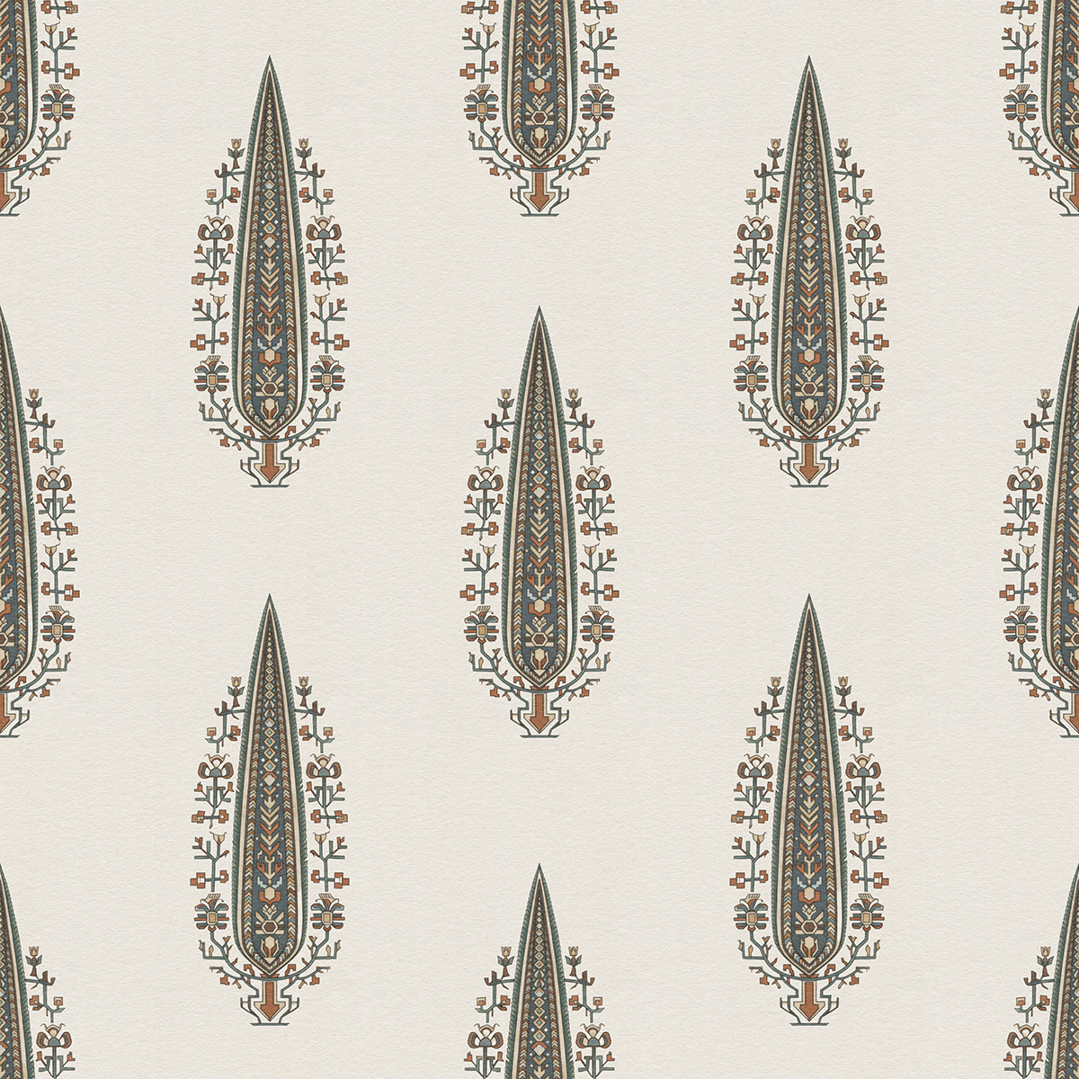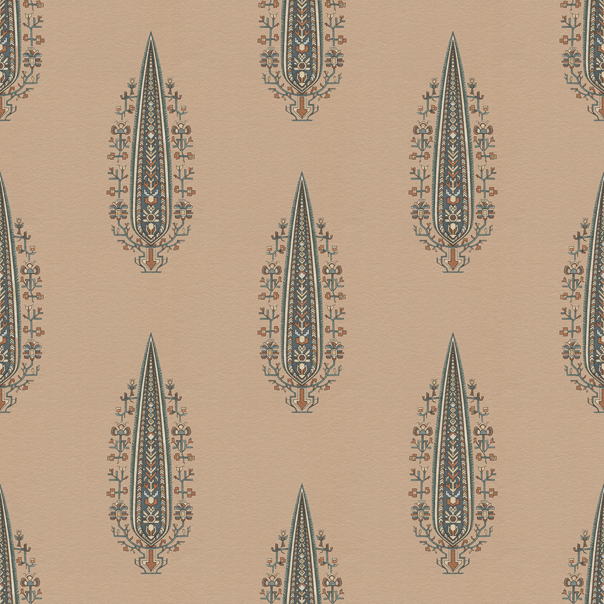Royal Gardens draws inspiration from Mughal miniature painting and classical Indian garden aesthetics. Stylized ornamental trees form elegant seamless patterns, blending heritage motifs with modern surface design for refined wallpapers, textiles, and luxury interior decor.
