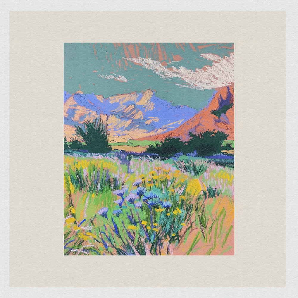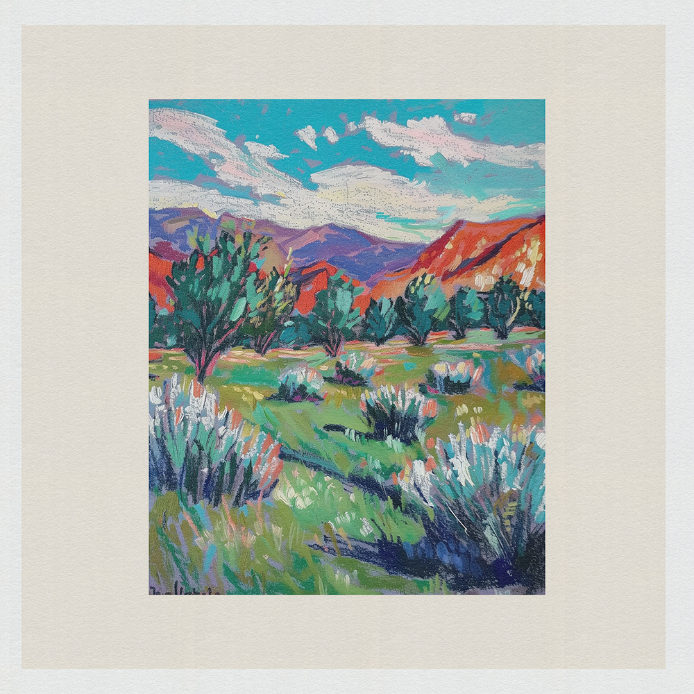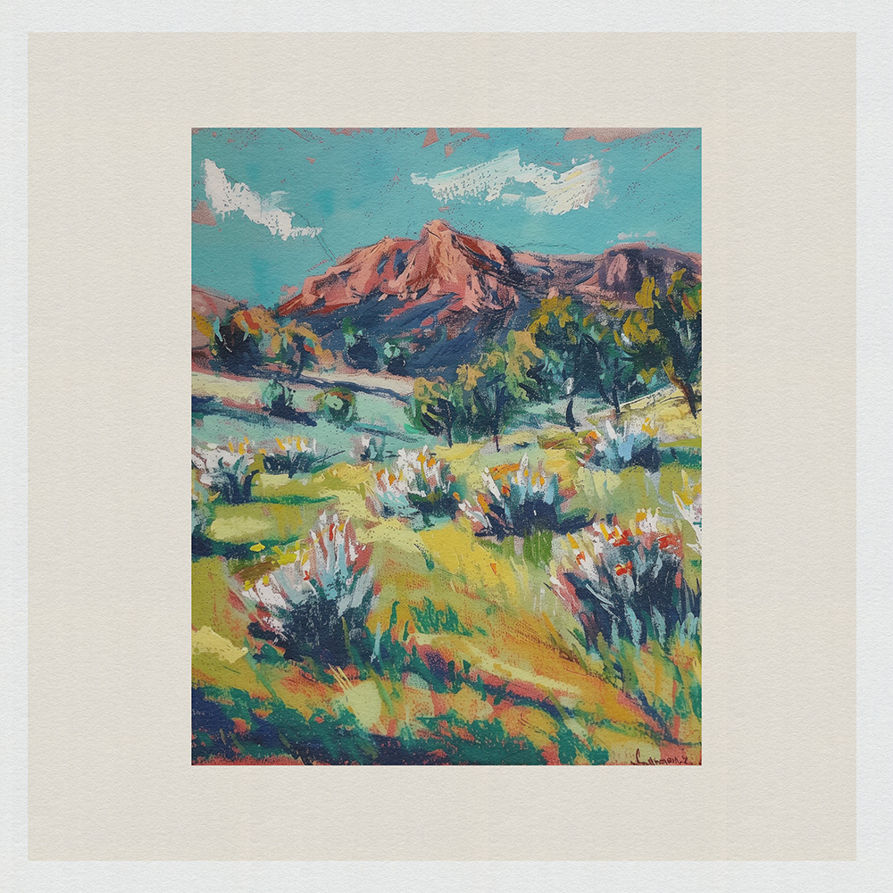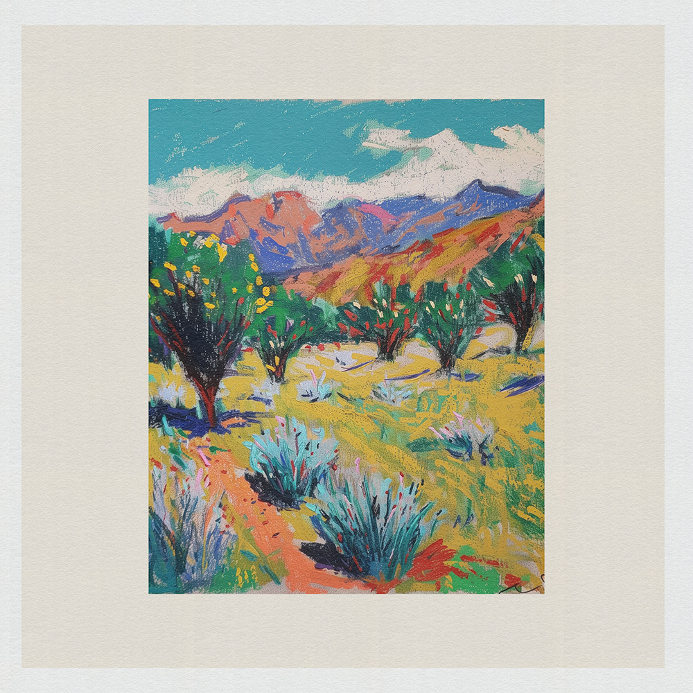 This vibrant series captures the raw beauty of landscapes through bold colors and dynamic textures, evoking a sense of tranquil yet spirited serenity.