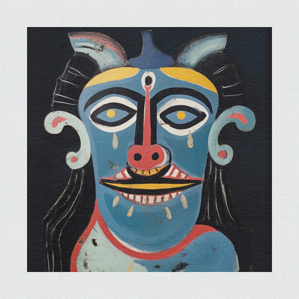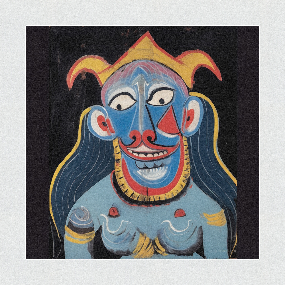 Reviving the mystical allure of Nazar Battu from Indian truck art, these blue-hued devil figures serve as protectors against the evil eye, blending tradition with contemporary artistic renditions