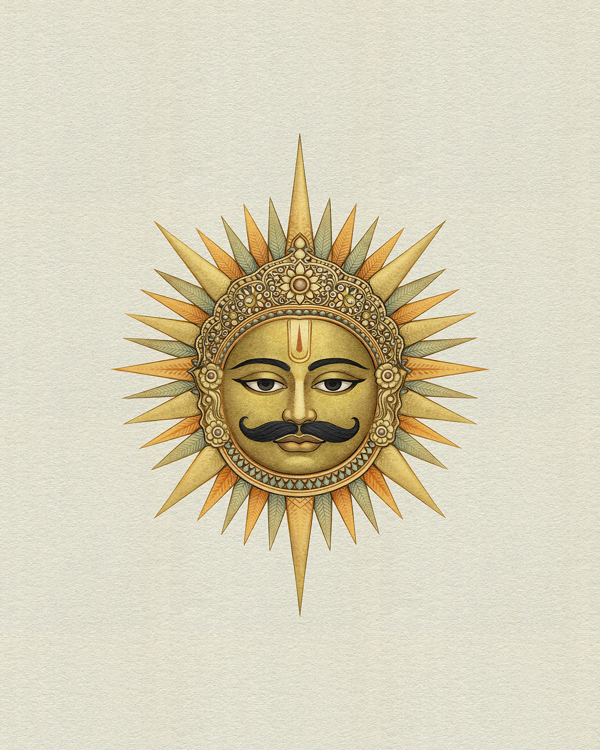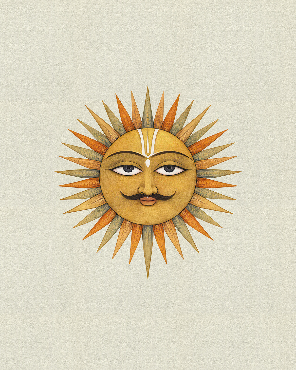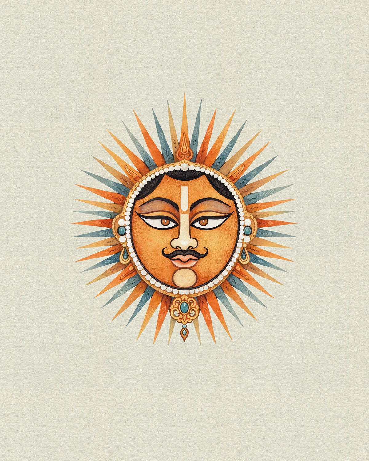 This art series reinterprets Surya Dev through miniature-inspired Indian folk iconography, blending ornamental precision, sacred symmetry, and mythological symbolism into radiant, timeless sun icons rooted in devotional tradition.