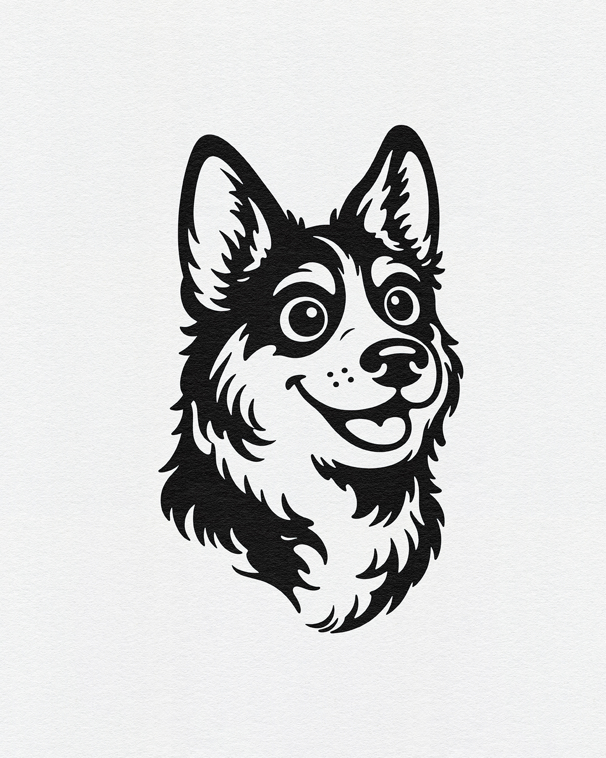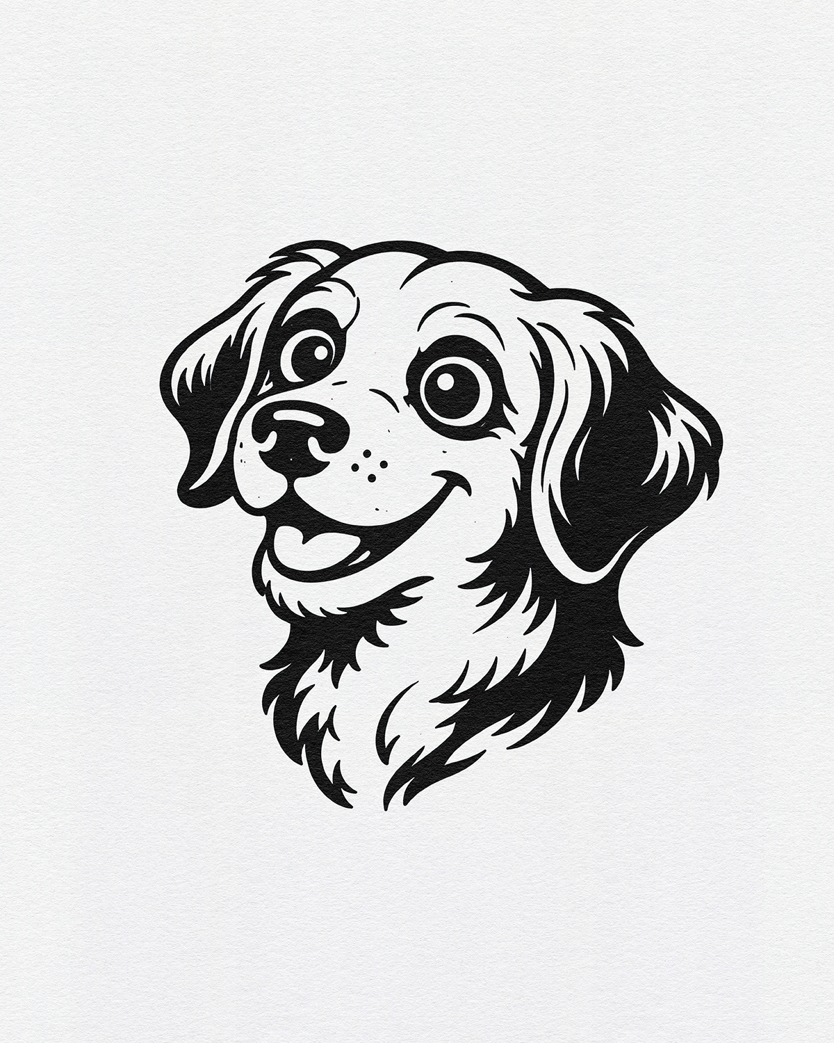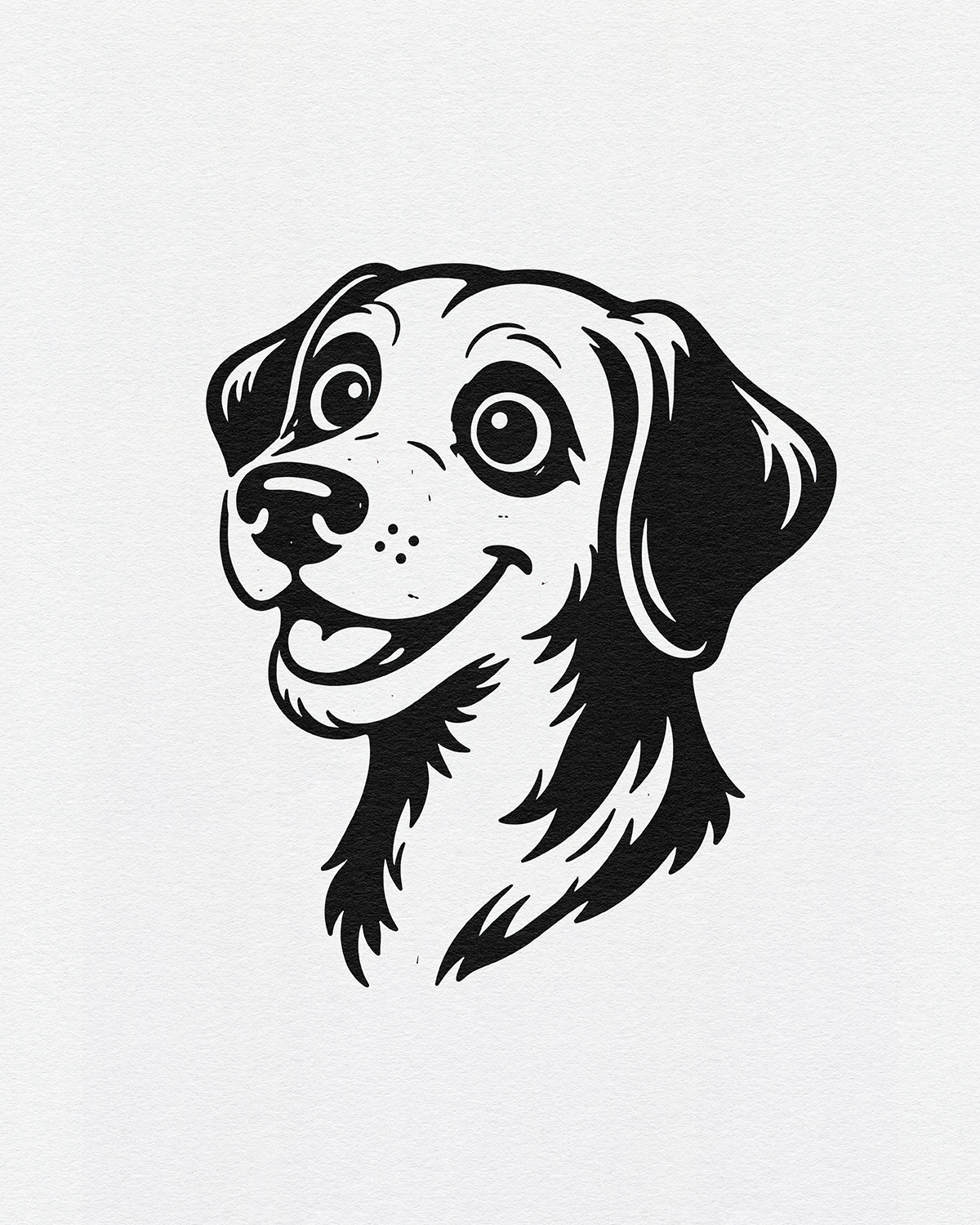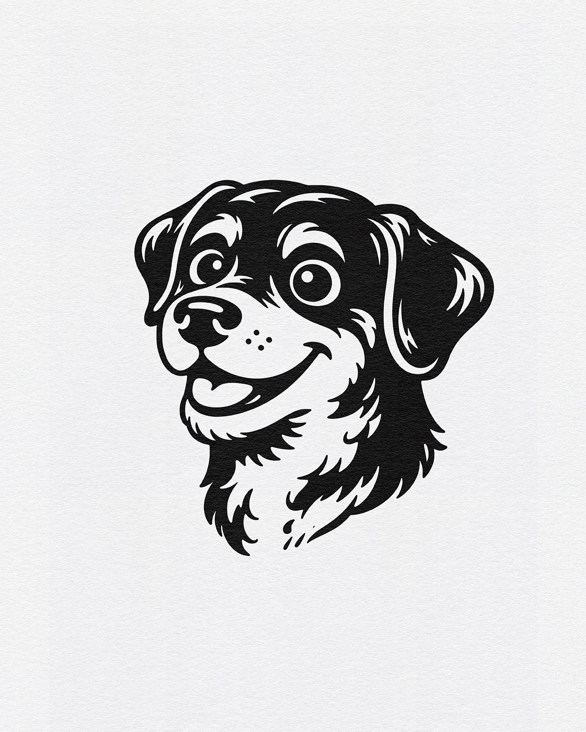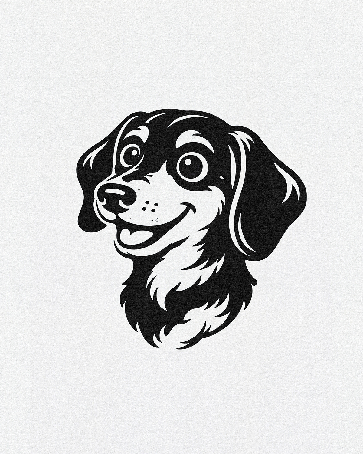 A cheerful illustration series celebrating dogs as expressive characters, using bold linework, simplified forms, and friendly personalities to create joyful, graphic portraits designed for modern merch and playful interiors.