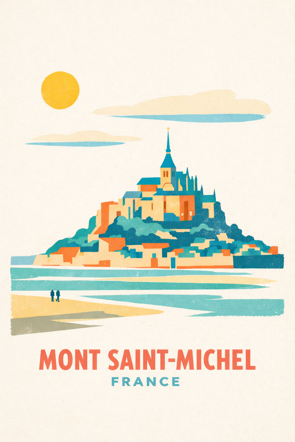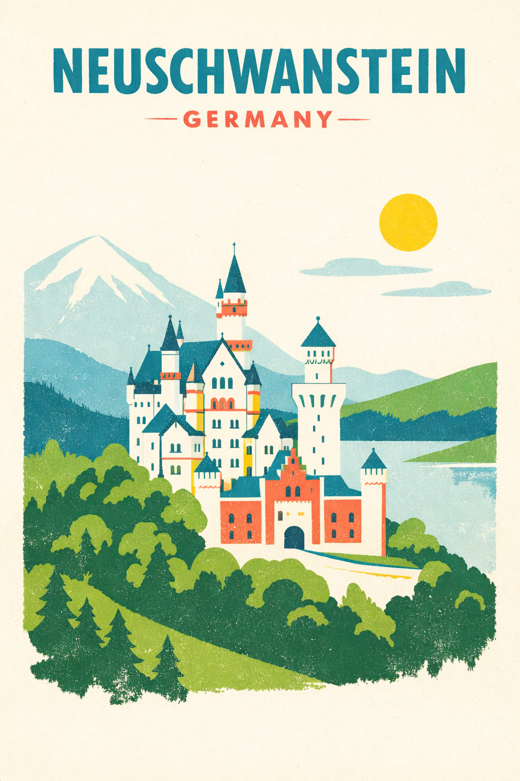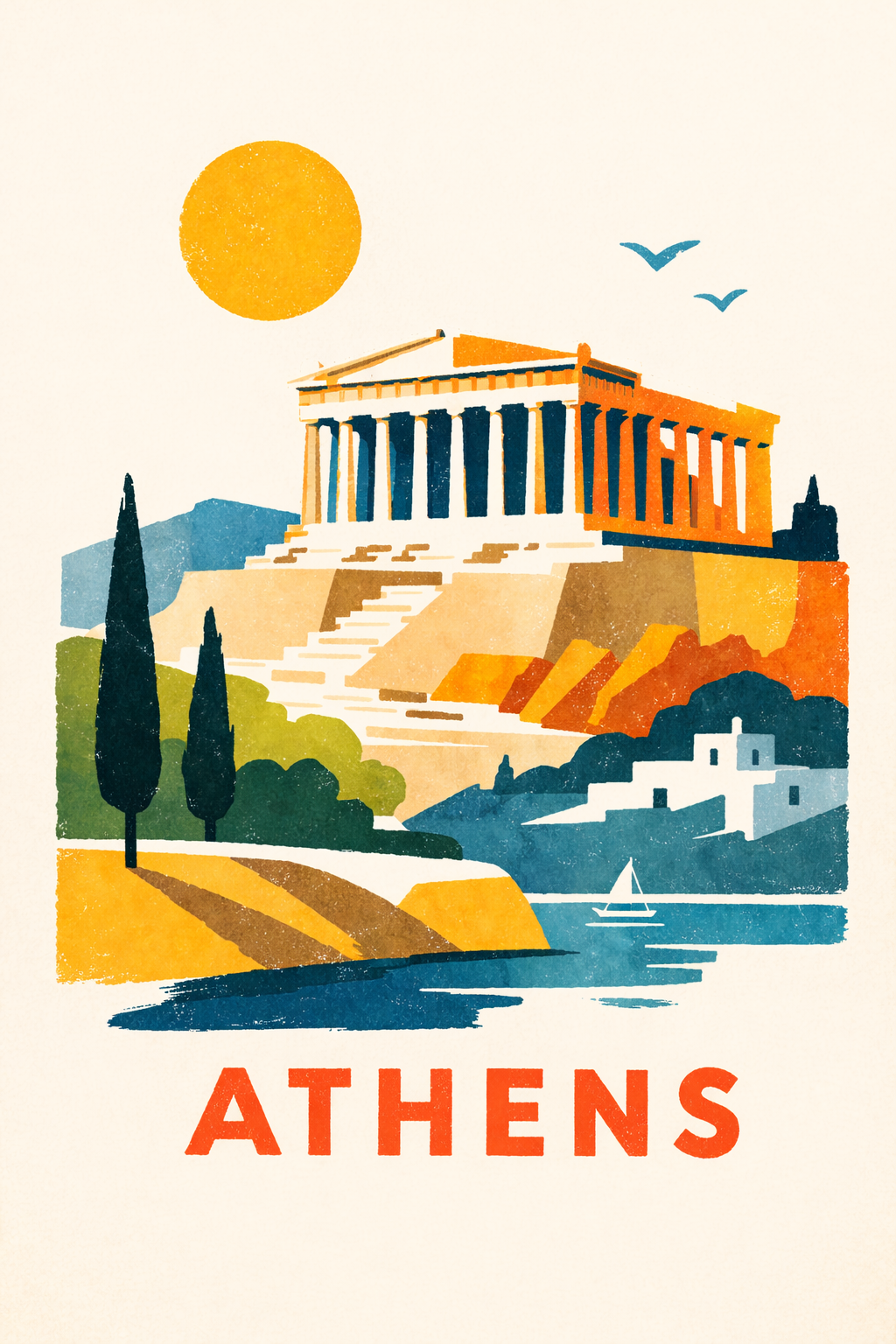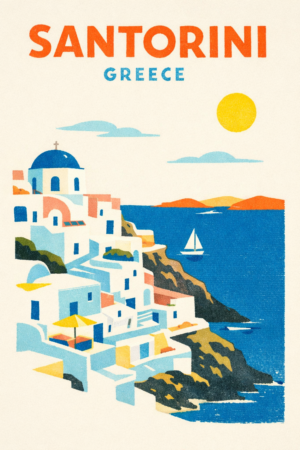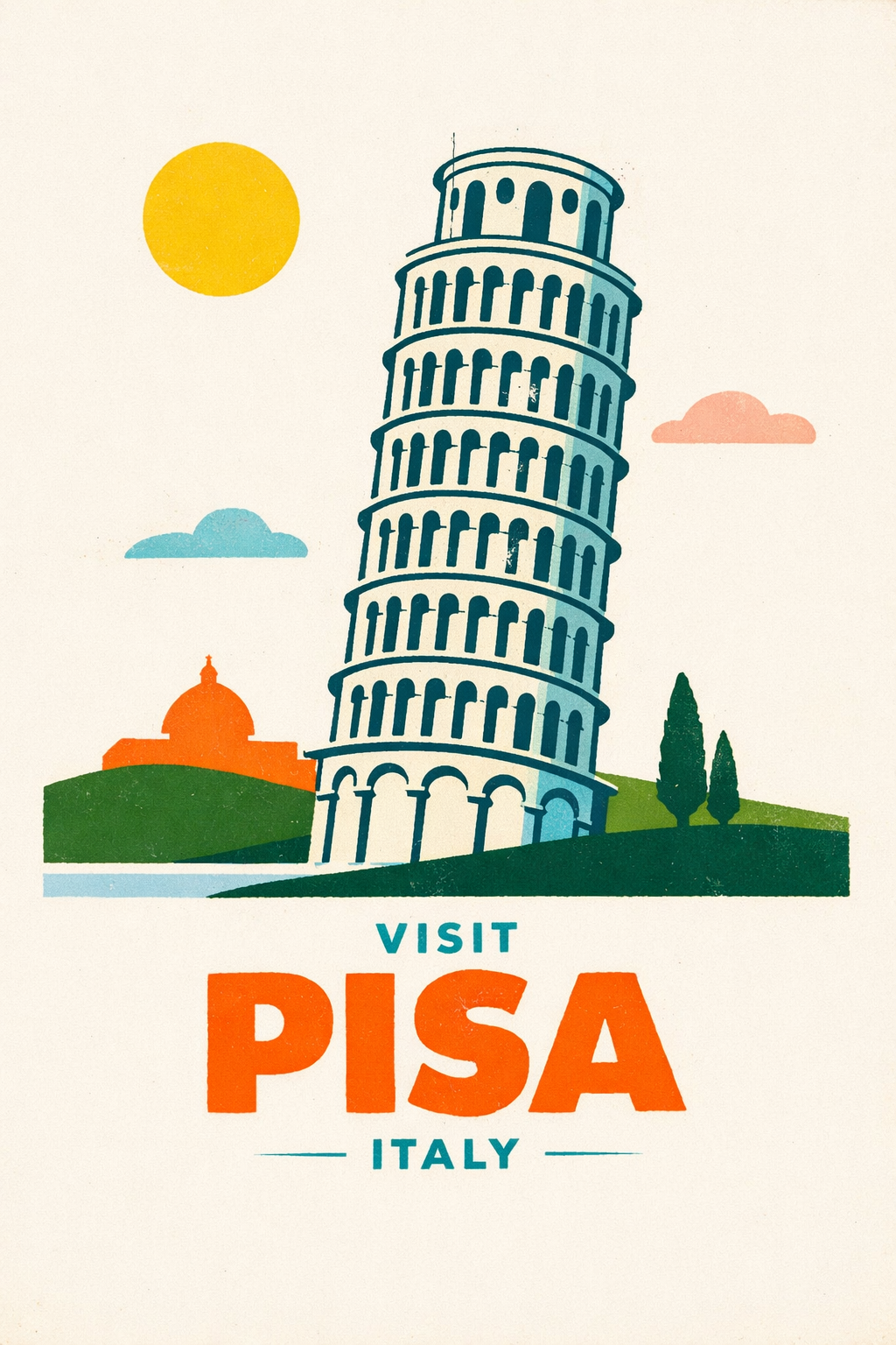 A vibrant collection of mid-century inspired travel posters reinterpreting iconic global landmarks through bold geometric forms, flat colors, and nostalgic composition, blending retro tourism aesthetics with contemporary graphic clarity.