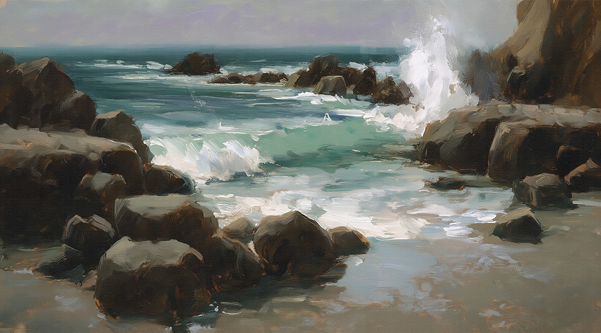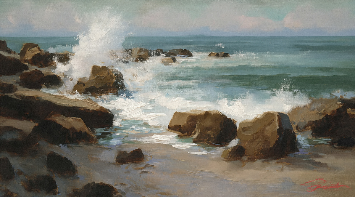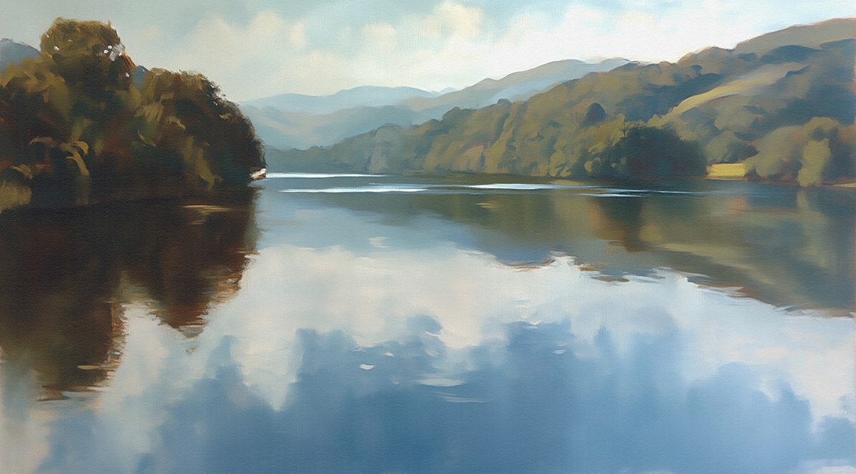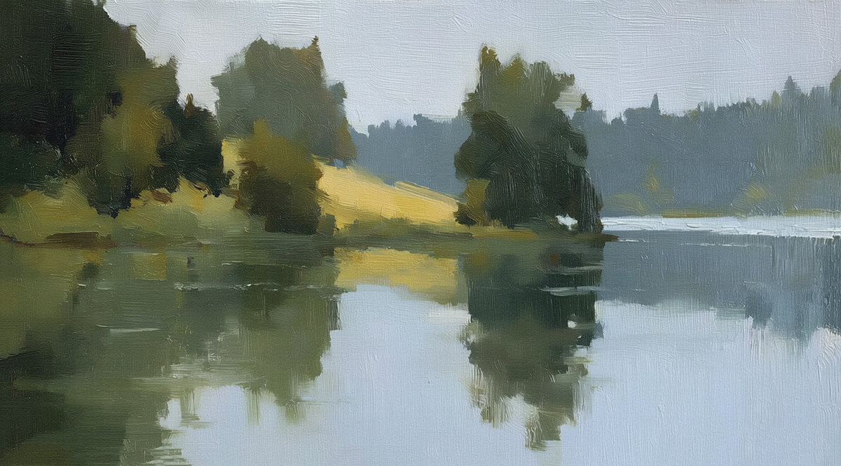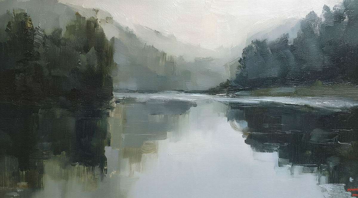 This art series captures serene lakes, misty horizons, and coastal vistas with poetic realism. Luminous reflections, soft brushwork, and atmospheric depth create immersive contemporary landscapes, ideal for collectors seeking tranquil, nature-inspired fine art.