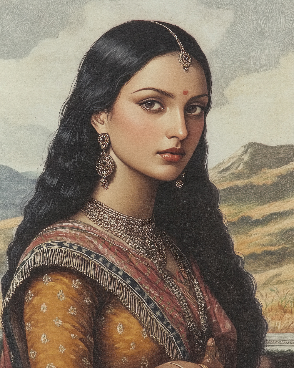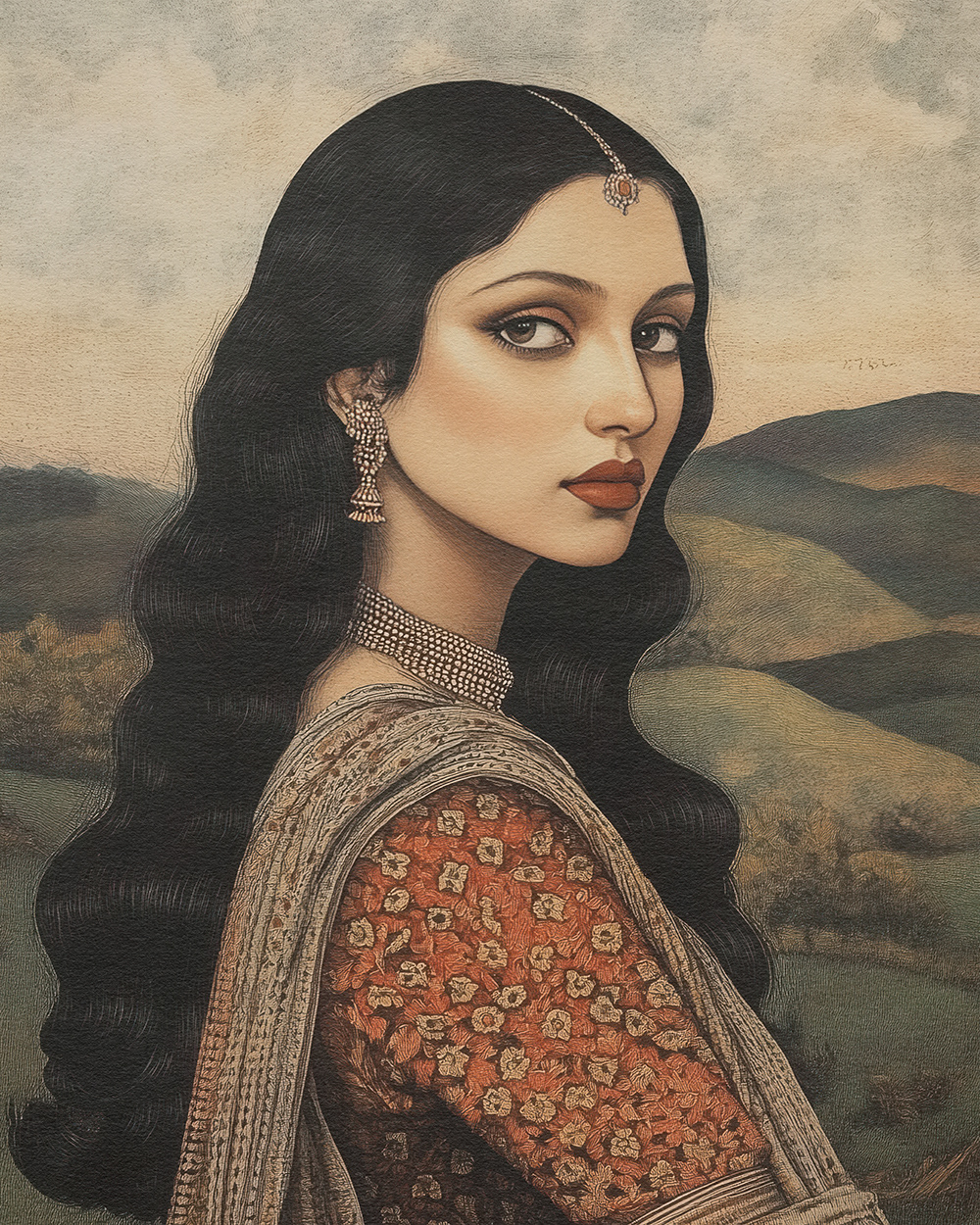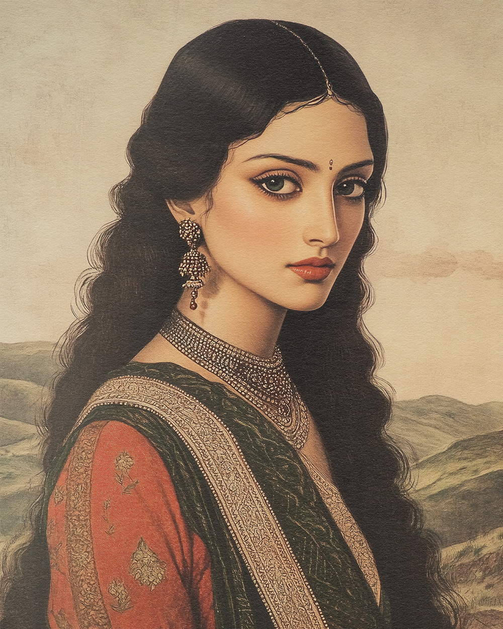 This art series captures timeless elegance through hyper-detailed digital paintings of Indian women in royal attire. A perfect blend of vintage aesthetics, cultural heritage, and fine art portraiture.