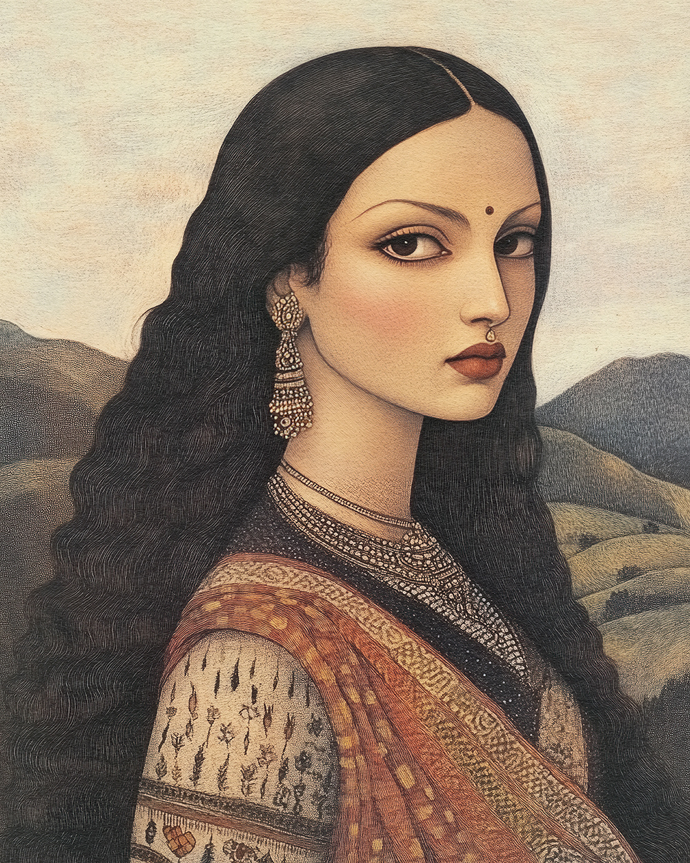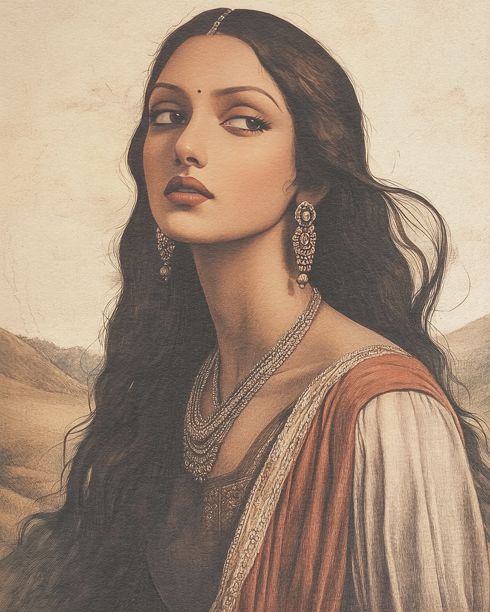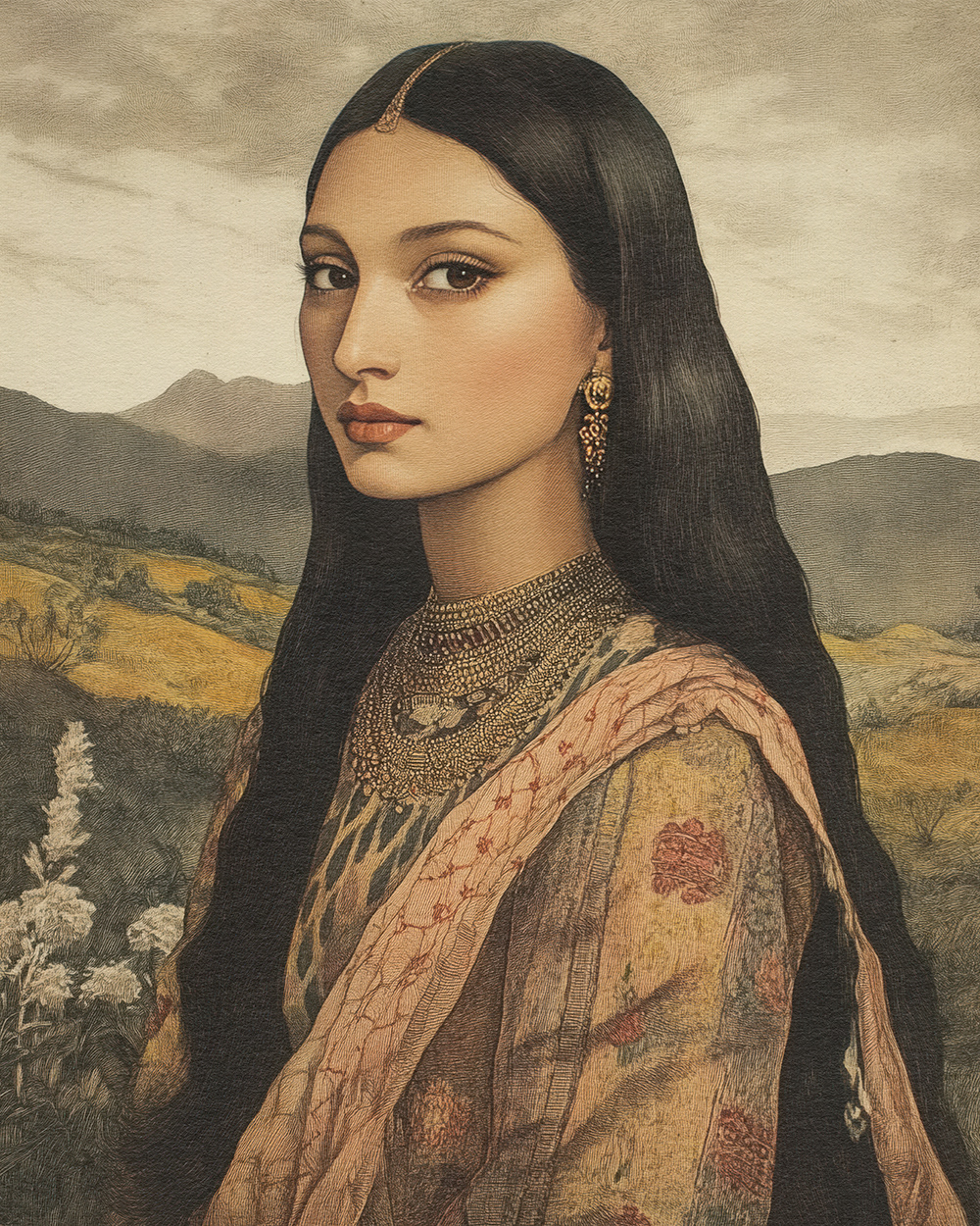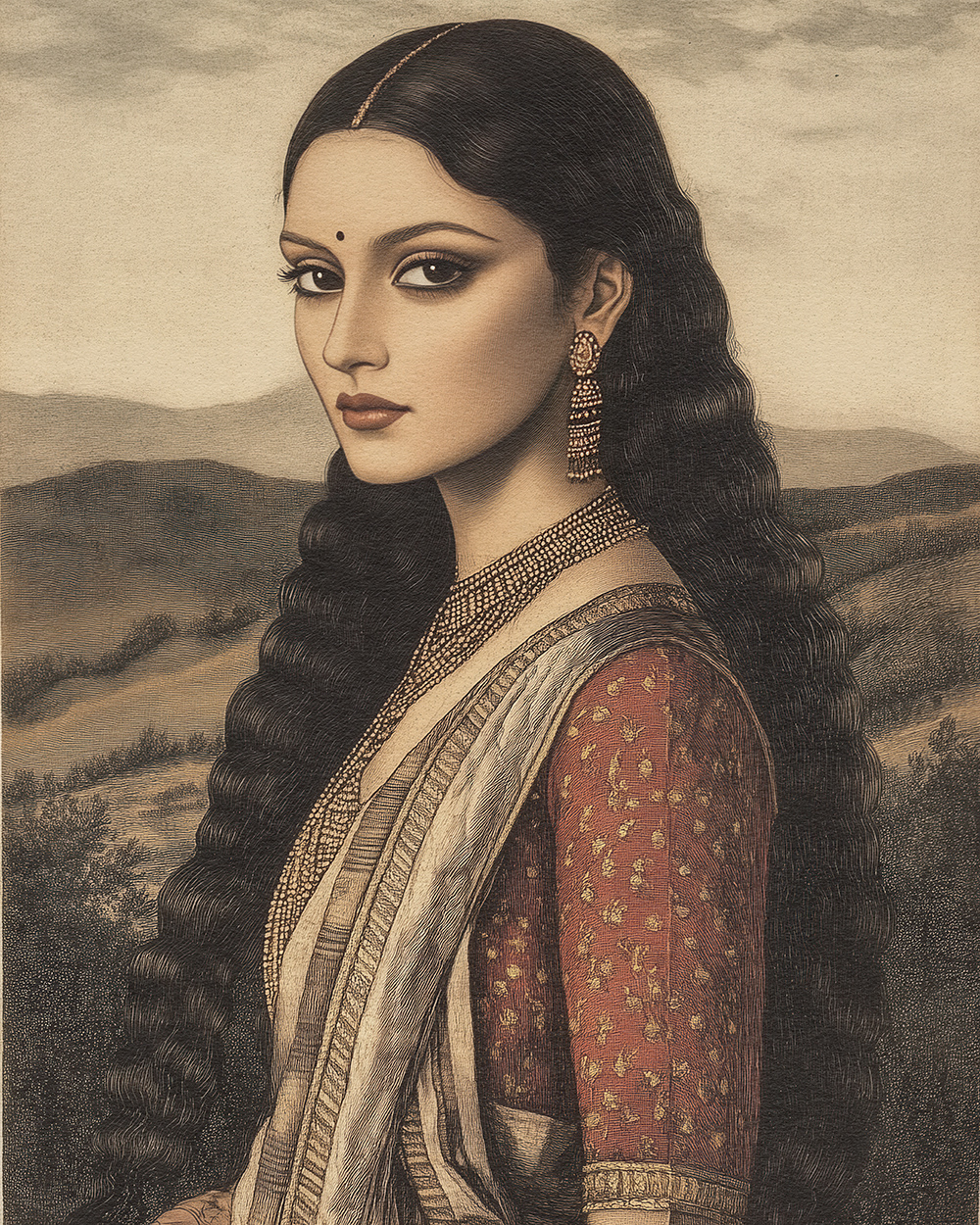 This art series captures timeless elegance through hyper-detailed digital paintings of Indian women in royal attire. A perfect blend of vintage aesthetics, cultural heritage, and fine art portraiture.