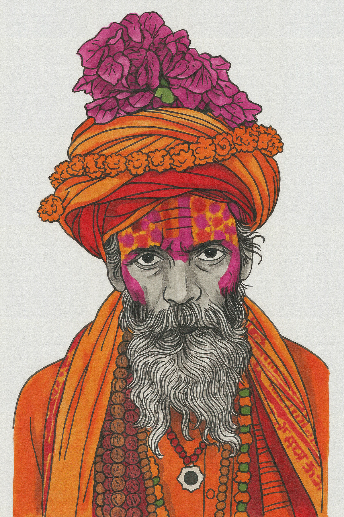 "Sadhu Baba: Sacred Visions of India" captures the divine aura of Hindu ascetics through bold, contemporary portraits—melding tradition and modernity in vibrant hues that celebrate India’s spiritual depth and artistic heritage.