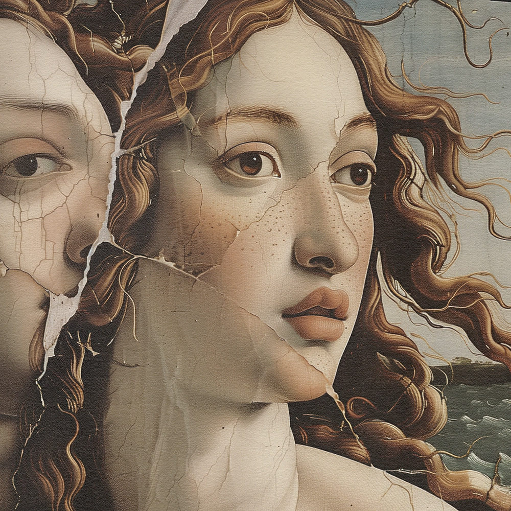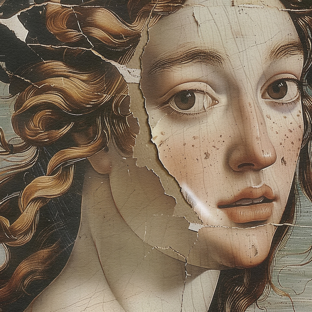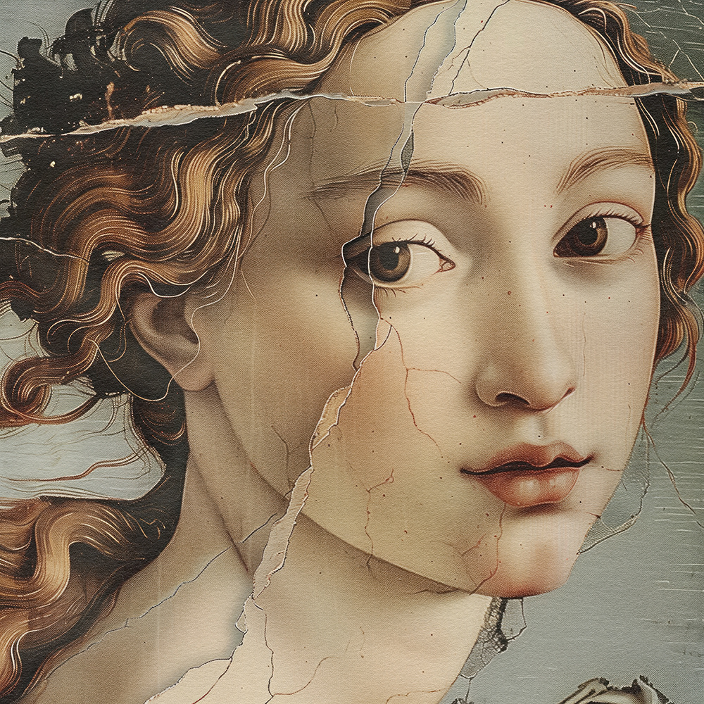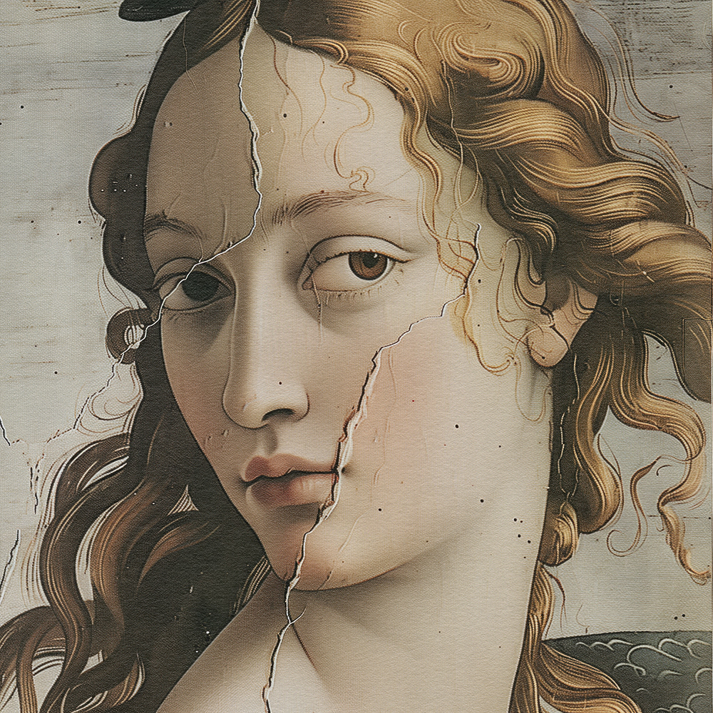 “Shattered Grace" captures the poignant beauty of women with faces delicately fractured, symbolizing emotional scars. Each portrait reveals silent strength and enduring grace amidst life's deepest sorrows.