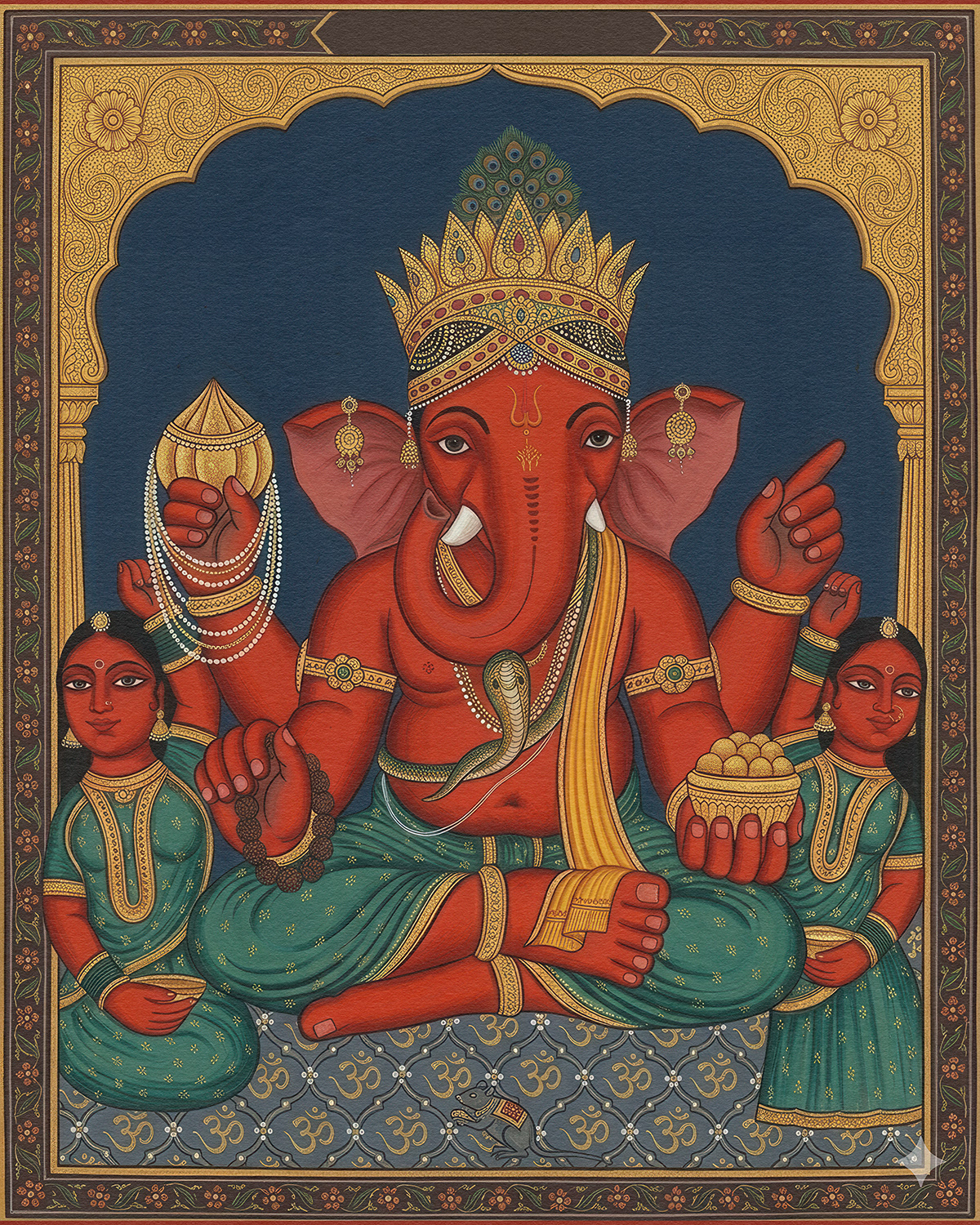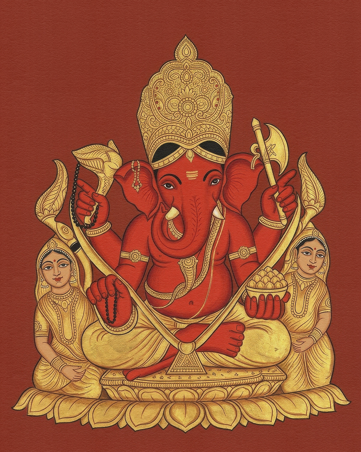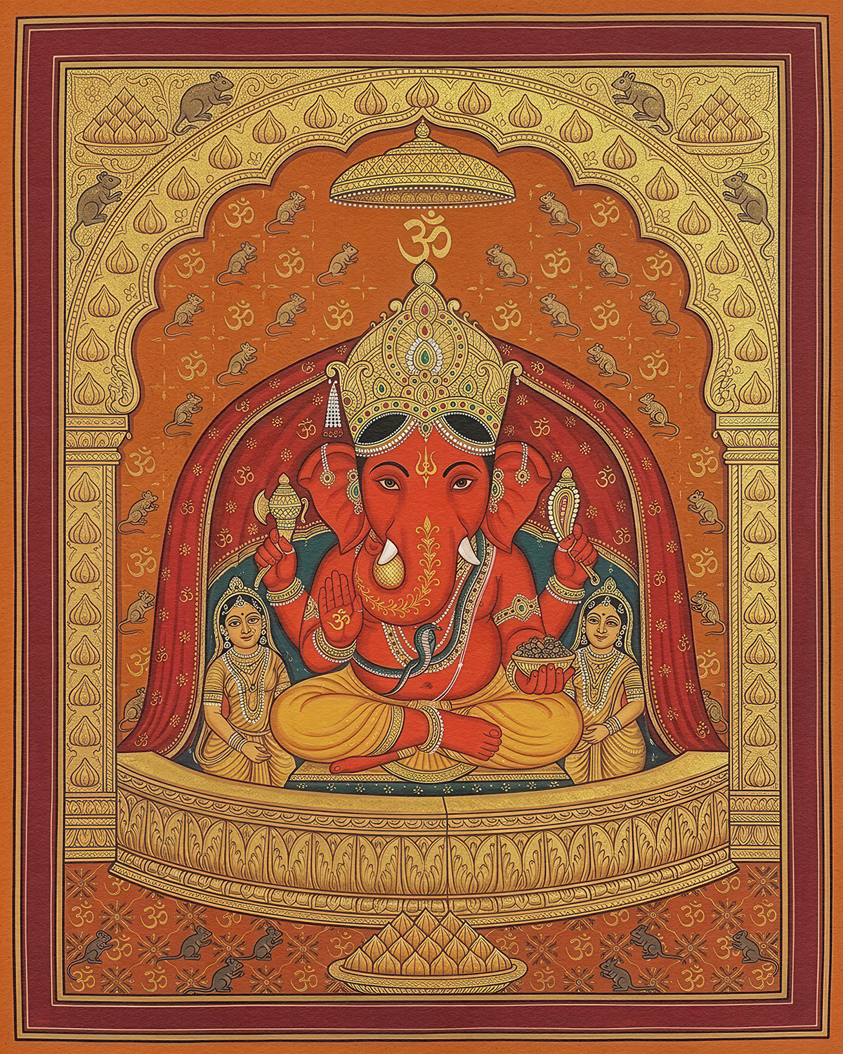 A devotional series honoring Shree Siddhivinayak through vibrant, symmetrical compositions, where traditional iconography, rich vermilion tones, and intricate ornamentation embody prosperity, protection, and the serene power of divine beginnings.