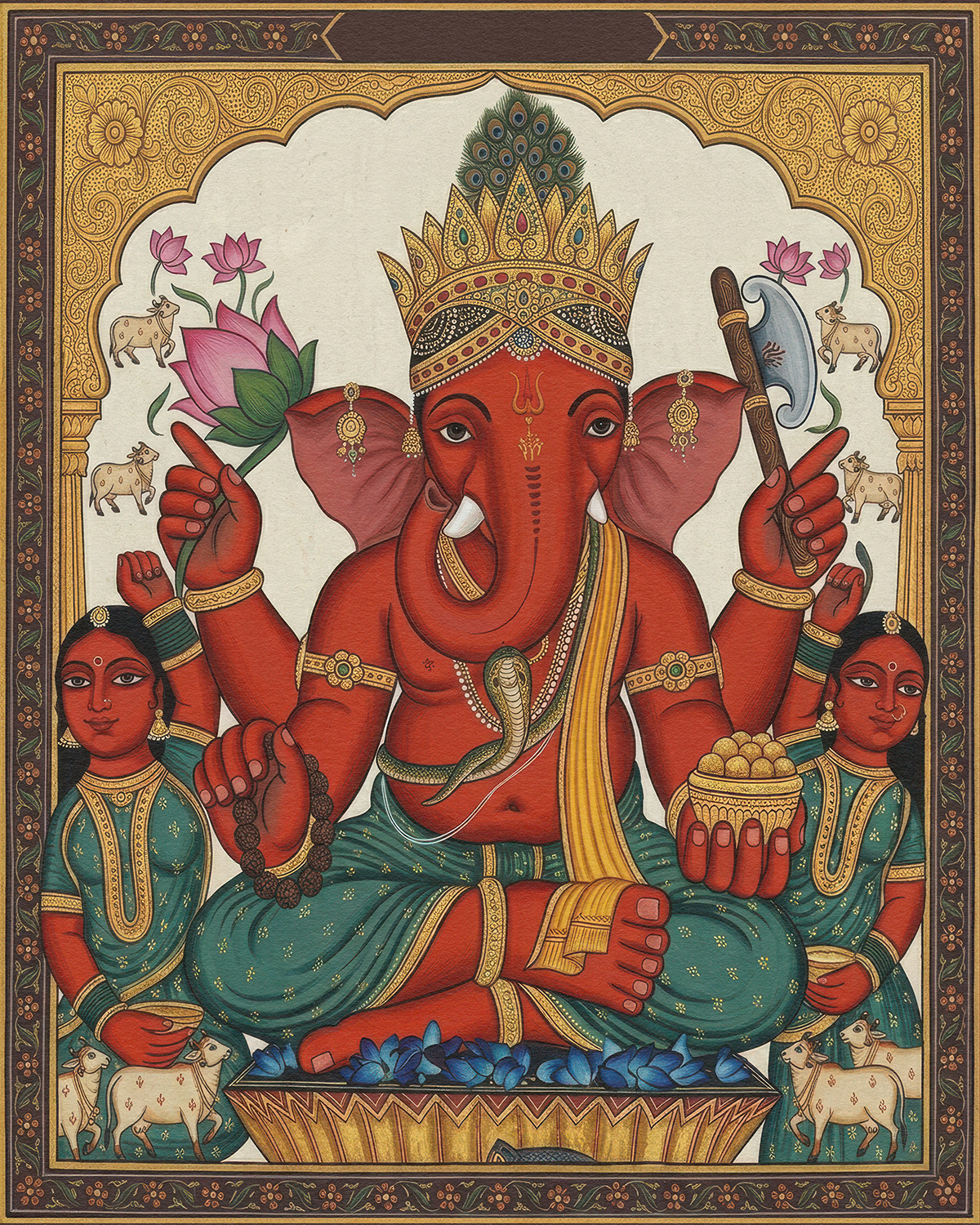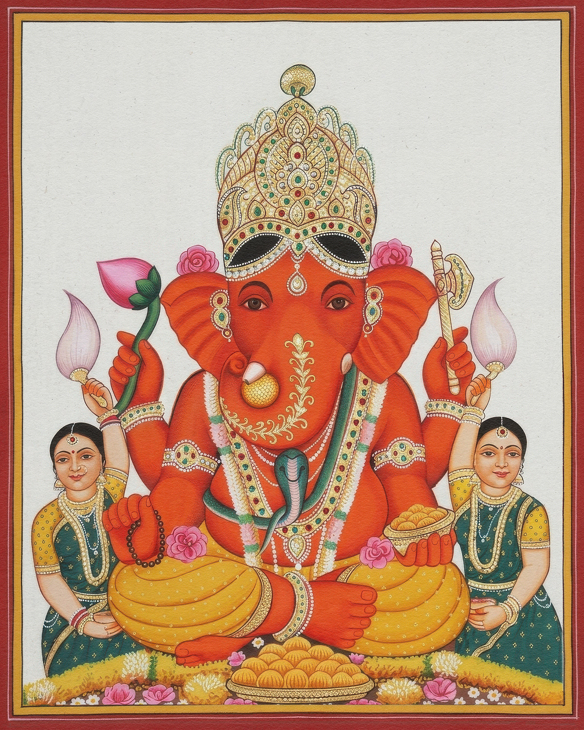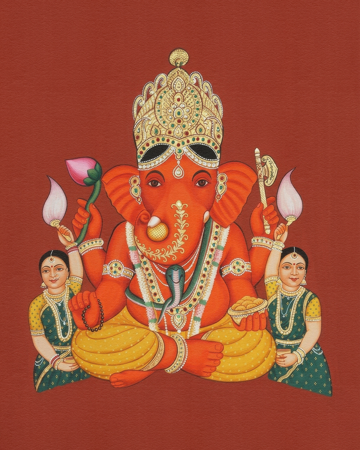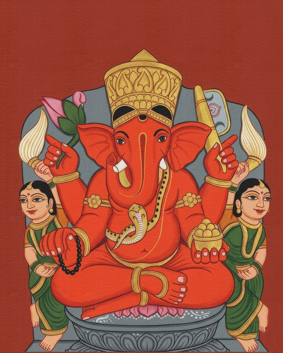 A devotional series honoring Shree Siddhivinayak through vibrant, symmetrical compositions, where traditional iconography, rich vermilion tones, and intricate ornamentation embody prosperity, protection, and the serene power of divine beginnings.