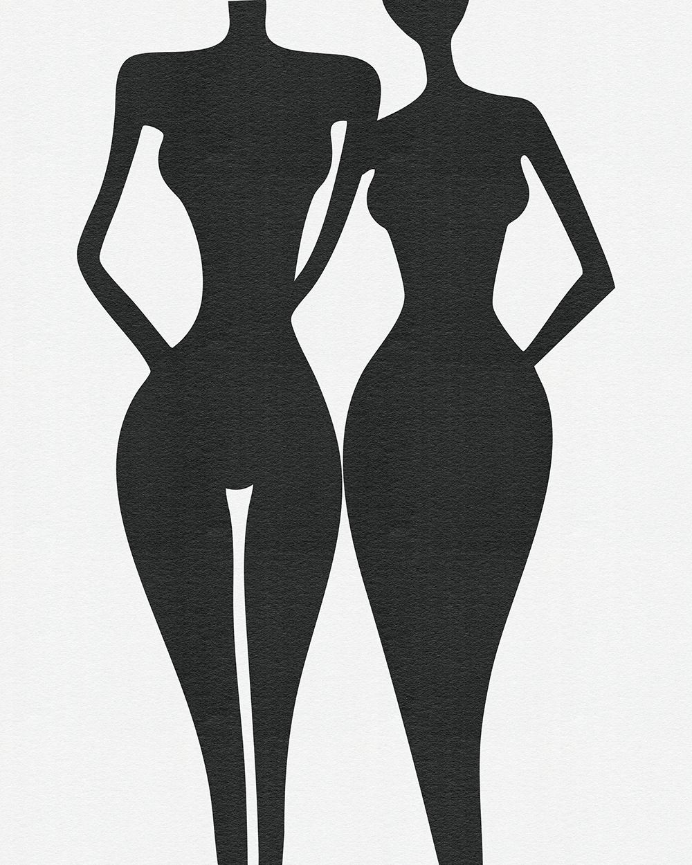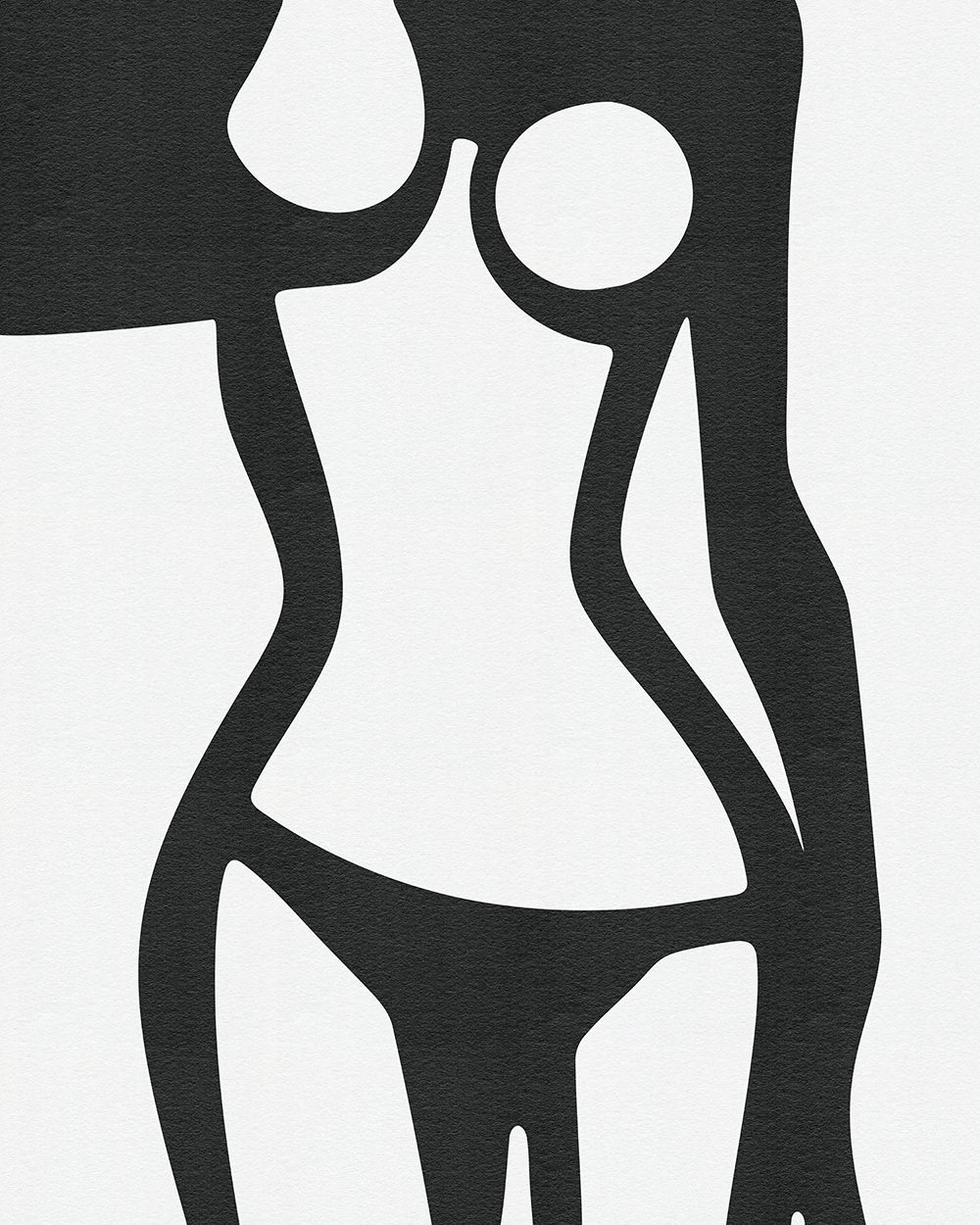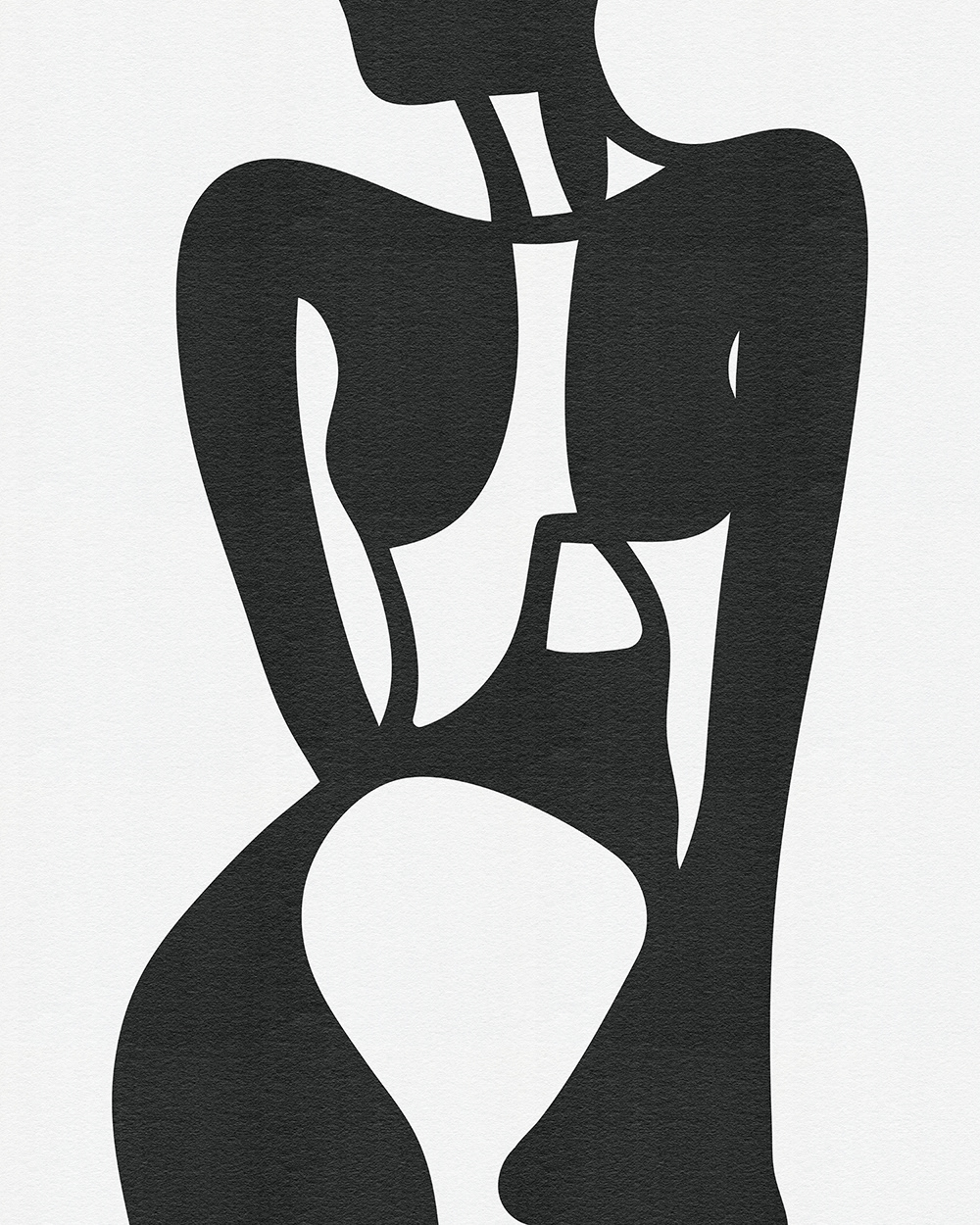 This art series explores the beauty of the female form through minimalist black and white silhouettes. Each figure celebrates curves, strength, and sensuality with bold lines and abstract elegance.
