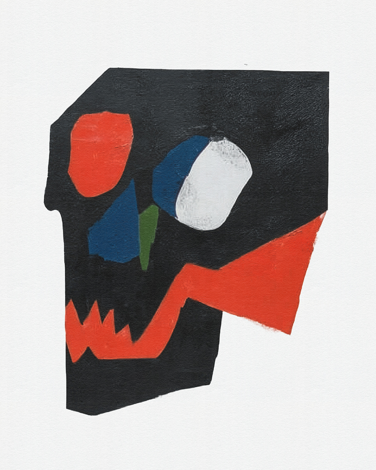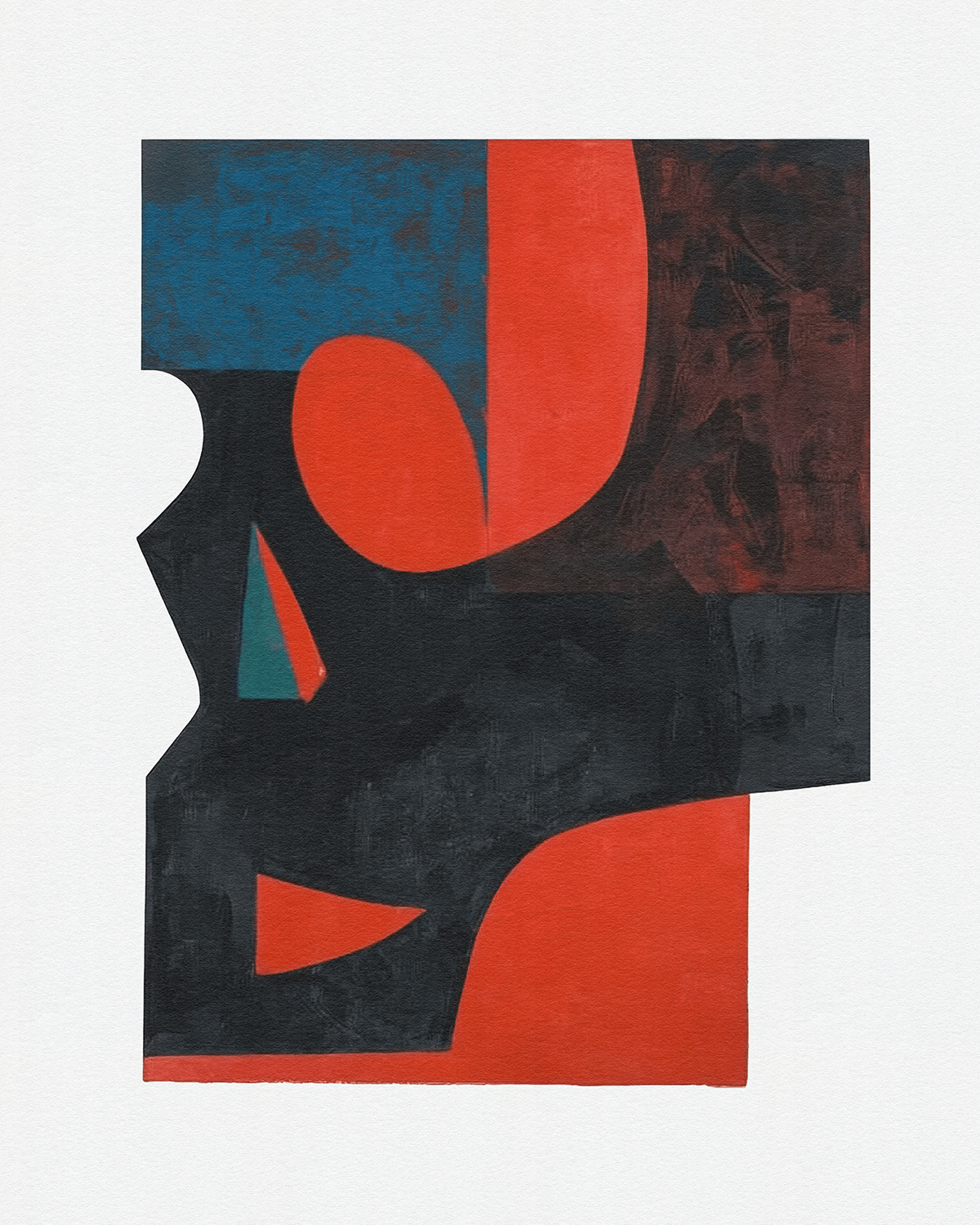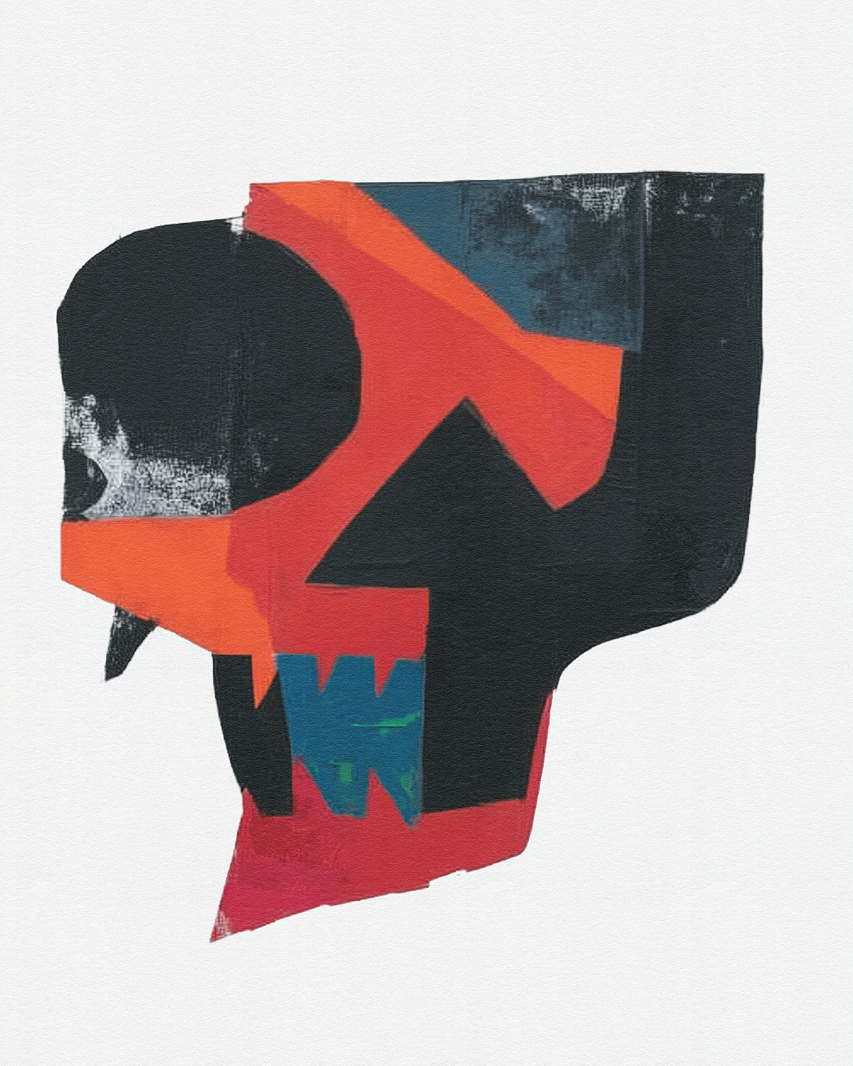 Skull & Structure explores mortality through bold geometric abstraction and layered texture. Fragmented forms and high-contrast color fields construct a contemporary dialogue between anatomy, architecture, and symbolic presence.