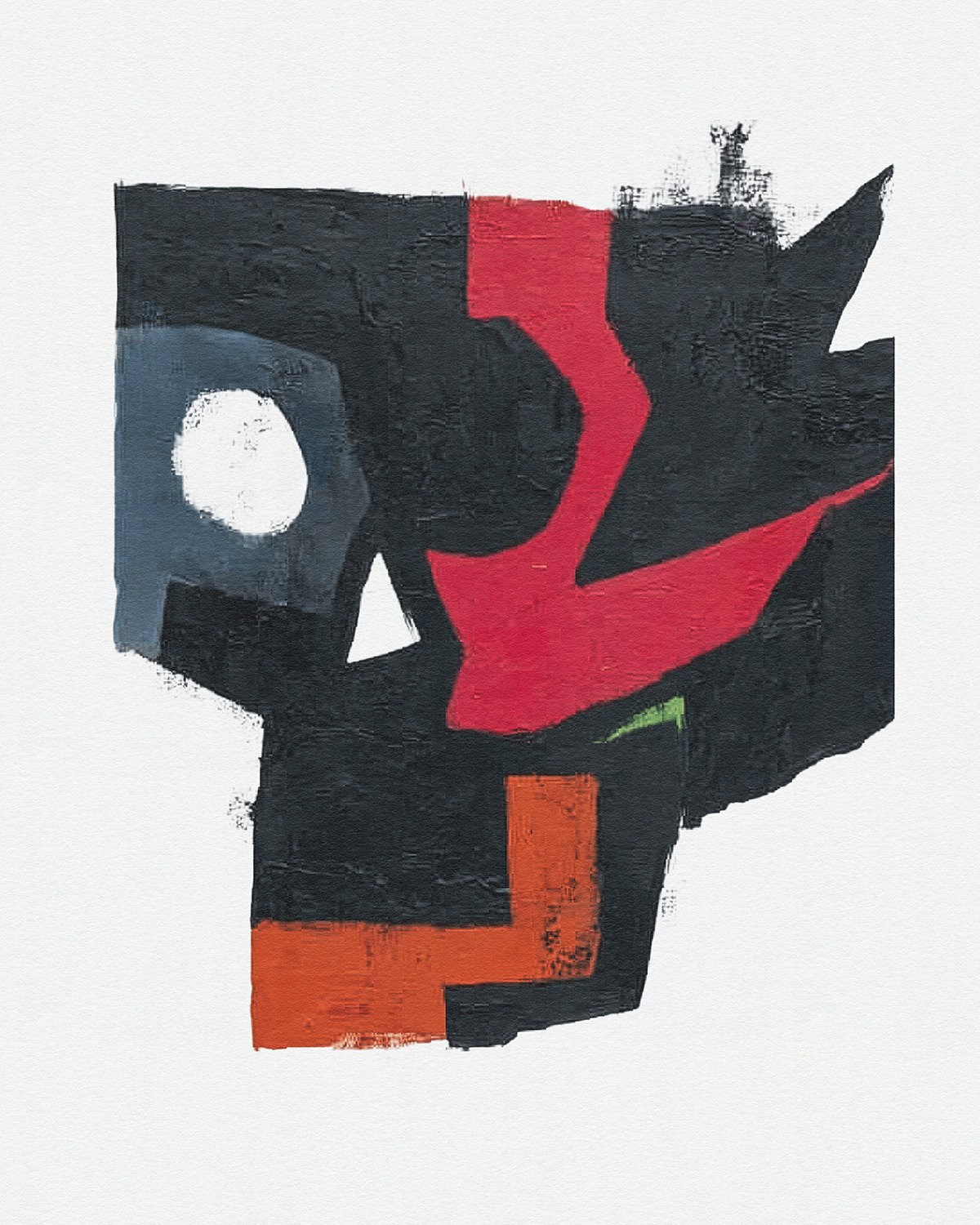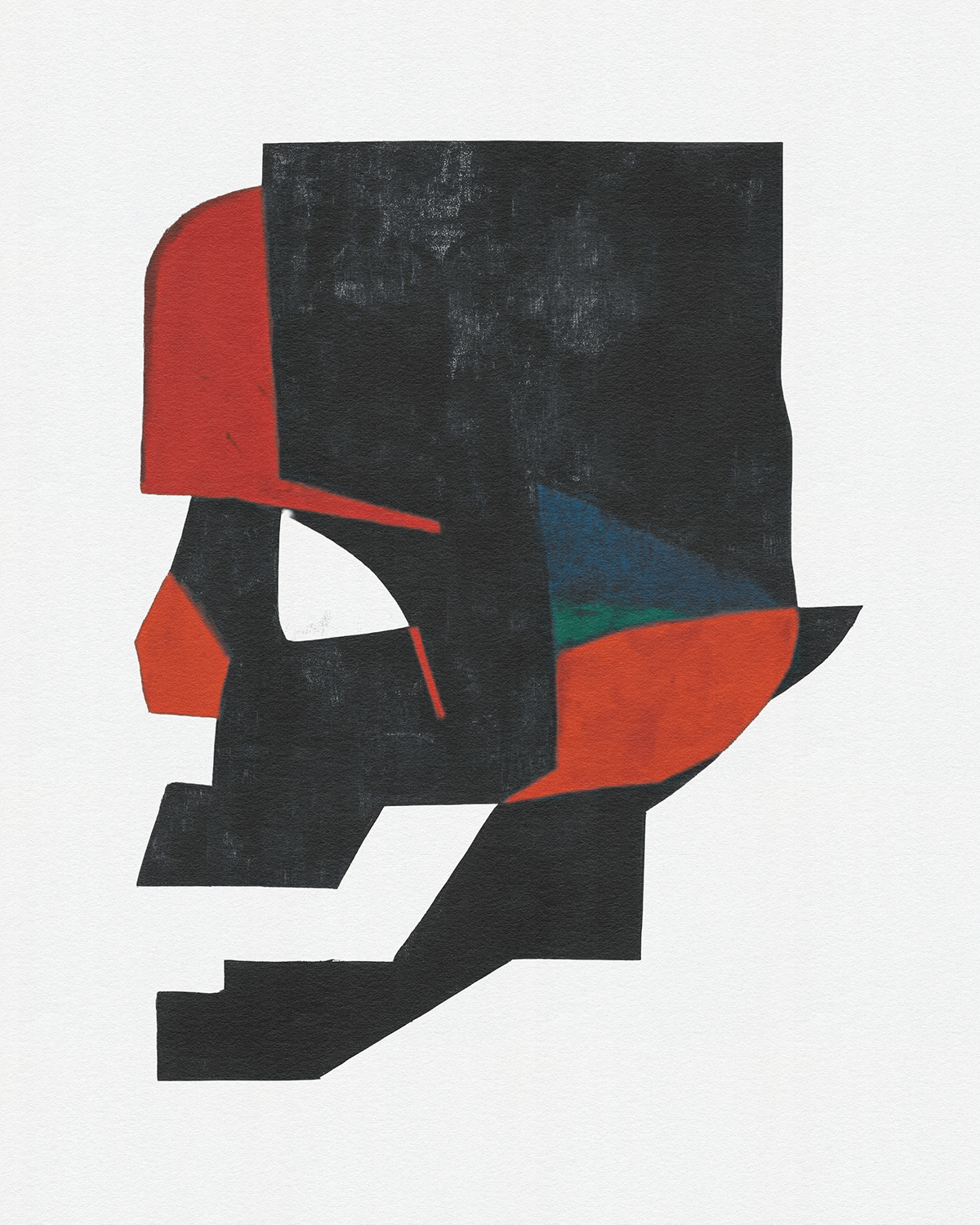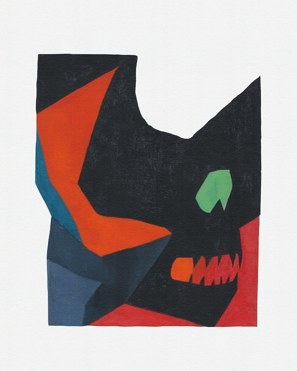 Skull & Structure explores mortality through bold geometric abstraction and layered texture. Fragmented forms and high-contrast color fields construct a contemporary dialogue between anatomy, architecture, and symbolic presence.