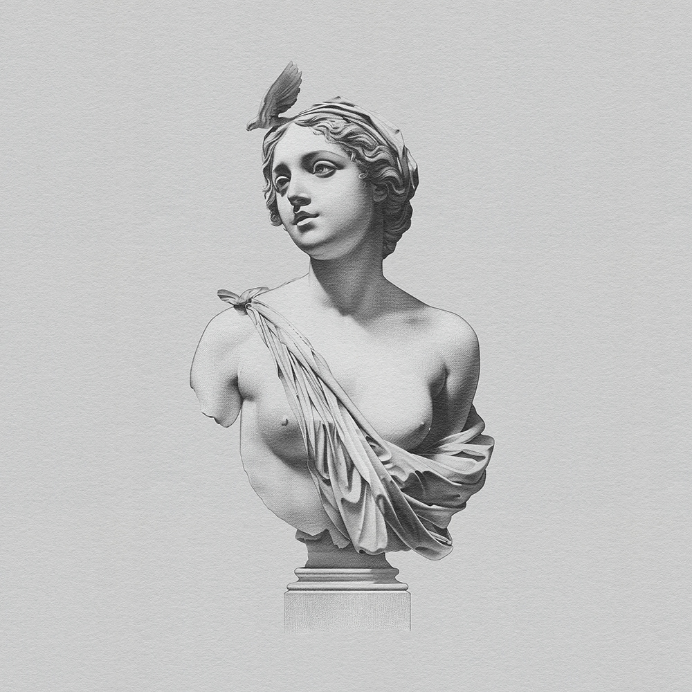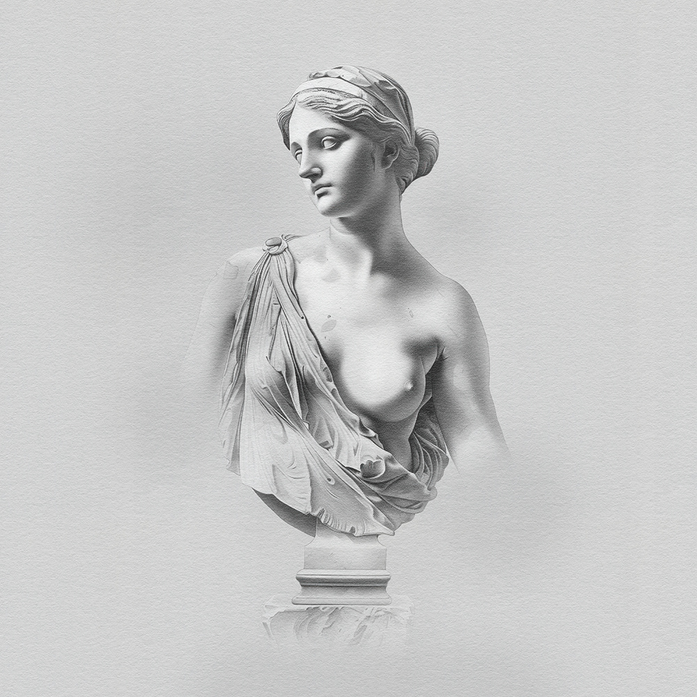 A series of classical busts, exuding elegance and serenity, each meticulously sculpted to capture the essence of timeless beauty and grace in marble-like realism.