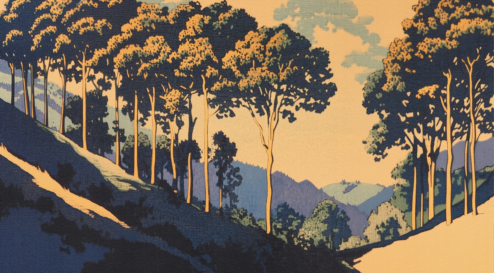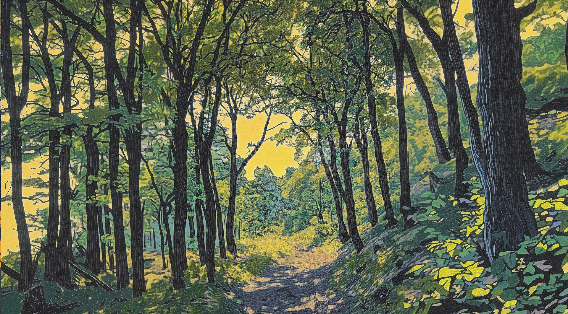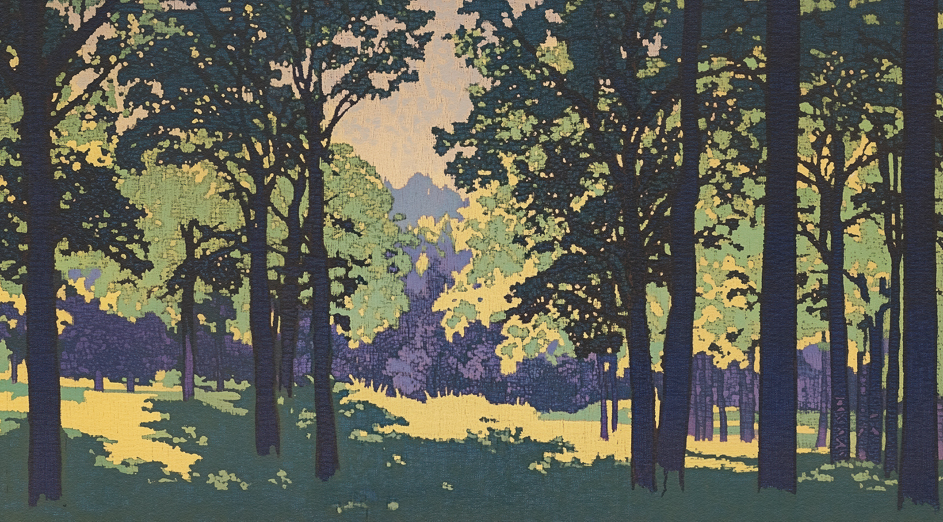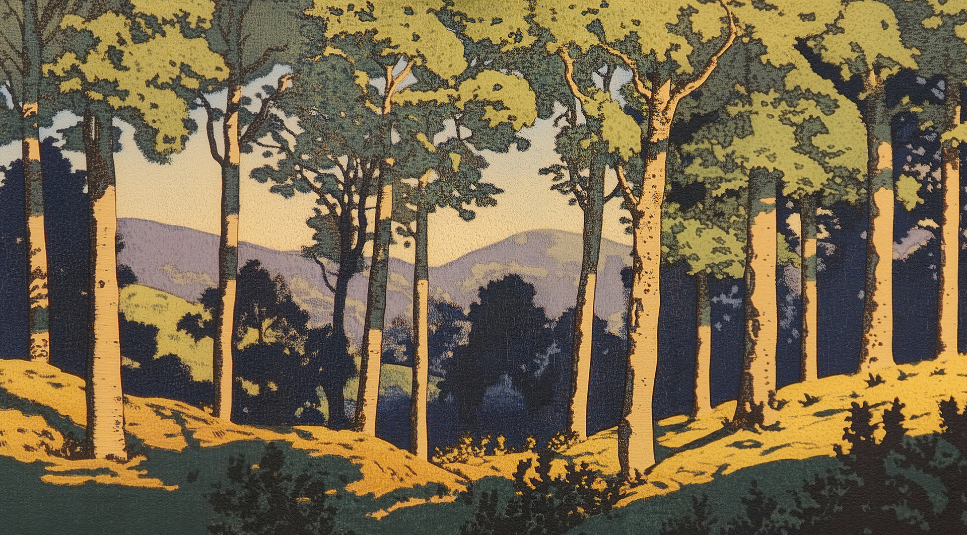 This evocative series presents tranquil forest scenes through the lens of classic lithography. Rich in tonal depth and soft textures, each print captures dappled sunlight, towering trees, and the quiet poetry of nature. A timeless homage to wooded landscapes, perfect for collectors of fine art prints and nature-inspired interiors.