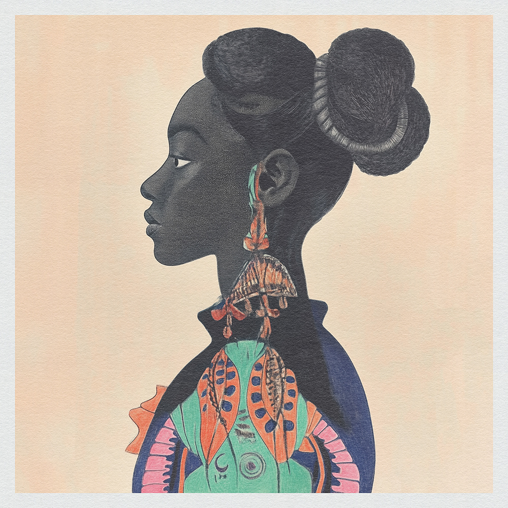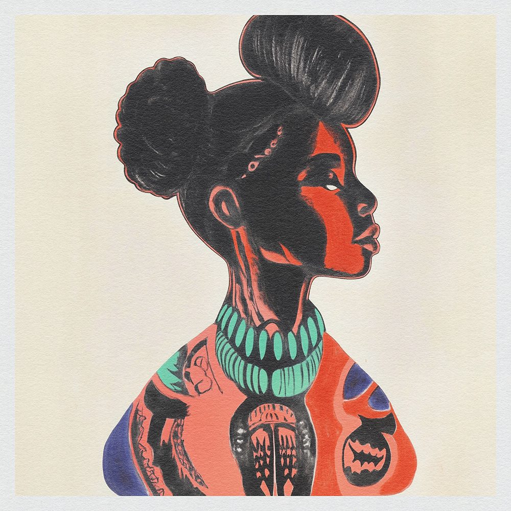This striking art series celebrates feminine strength and cultural heritage through bold, tribal-inspired patterns and vivid contrasts. Each piece merges tradition with modernity, capturing timeless elegance and empowering beauty.