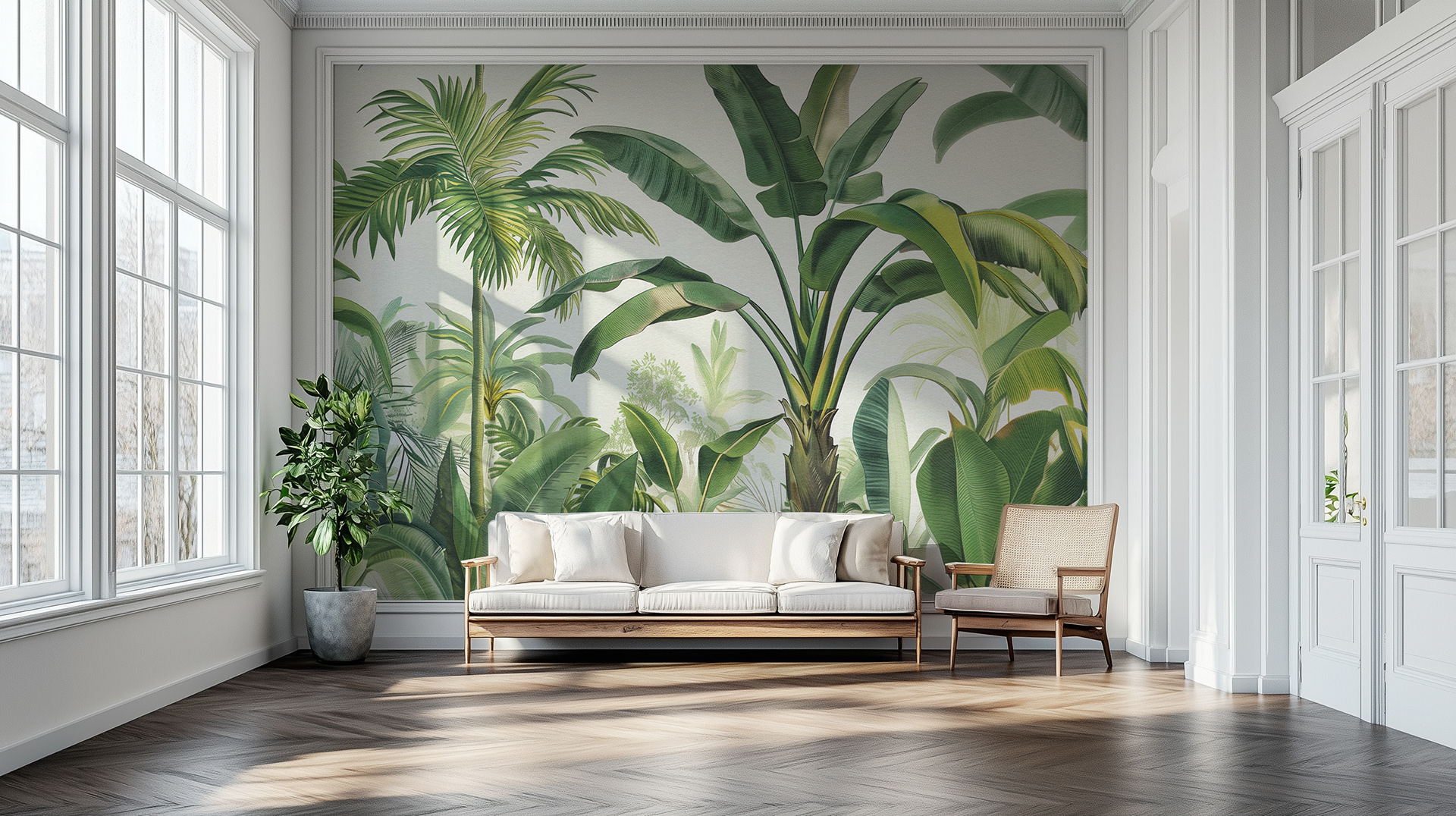This wall art panel series, "Tropical Oasis: Verdant Escapes," captures lush jungle foliage with intricate details. Each panel transforms interiors into vibrant, serene havens, celebrating the beauty of nature.