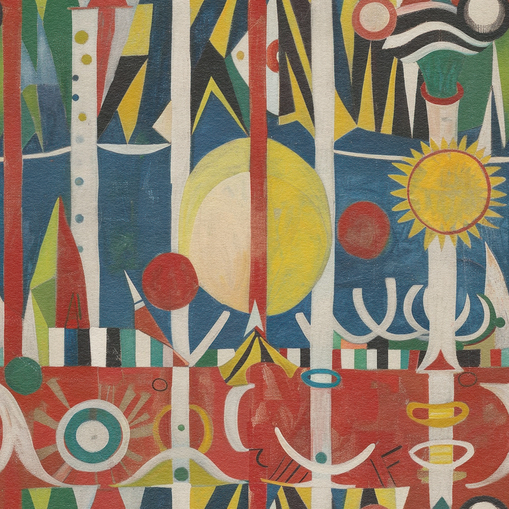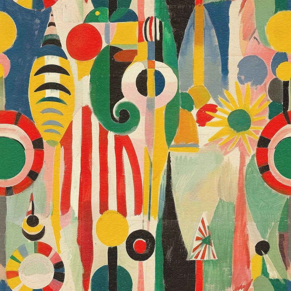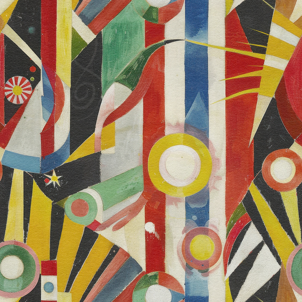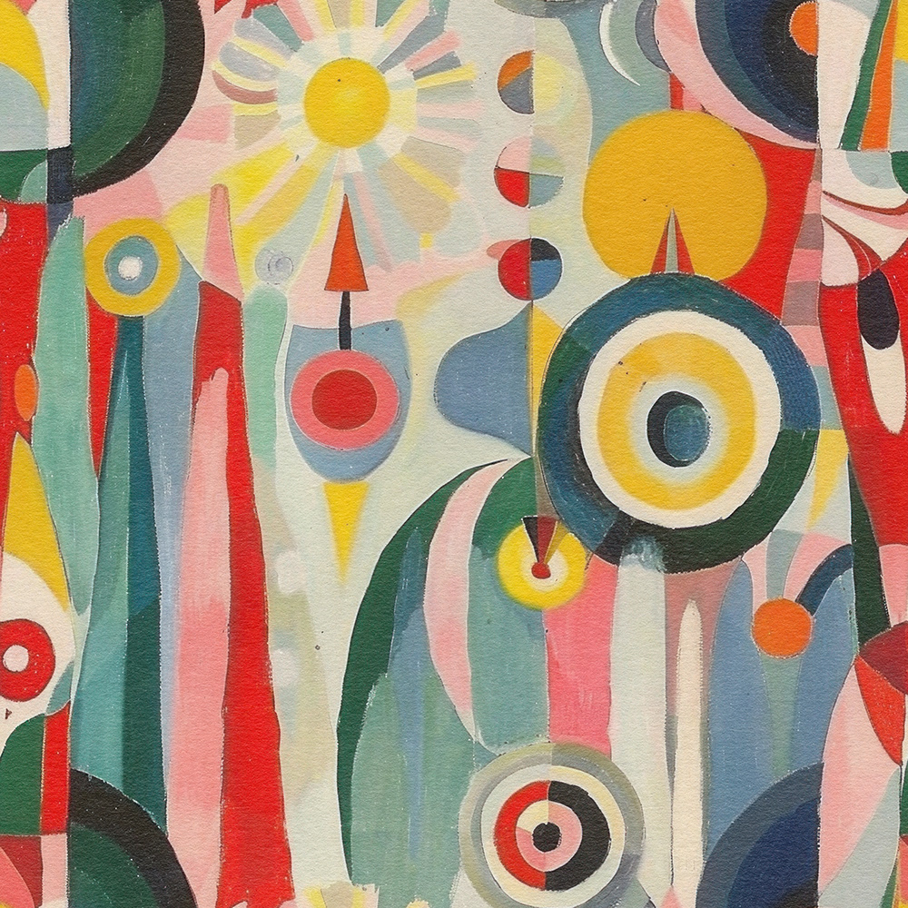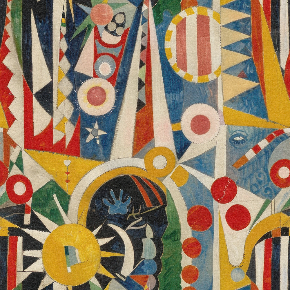 A mesmerizing fusion of geometric shapes and bold colors, creating an energetic and dynamic visual experience reminiscent of modern abstract art. Perfect for uplifting any space.